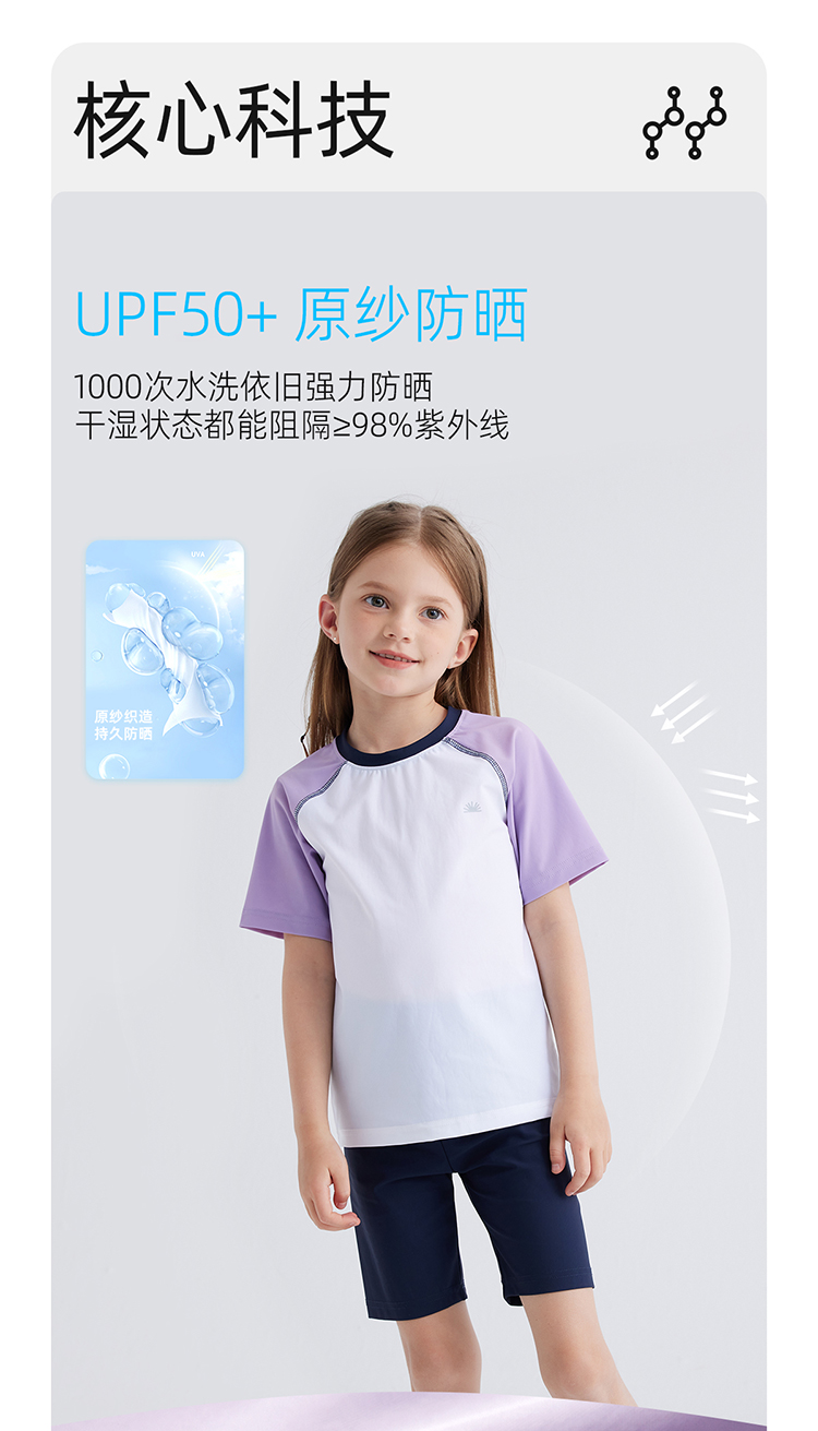 fx-【冰感防晒 UPF50+】儿童透气插肩袖冰皮套装 PXTZ2403