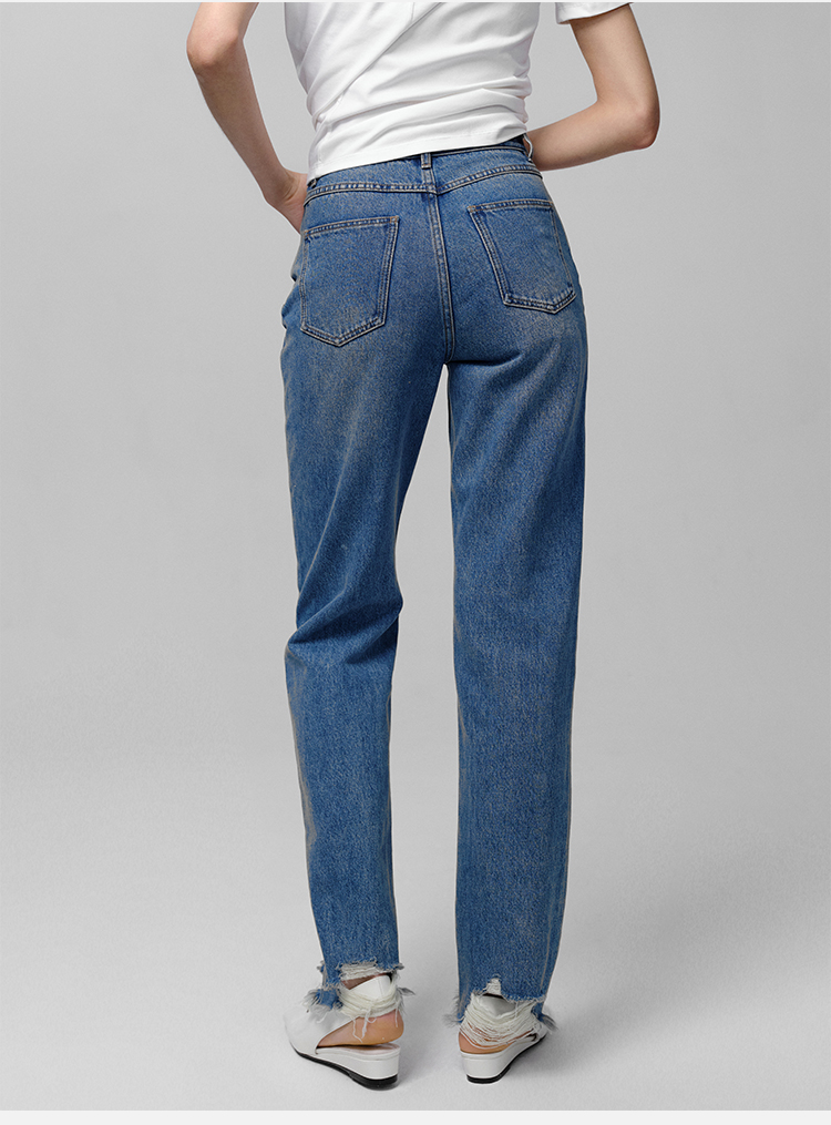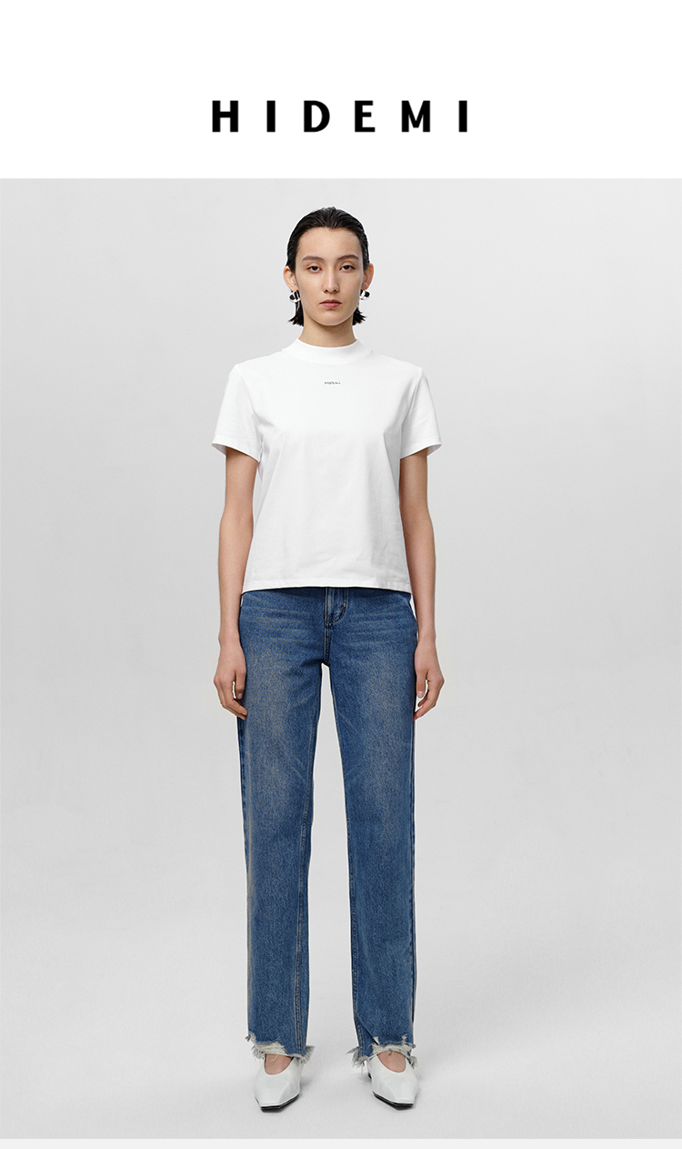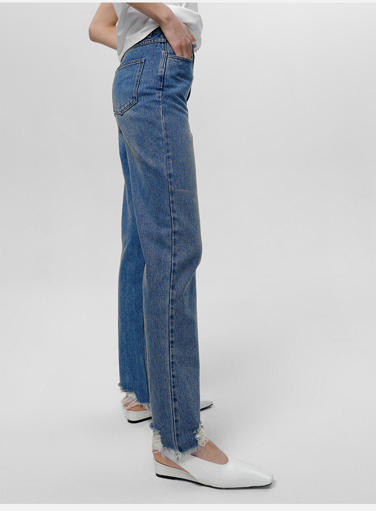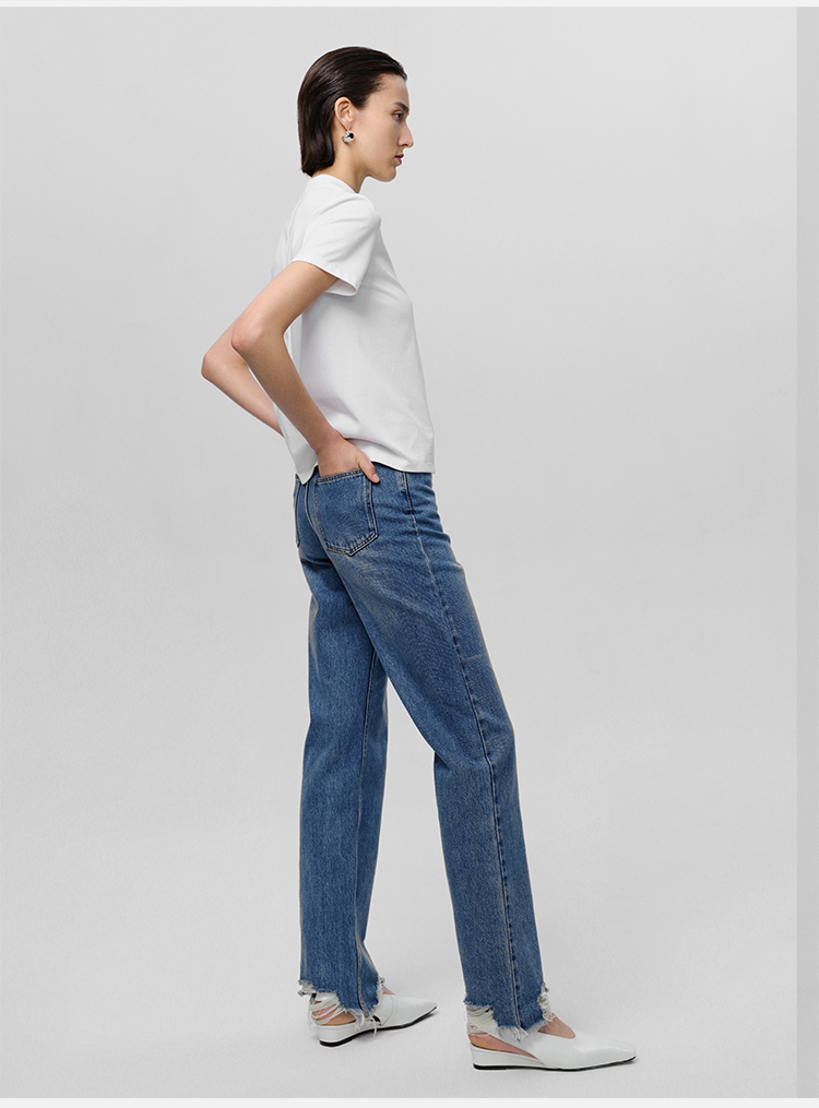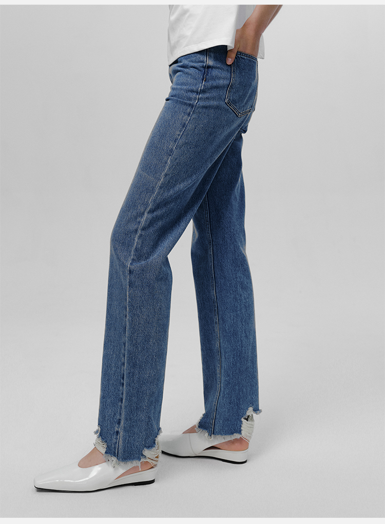HIDEMI 可再生丹宁环保系列水洗做旧毛边牛仔裤