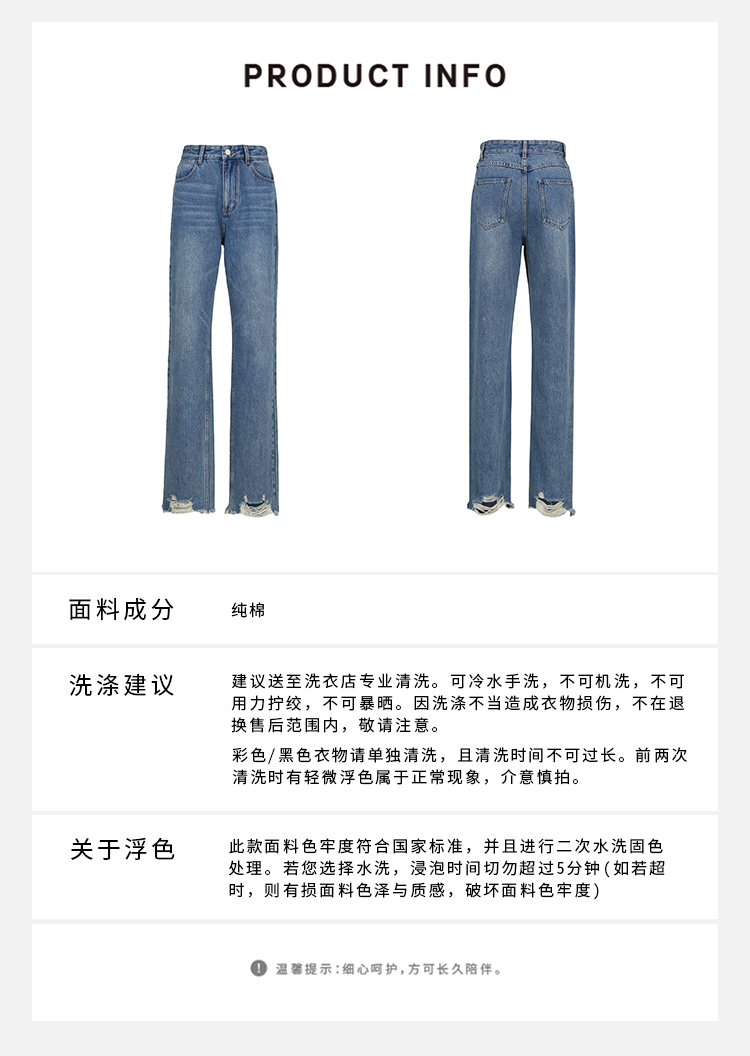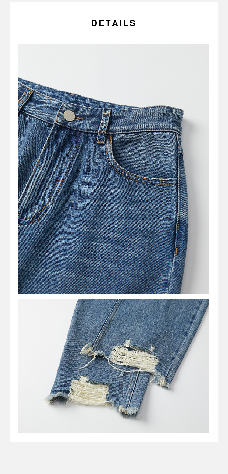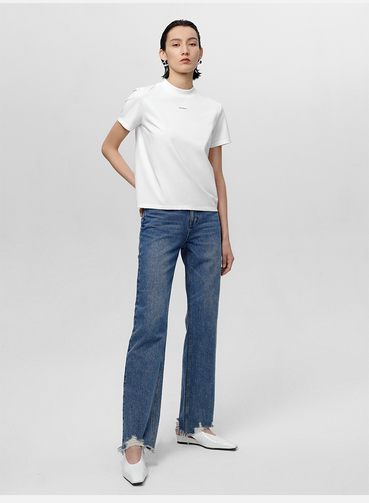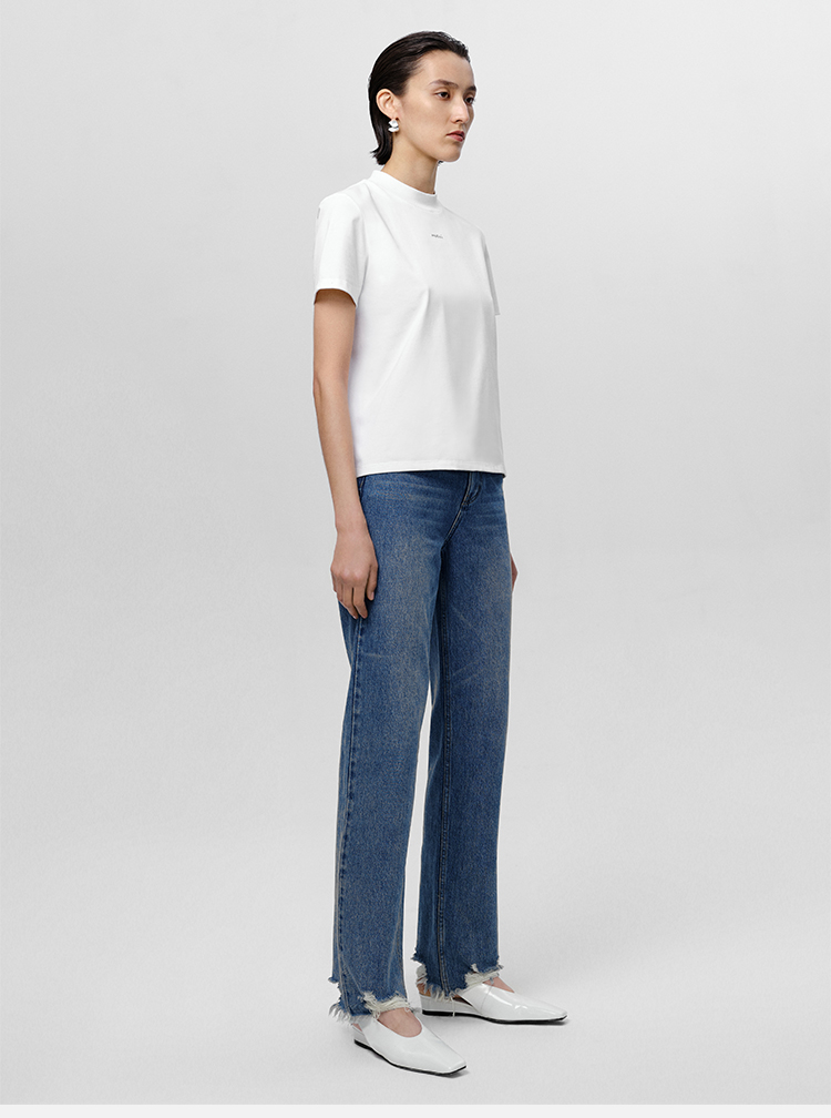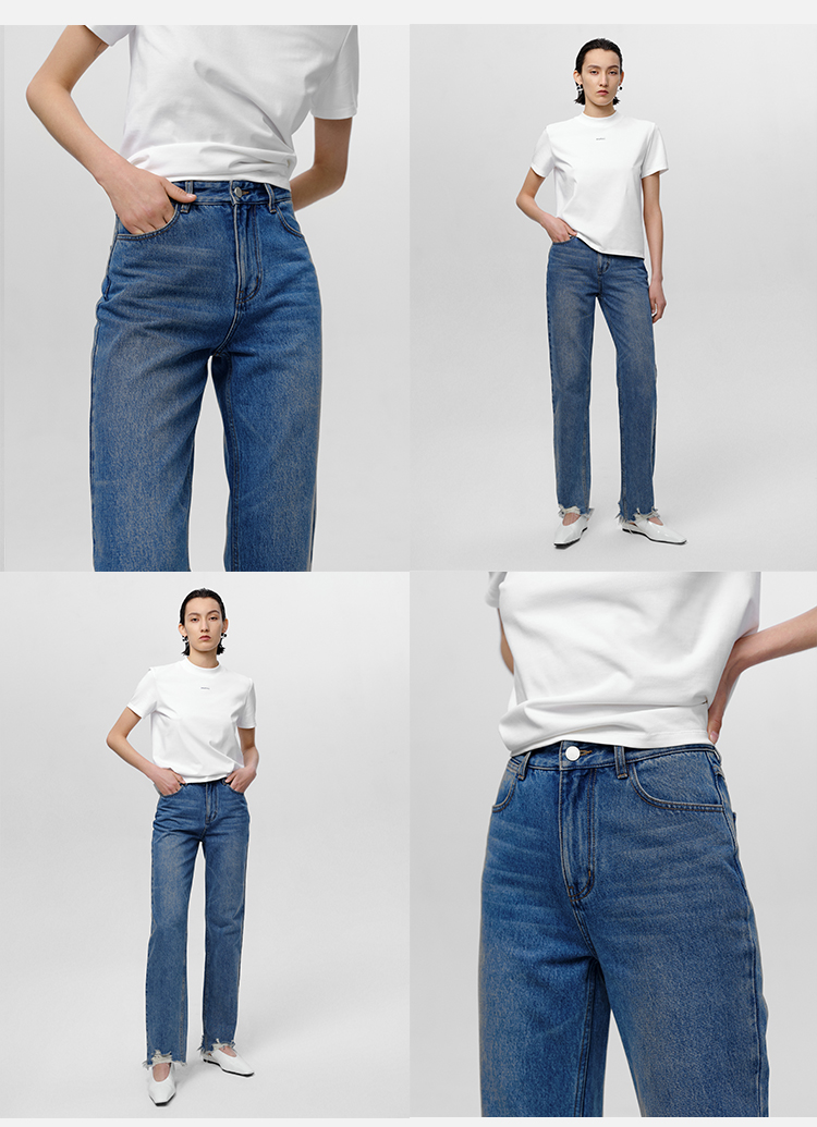 HIDEMI 可再生丹宁环保系列水洗做旧毛边牛仔裤
