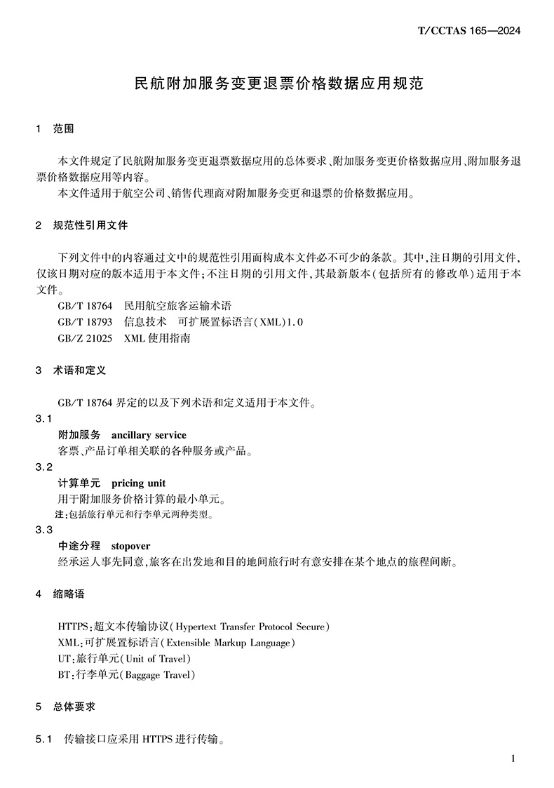 书名:民航附加服务变更退票价格数据应用规范T/CCTAS 165—2024