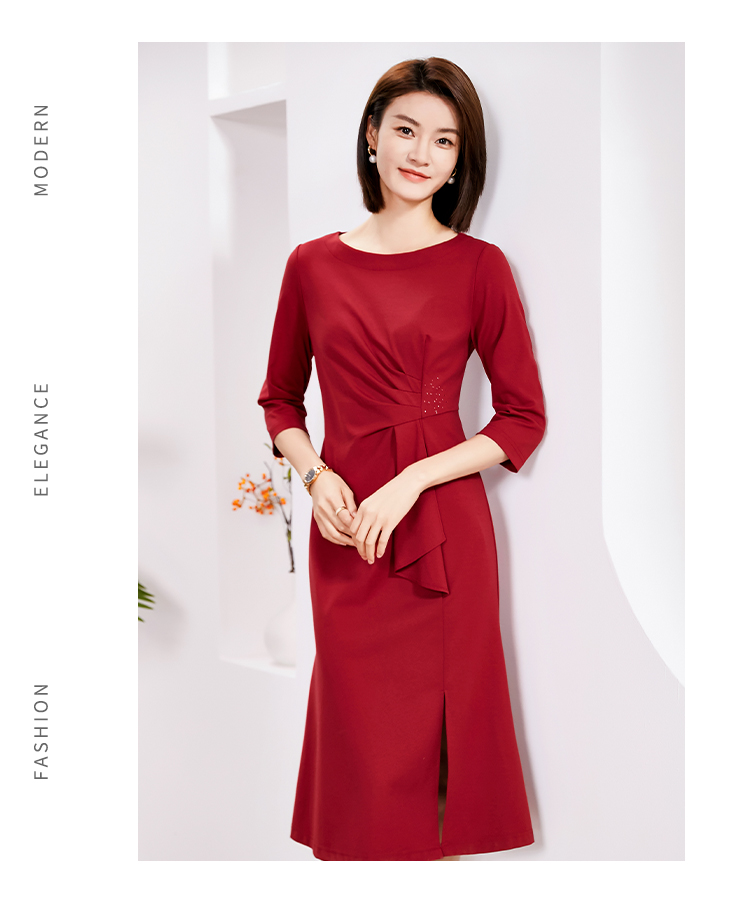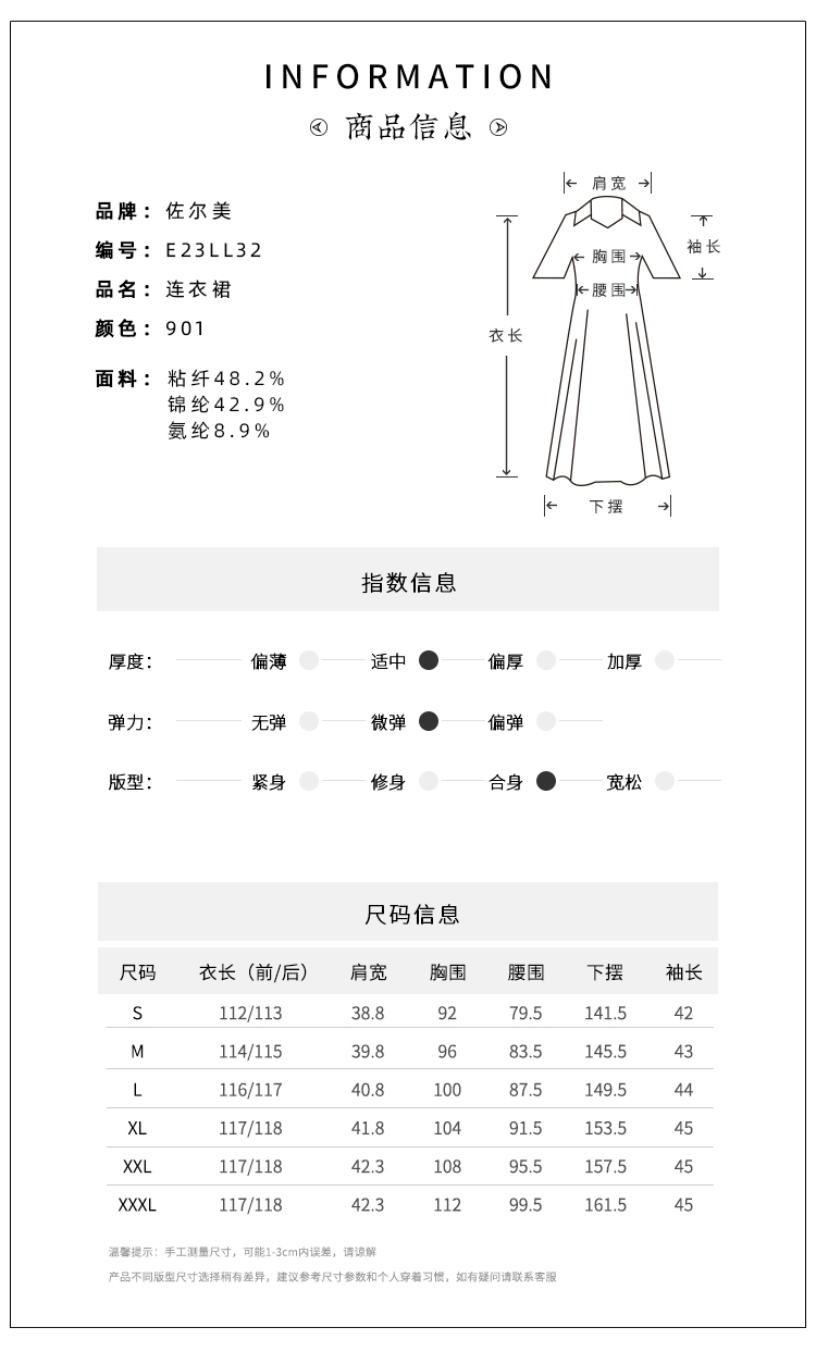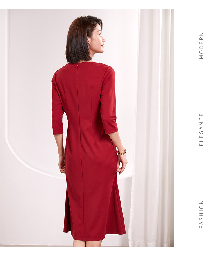 佐尔美春季上新 优雅气质中式七分袖连衣裙E23LL32