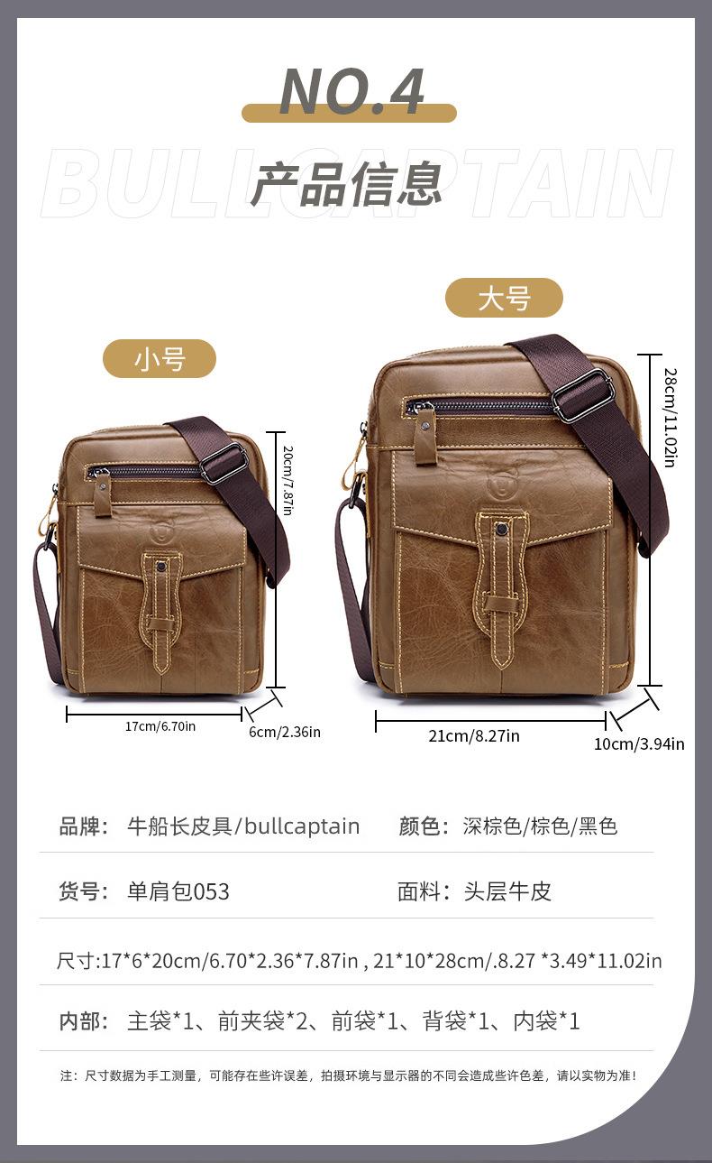 牛船长皮具男士真皮单肩斜挎包头层牛皮大容量商务潮流时尚公文包