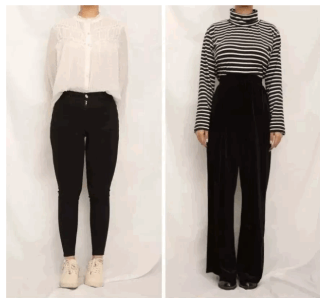 1. 高腰阔腿版型,线条感简约流畅上身却不简单,视觉拉长,遮肉显瘦。