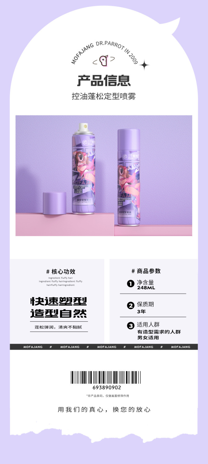 【爆款超低价预售 急单慎拍】三个魔发匠头发刘海蓬松神器喷雾定型造型持久高颅顶发胶学生男女