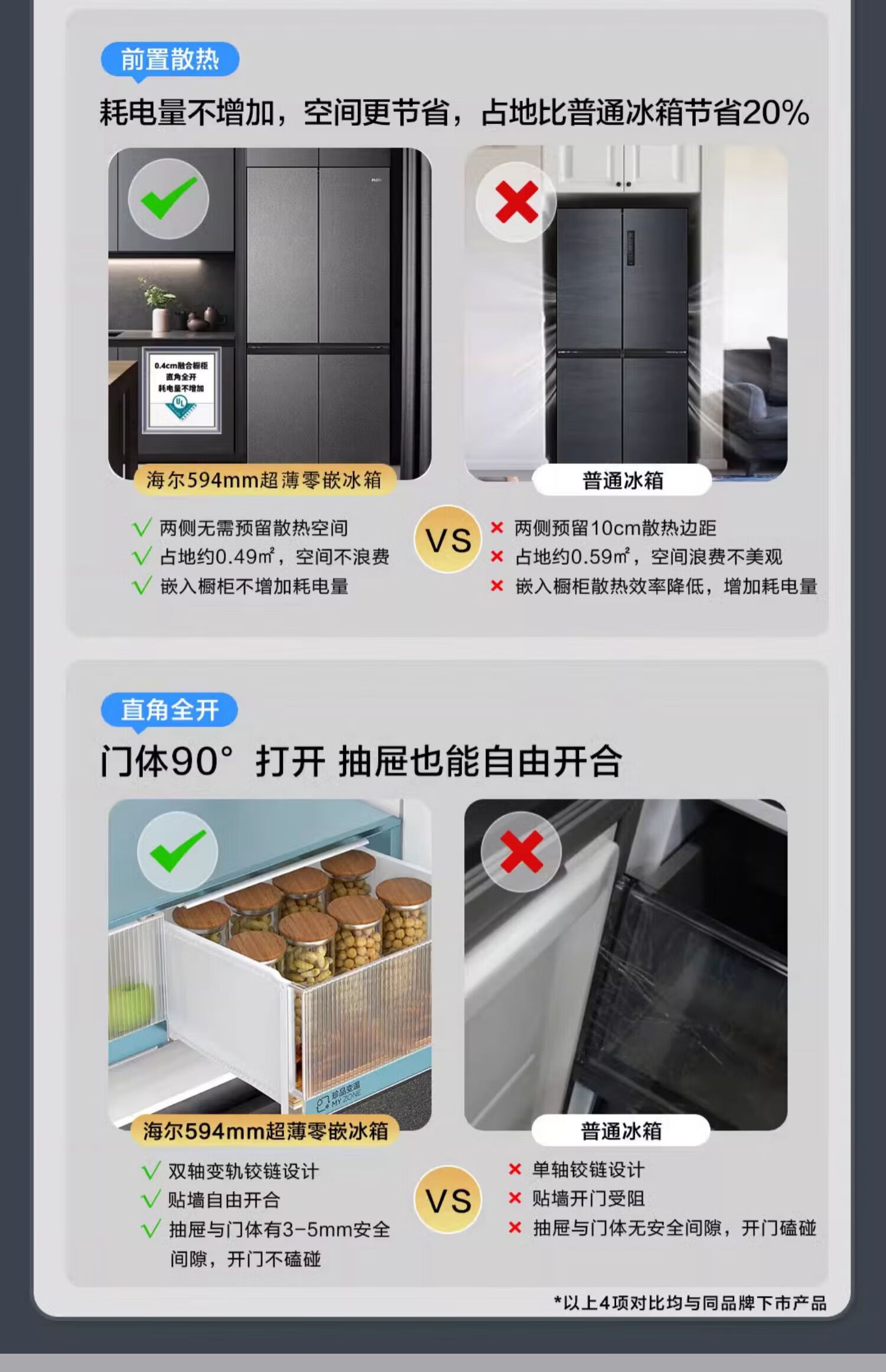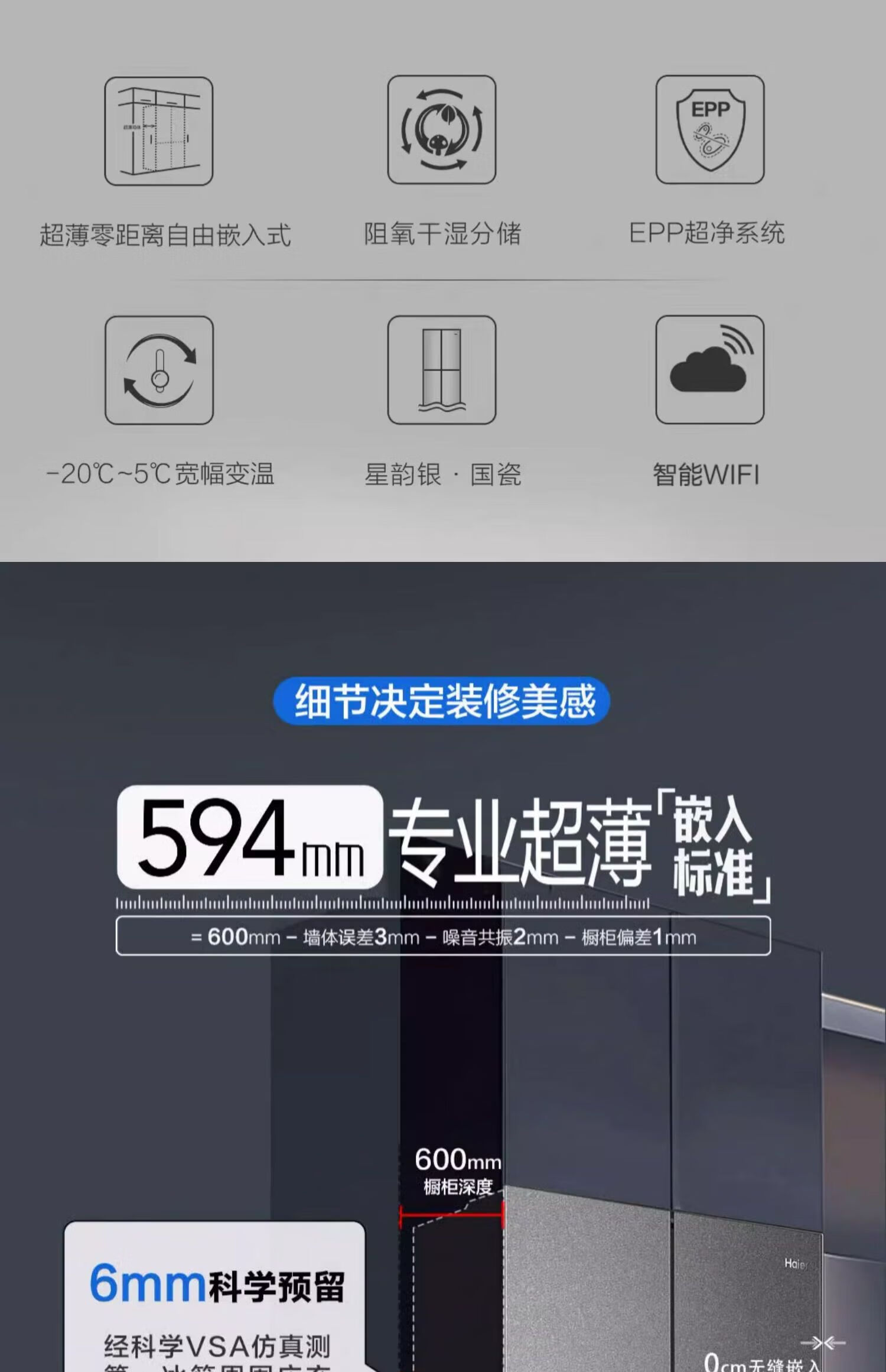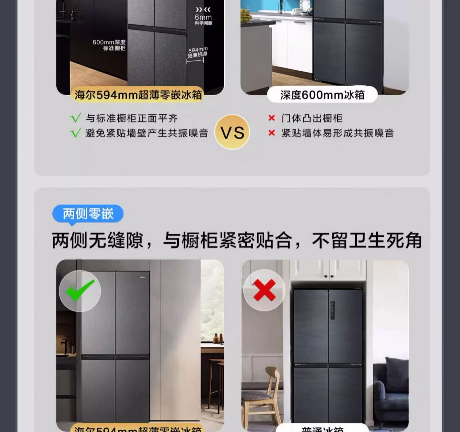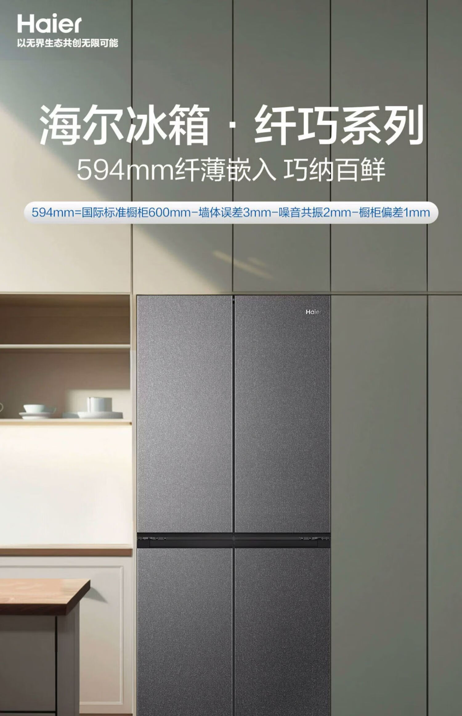 海尔和景冰箱471L十字双开四门零嵌入式594mm超薄家用风冷无霜