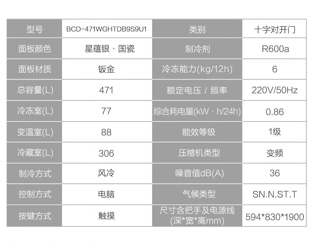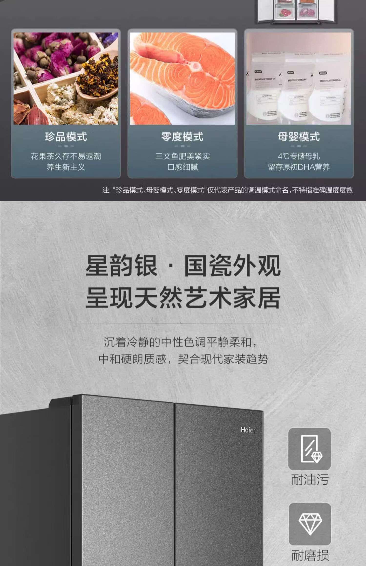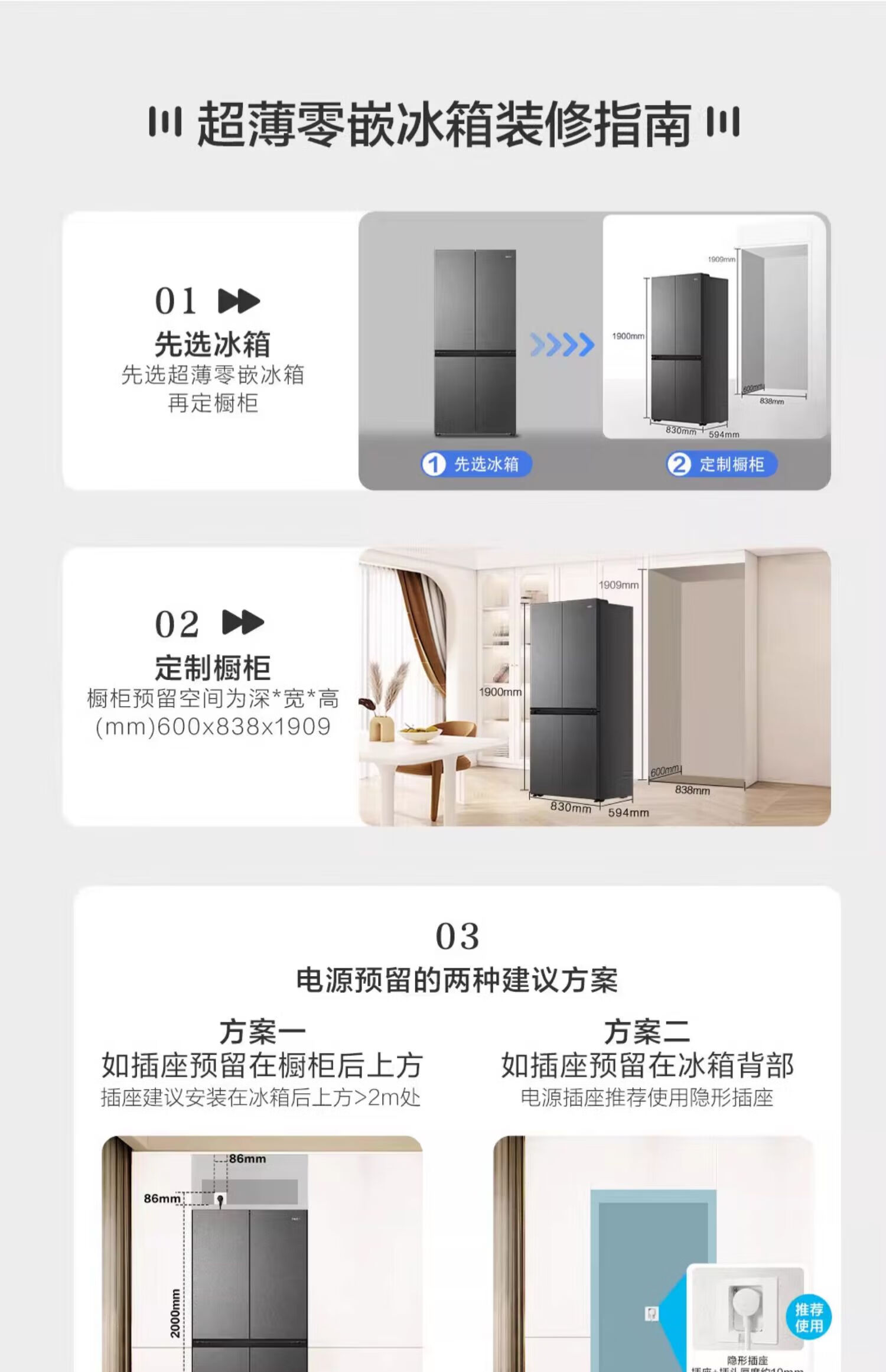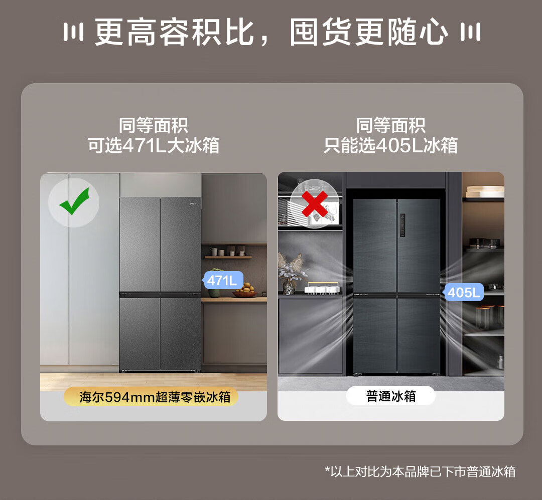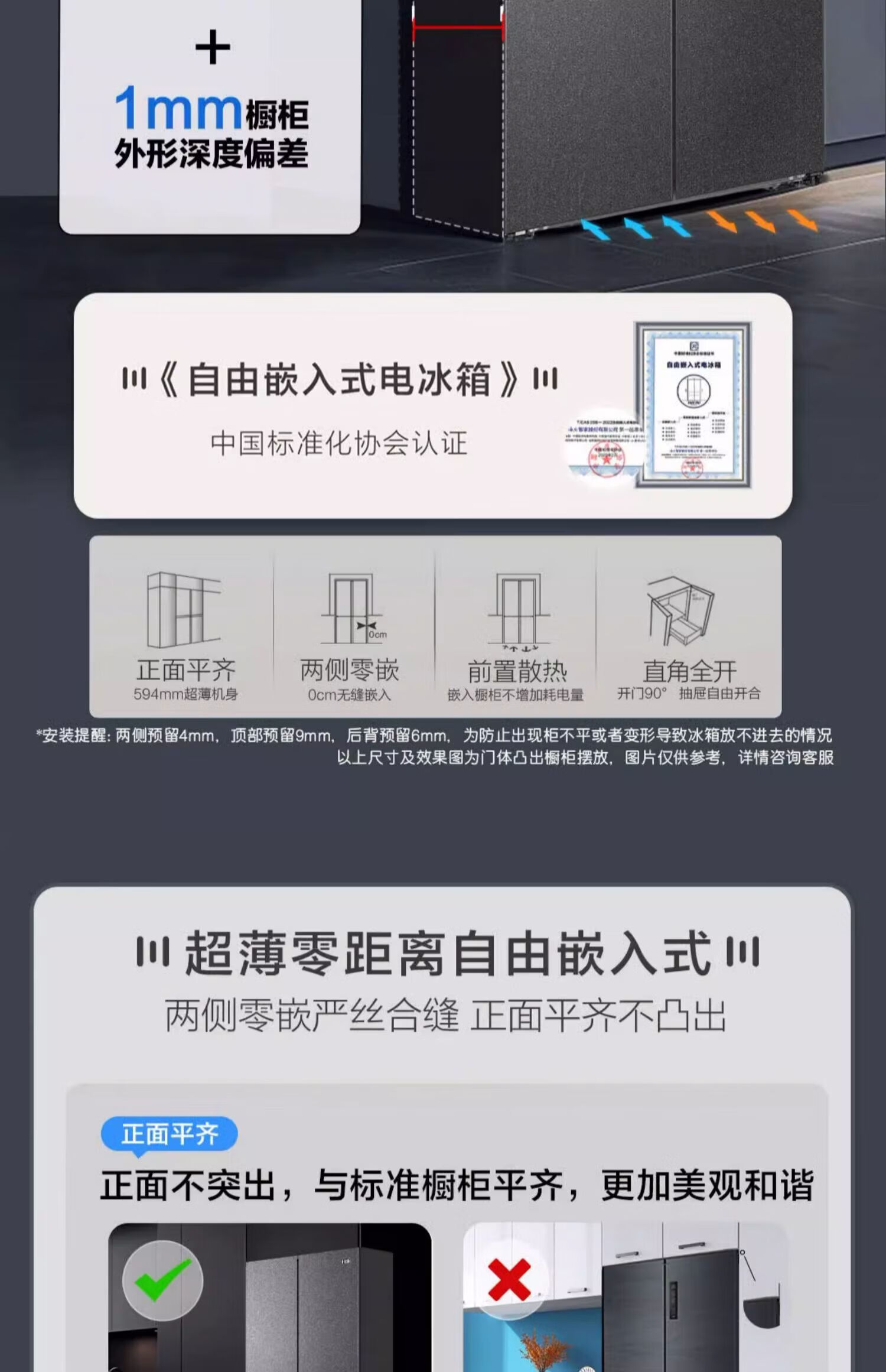 海尔和景冰箱471L十字双开四门零嵌入式594mm超薄家用风冷无霜