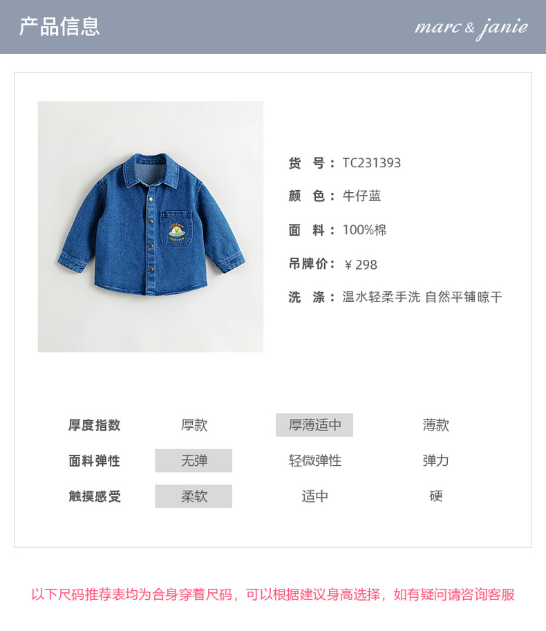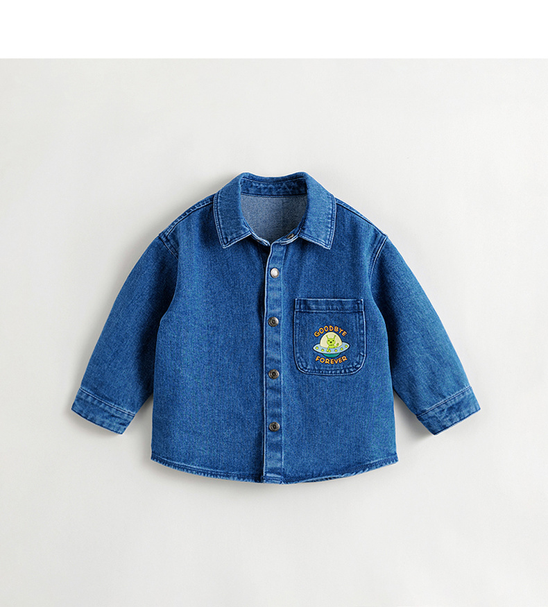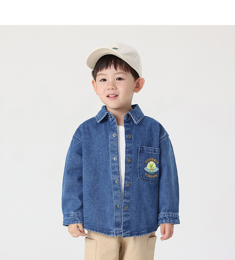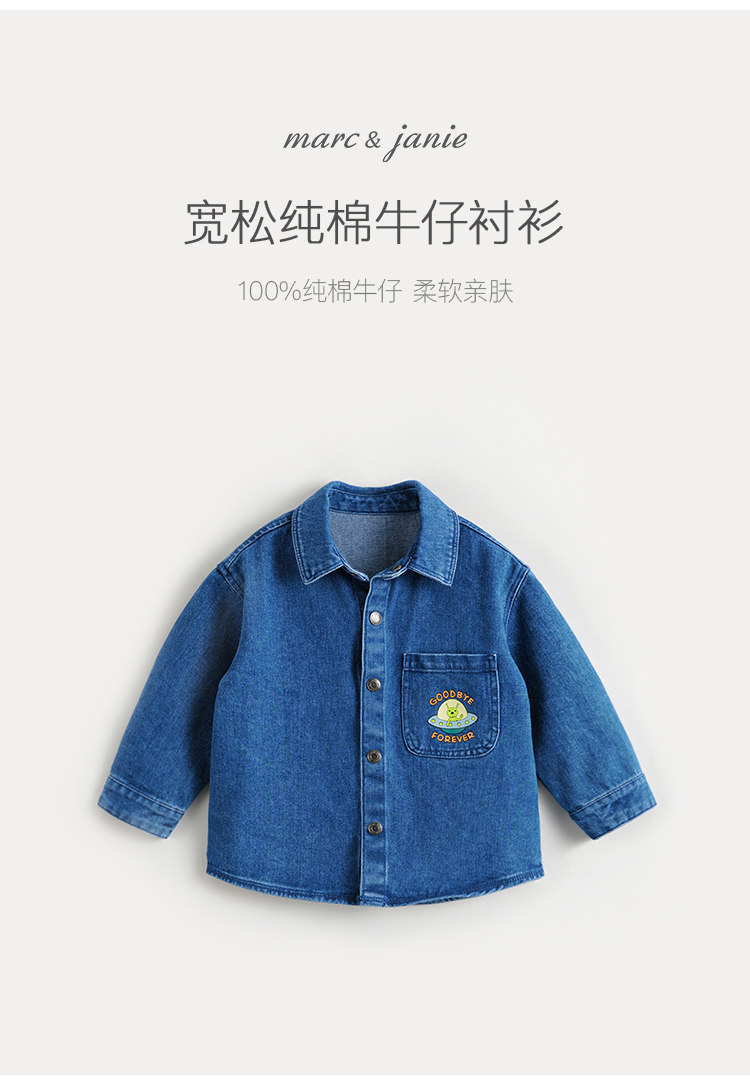 马克珍妮秋装新款 男童趣味图案纯棉柔软牛仔衬衫 儿童衬衣231393