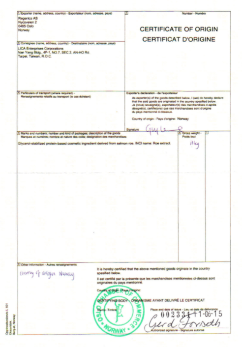 三文鱼卵产地证明
