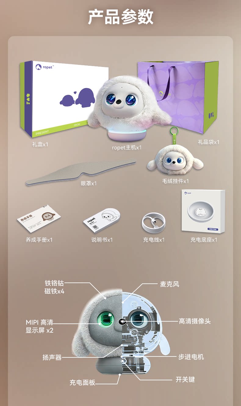ropet 肉派派 AI机器宠物PLUS礼盒版 养成系情感陪伴 智能机器人 电子宠物 儿童礼物 玩具礼盒
