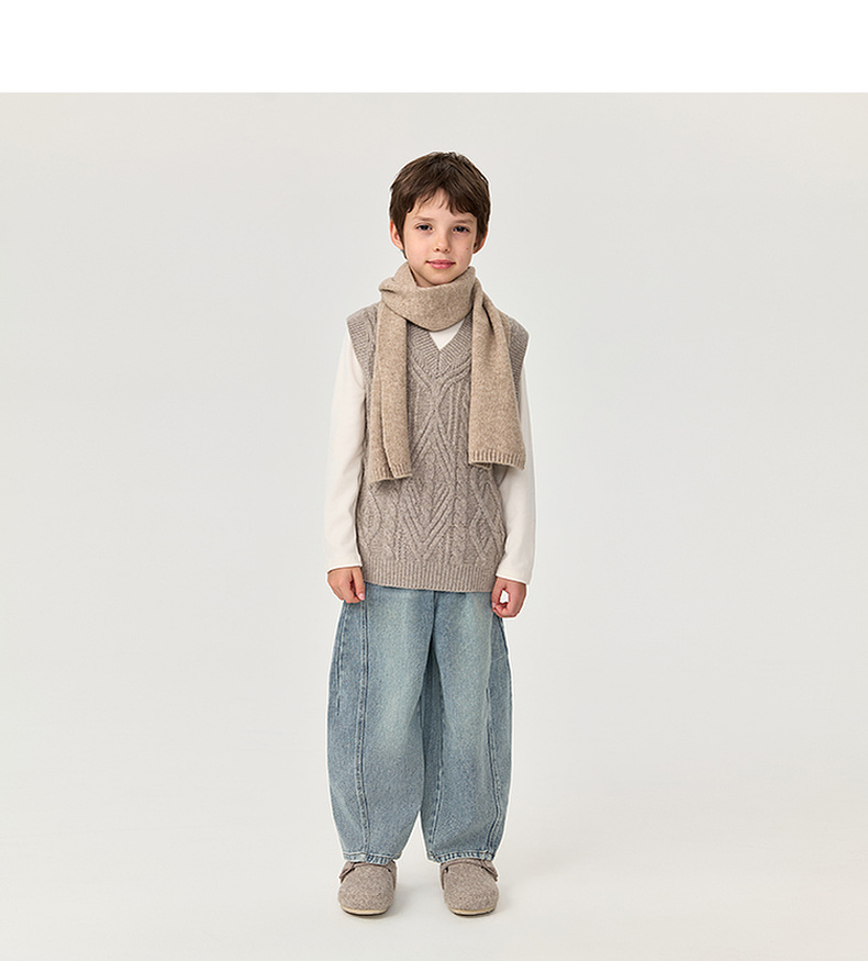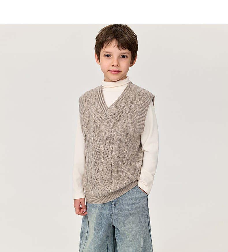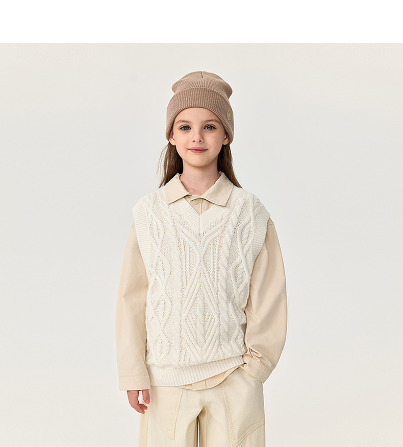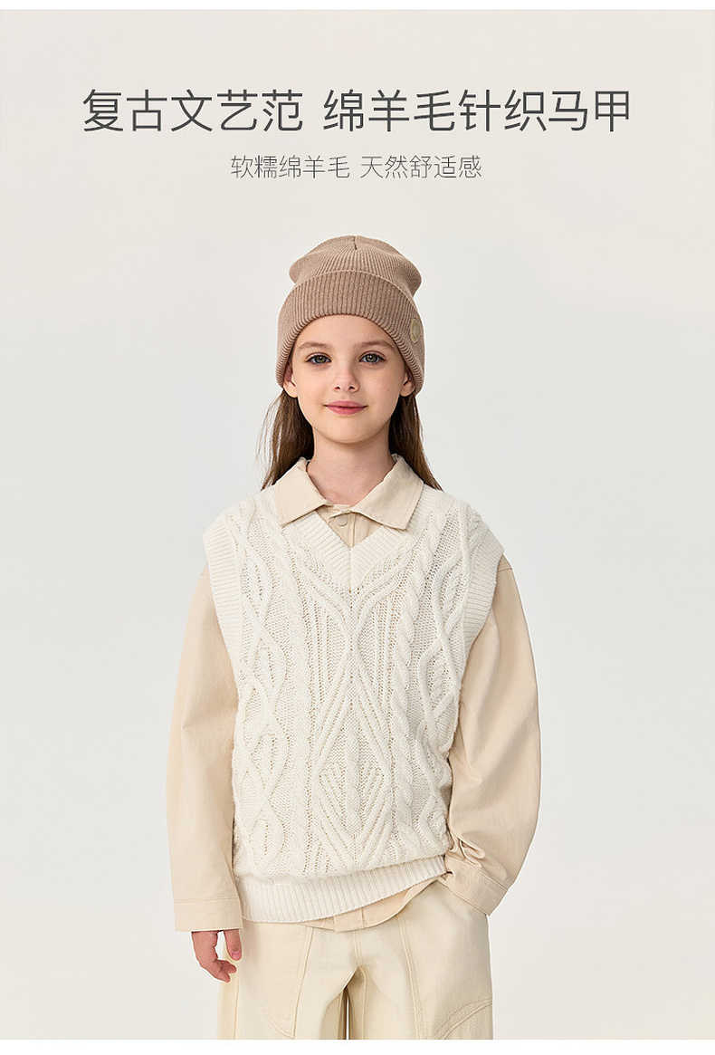 马克珍妮男女童复古文艺绵羊毛针织马甲2025年秋冬新款551810