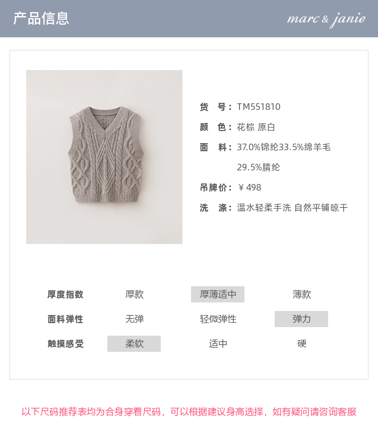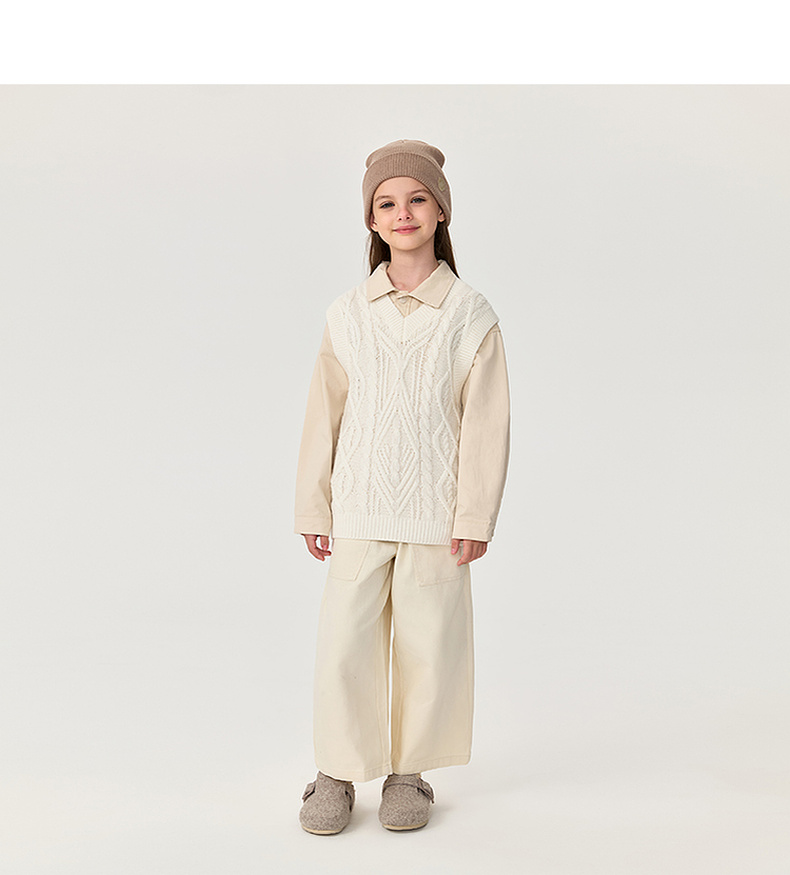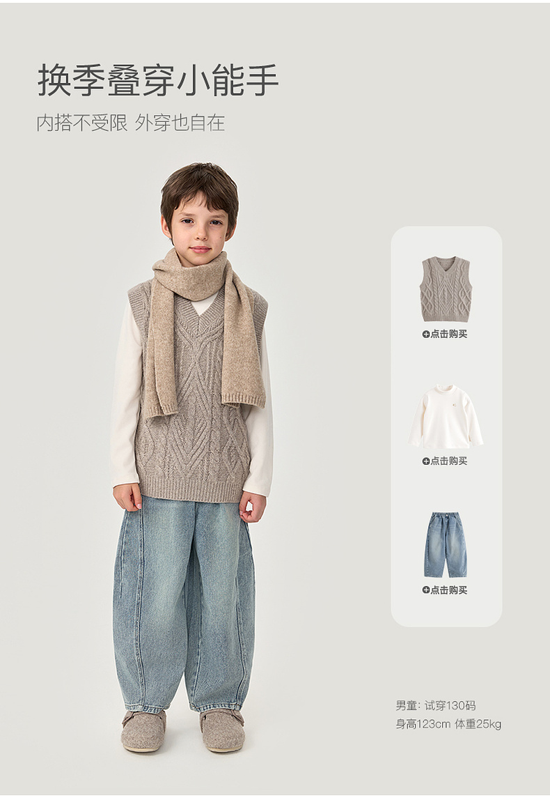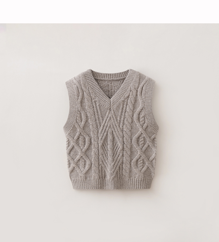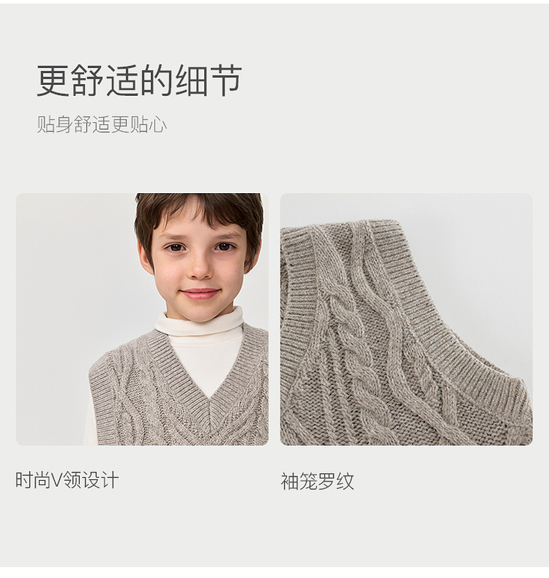 马克珍妮男女童复古文艺绵羊毛针织马甲2025年秋冬新款551810