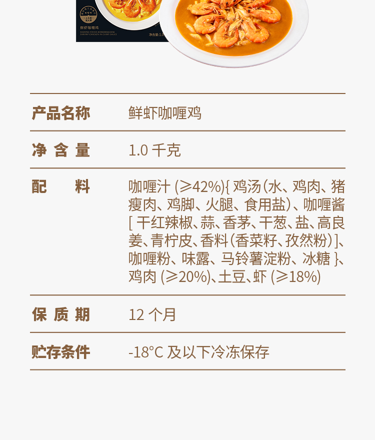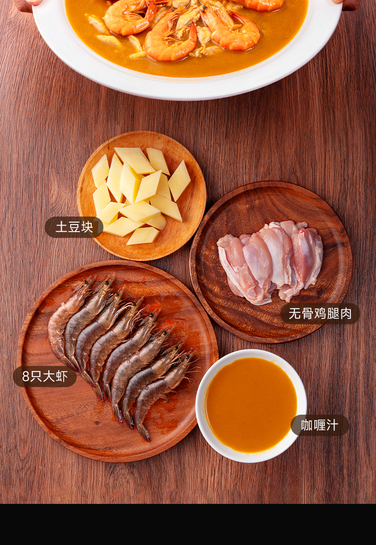 大董 鲜虾咖喱鸡 1000g 甄选8只大虾 特调咖喱 好吃下饭