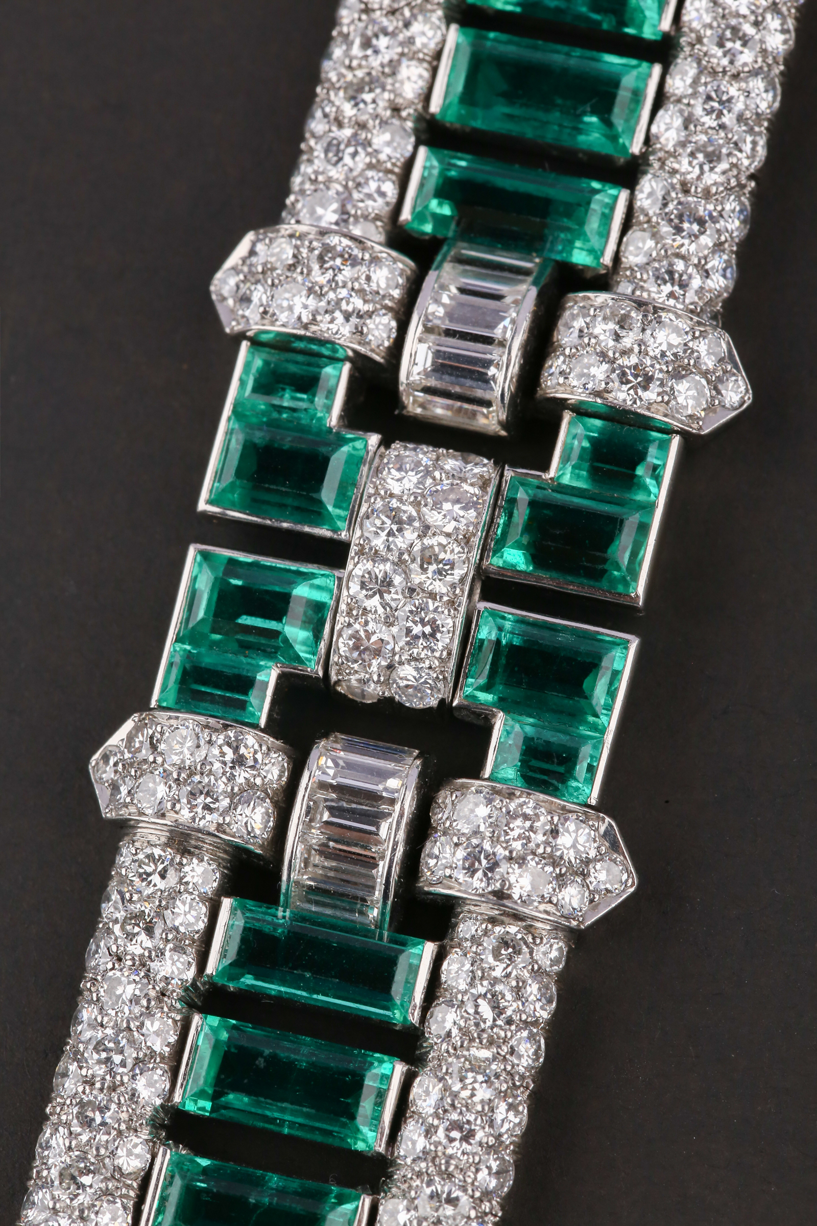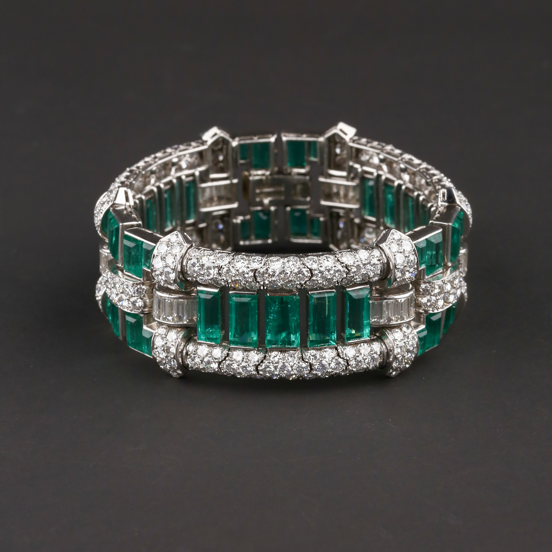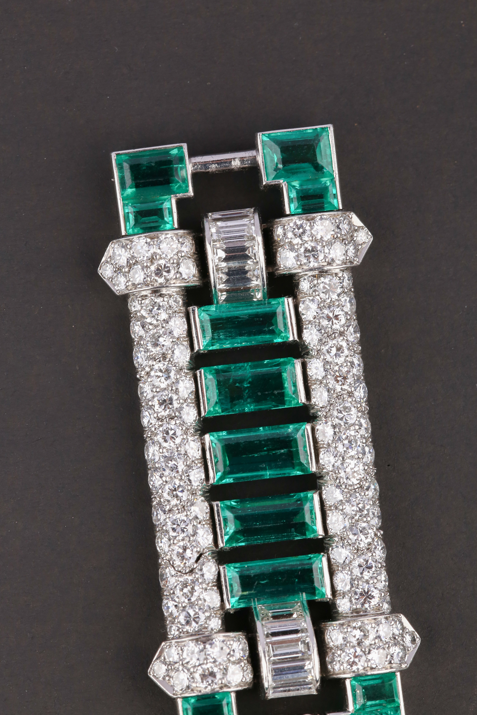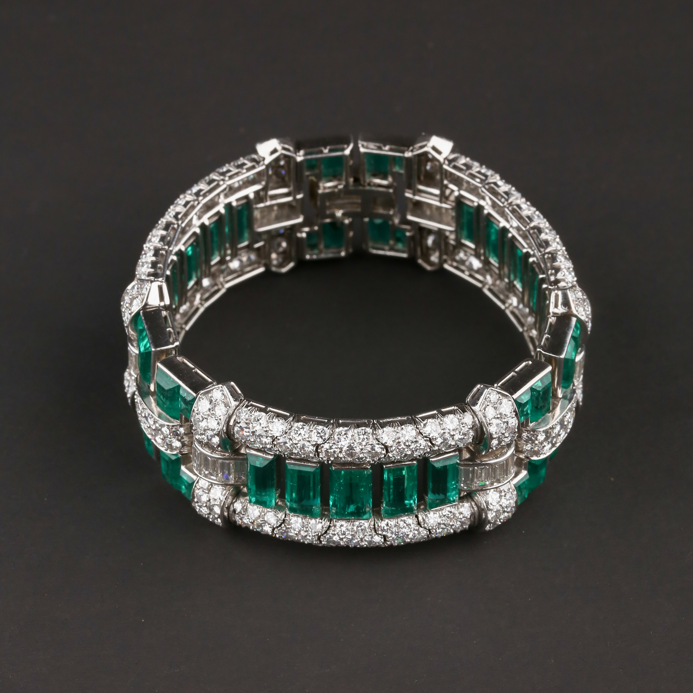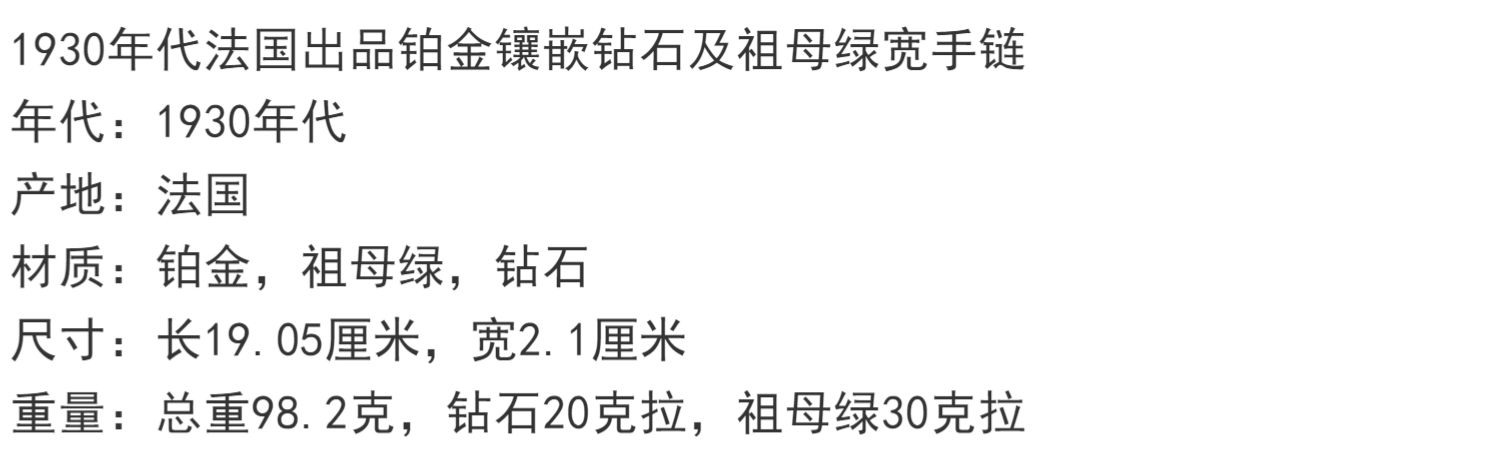 独角鹿西洋古董首饰珠宝法国铂金镶嵌钻石祖母绿宽手链手镯手饰