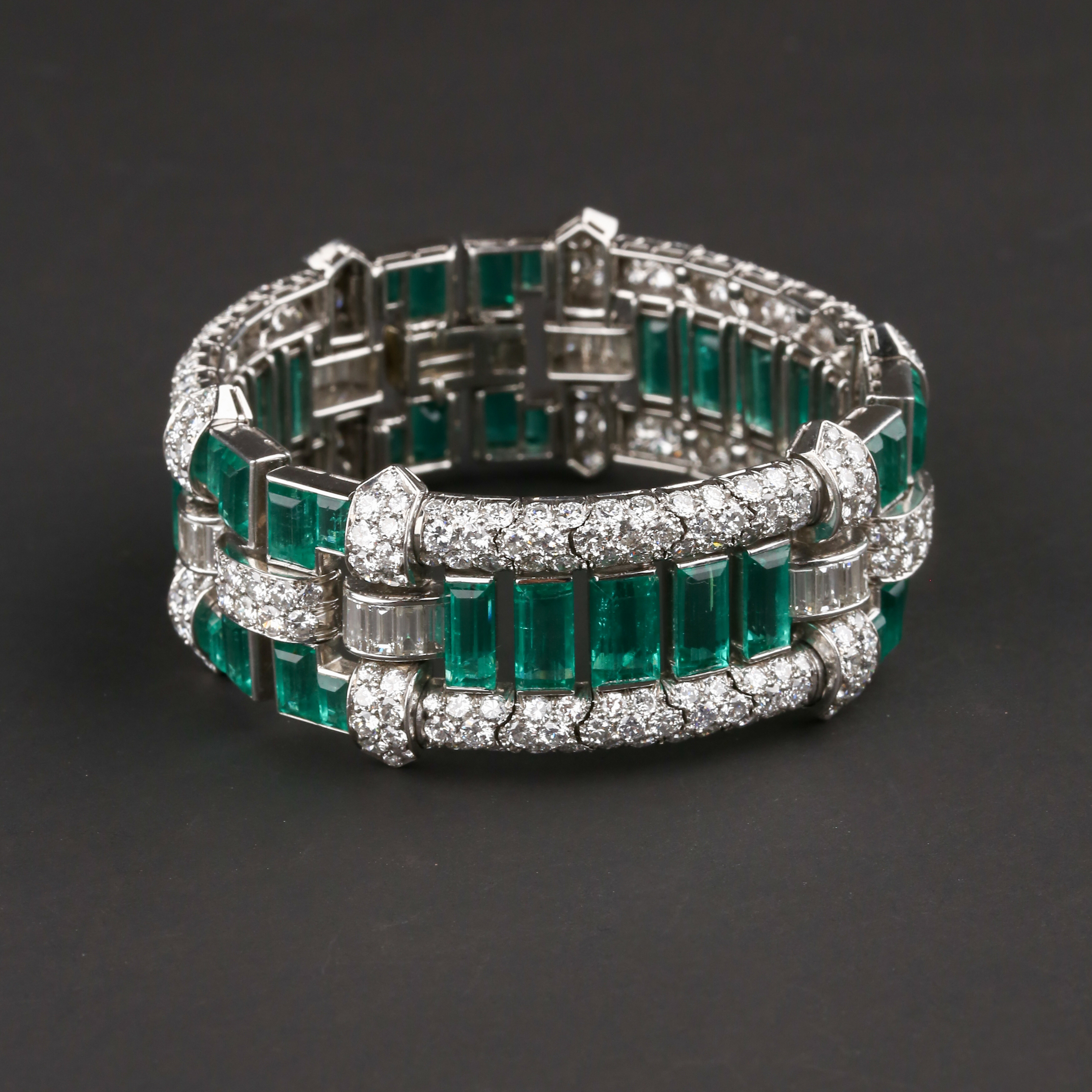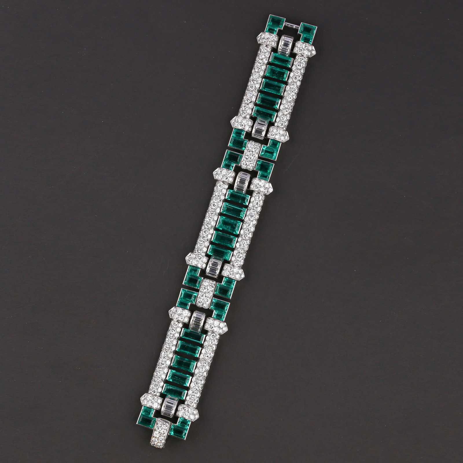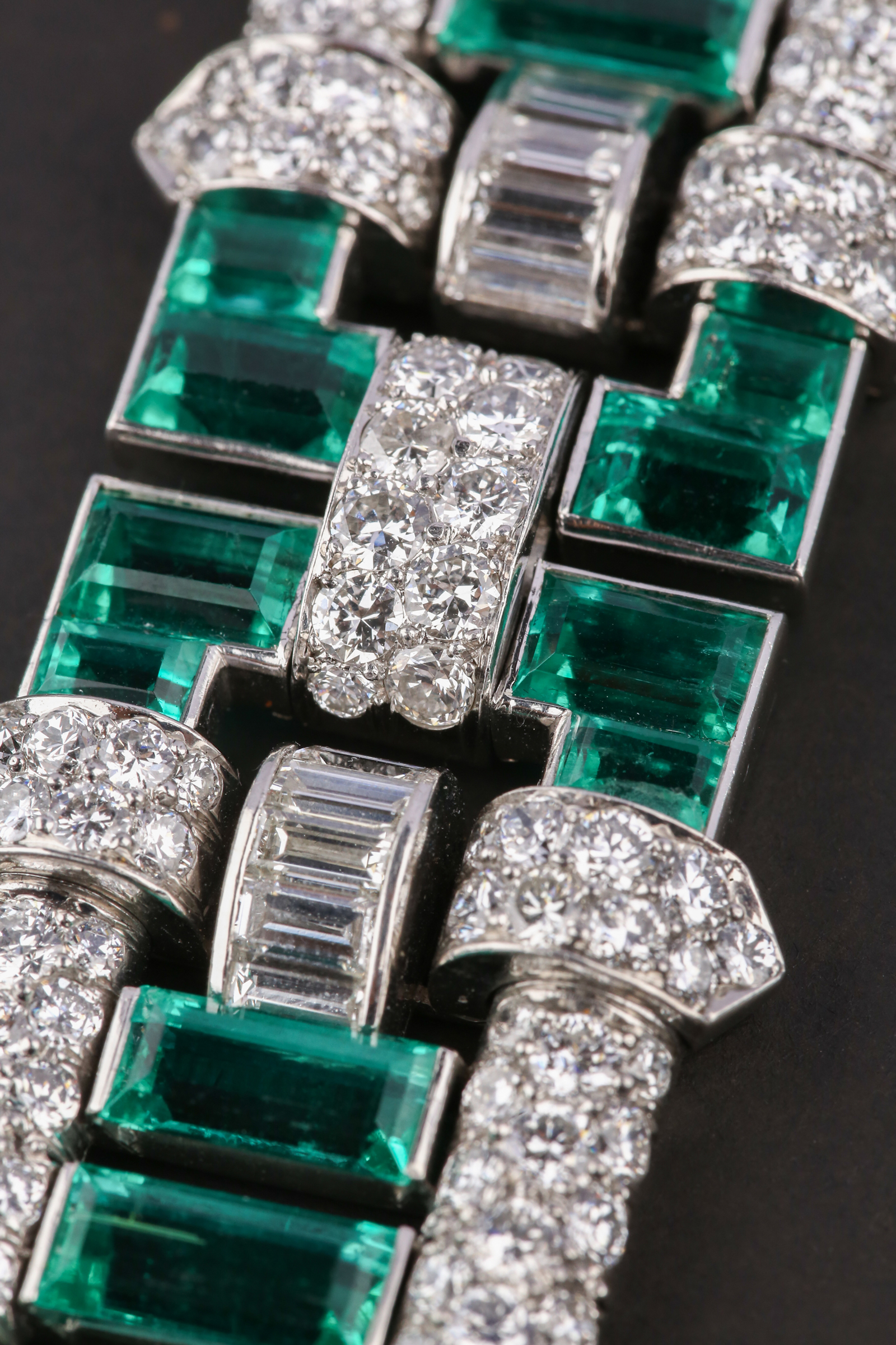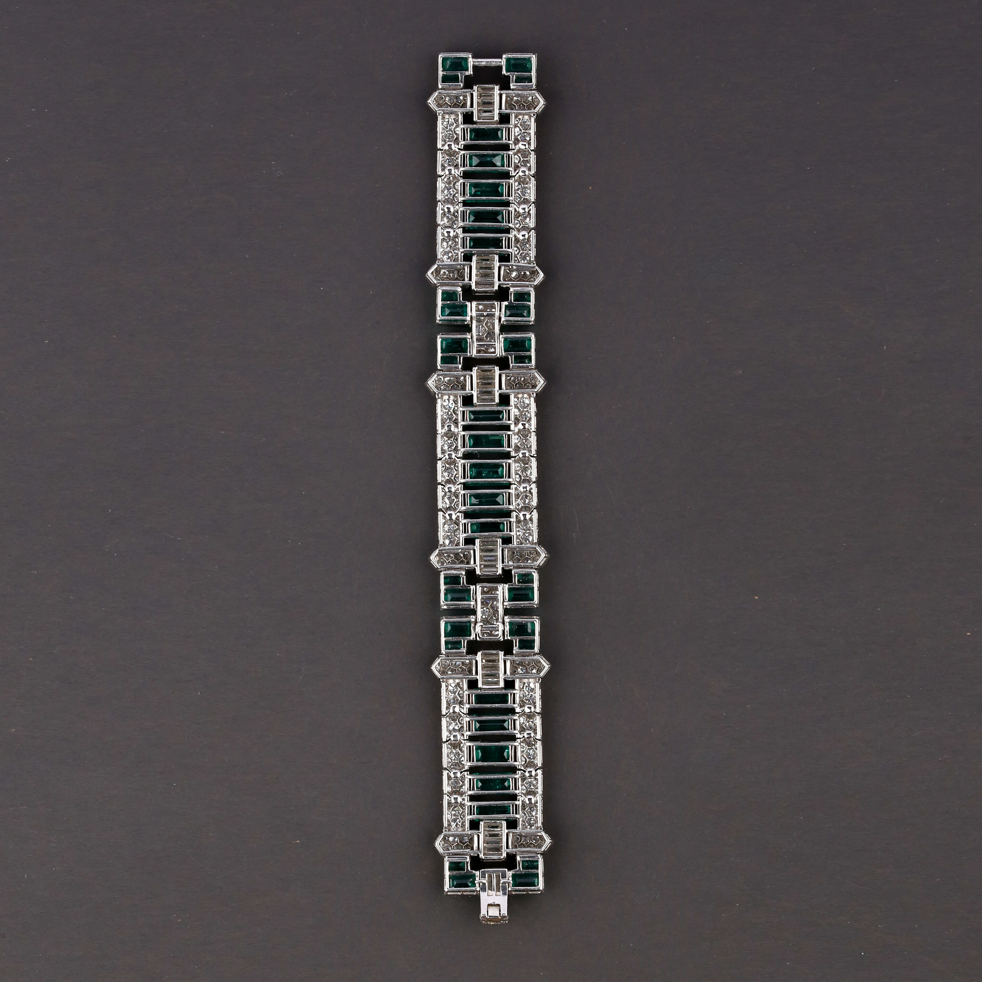 独角鹿西洋古董首饰珠宝法国铂金镶嵌钻石祖母绿宽手链手镯手饰