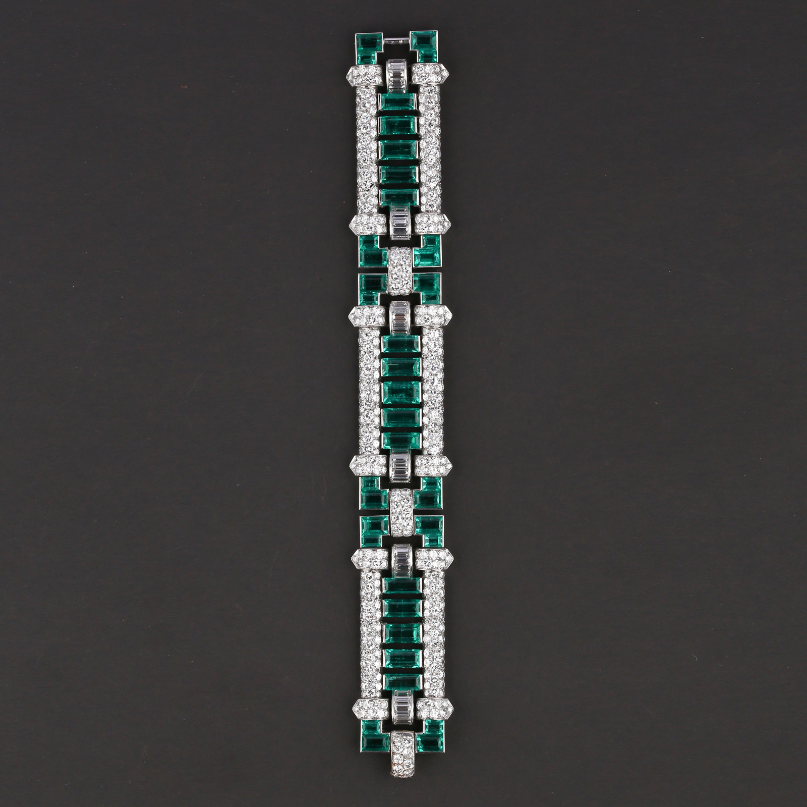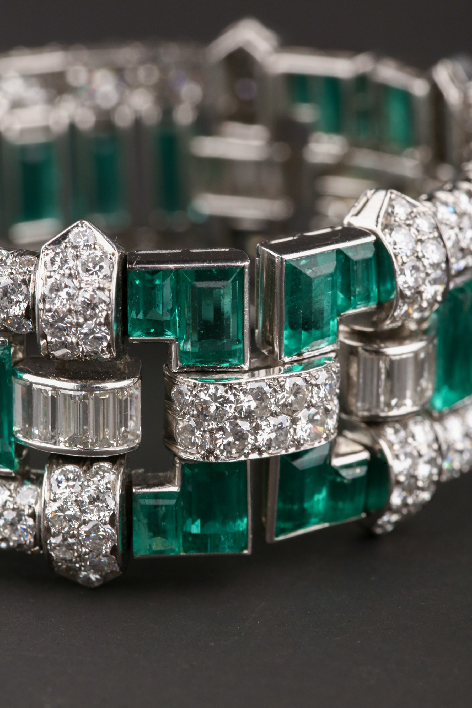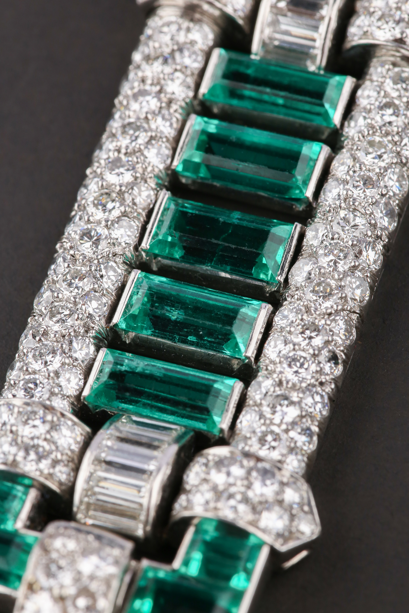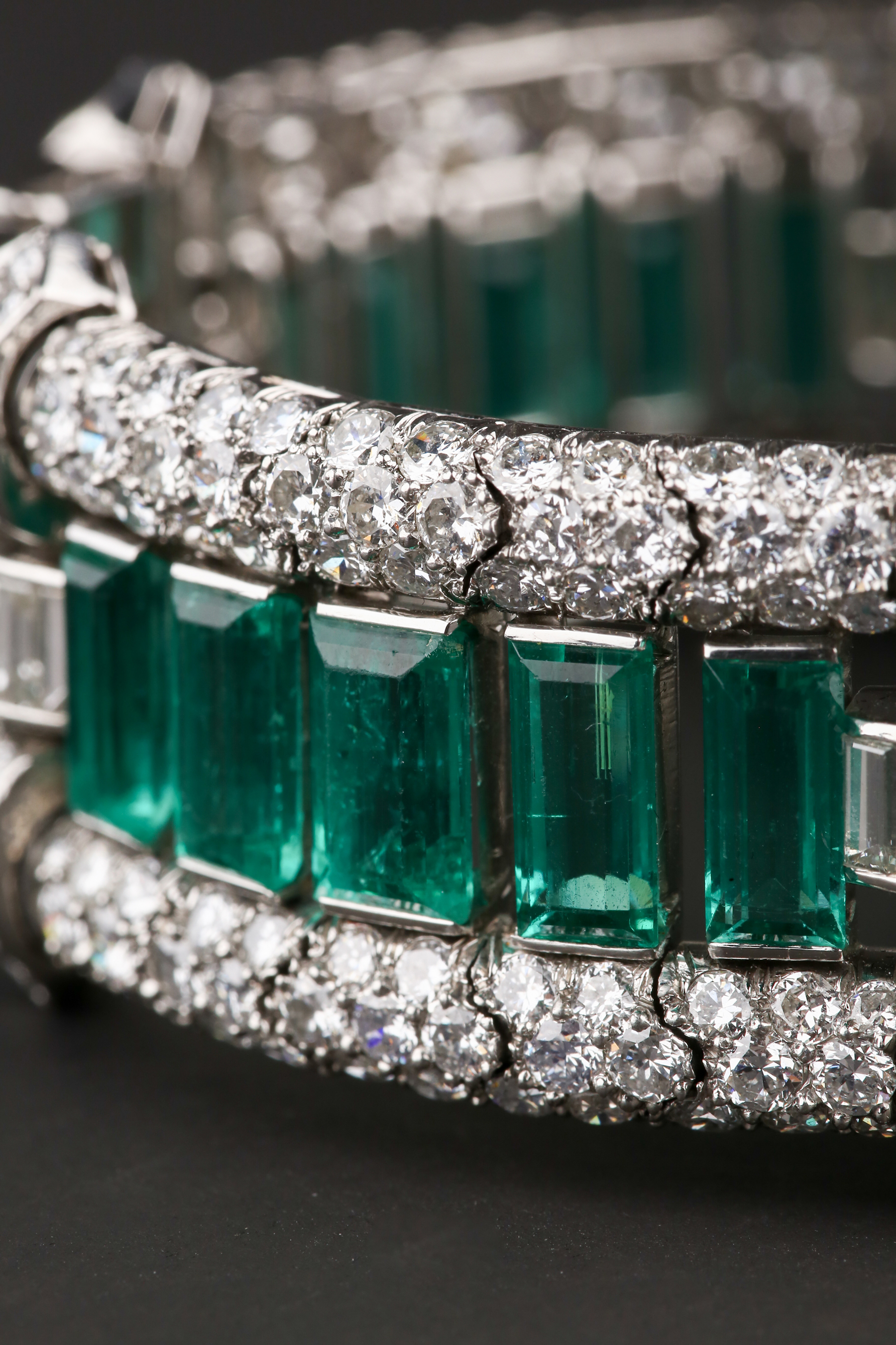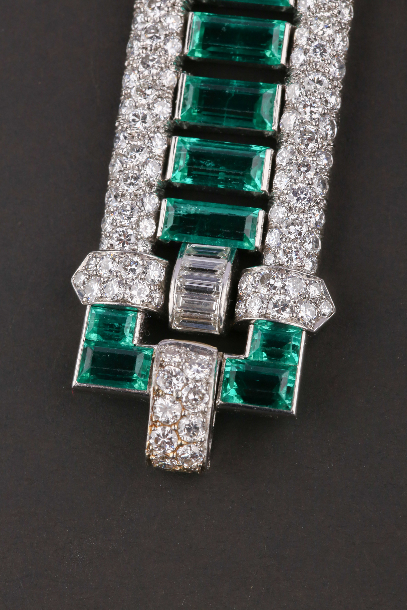 独角鹿西洋古董首饰珠宝法国铂金镶嵌钻石祖母绿宽手链手镯手饰