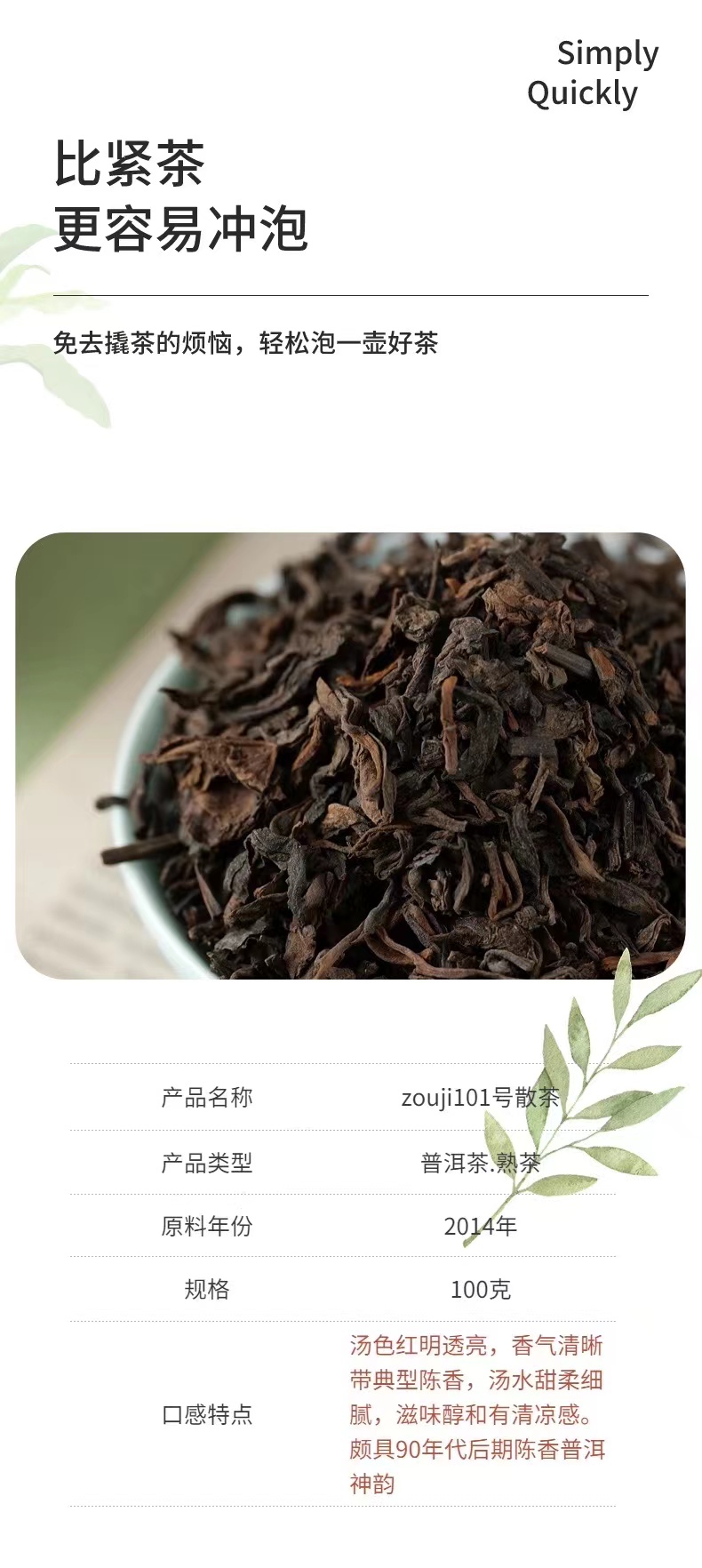邹记普洱散茶 2023年法国巴黎AVPA金奖普洱茶