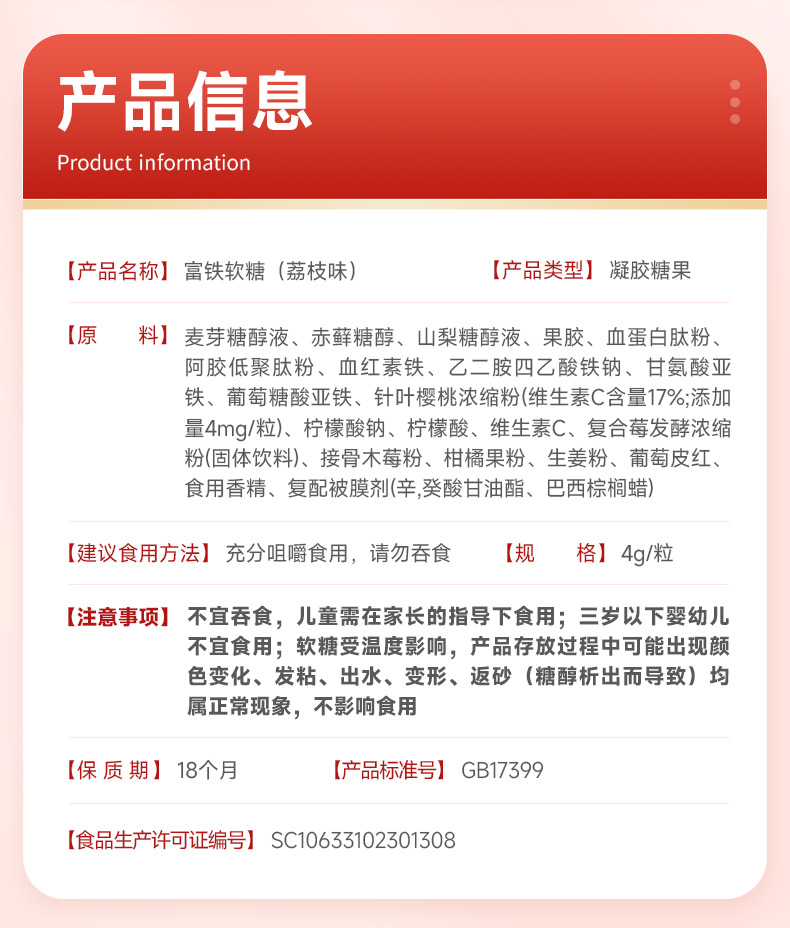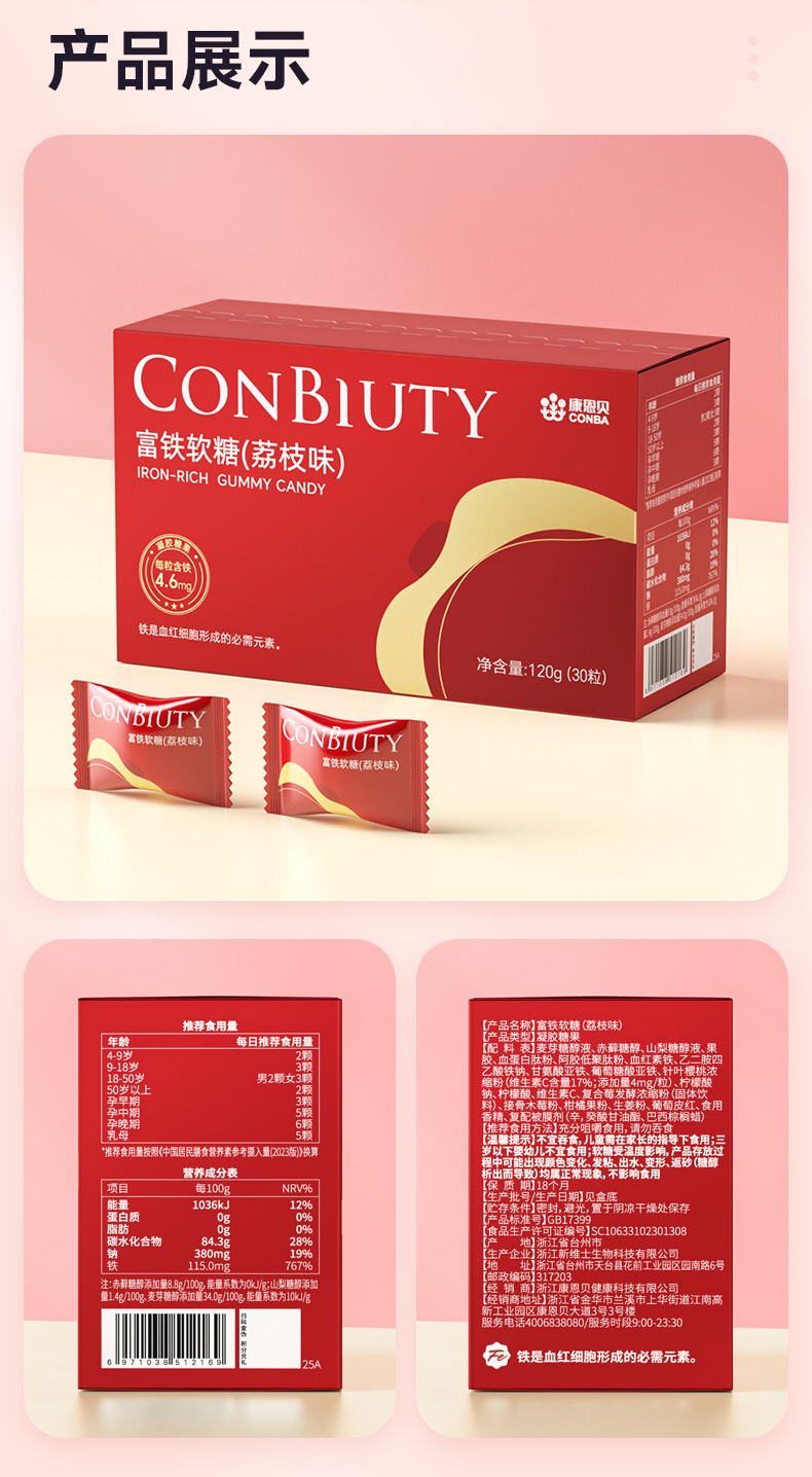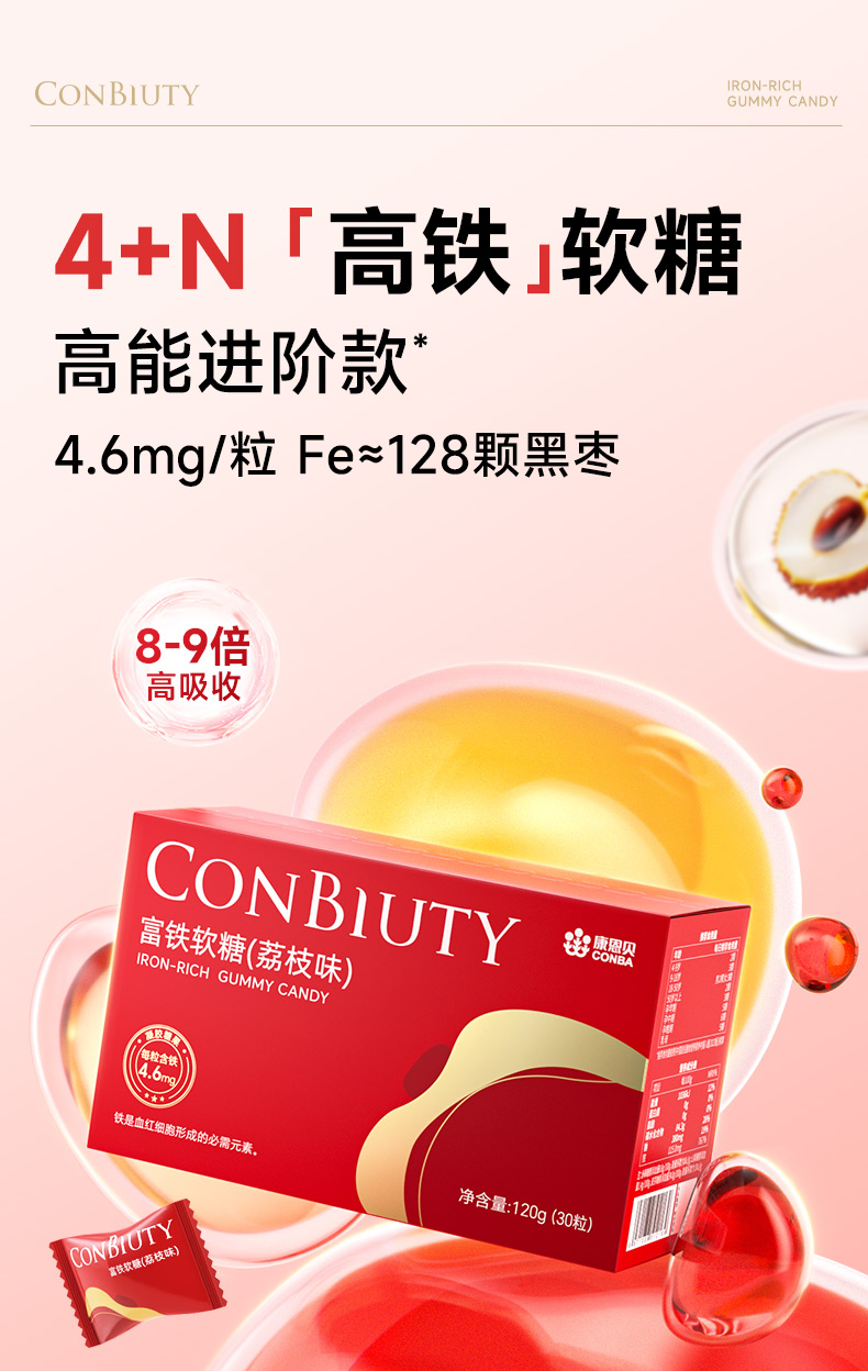 康恩贝富铁软糖(荔枝味)(4g*30粒/盒)