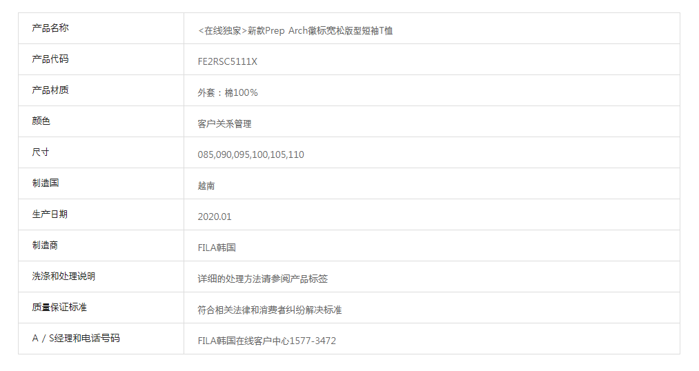 FILA斐乐韩国新款Prep Arch徽标宽松版型短袖T恤FE2RSC5111X_CRMJPY带授权招加盟代理