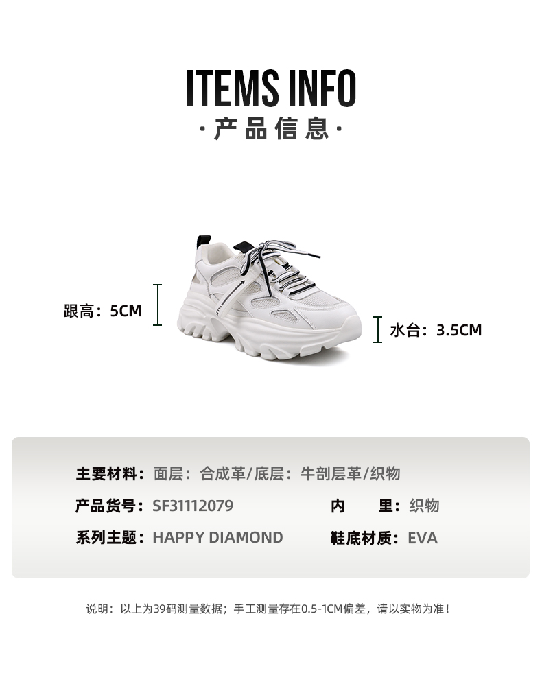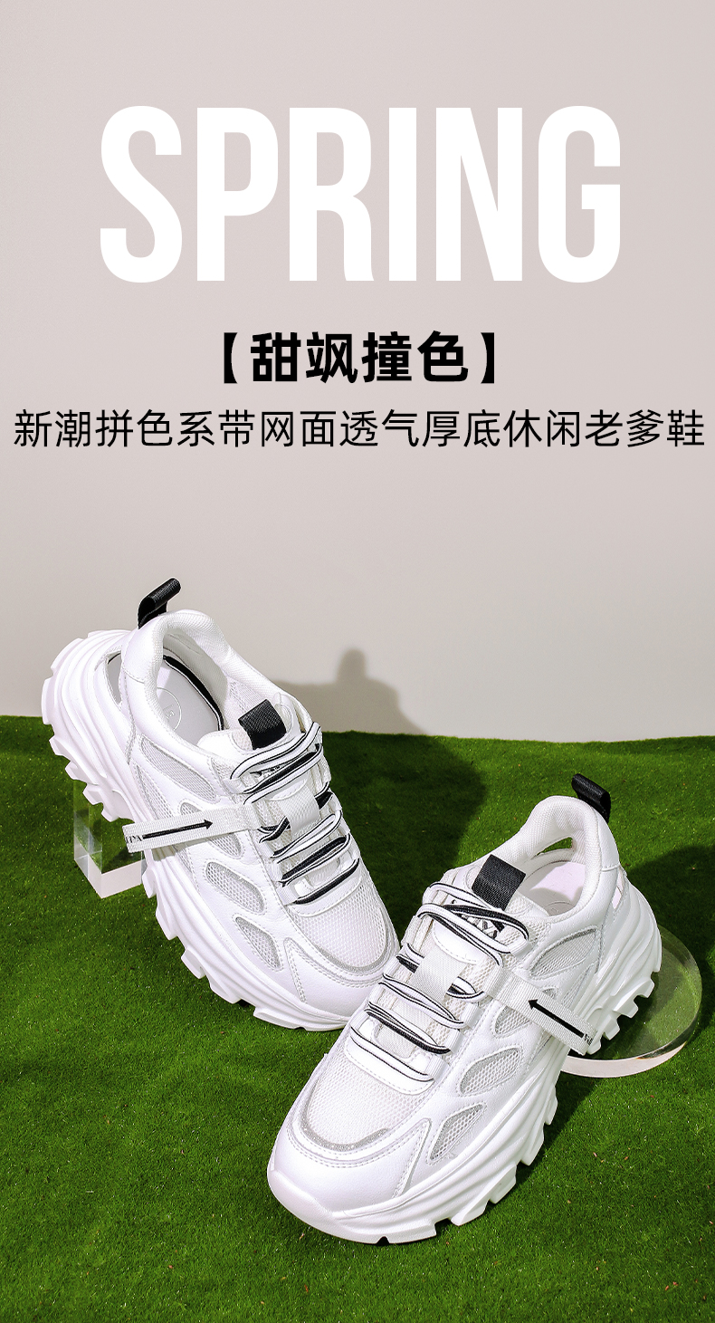 Safiya/索菲娅 新潮拼色系带2023年春季新款网面透气厚底休闲老爹鞋 SF31112079