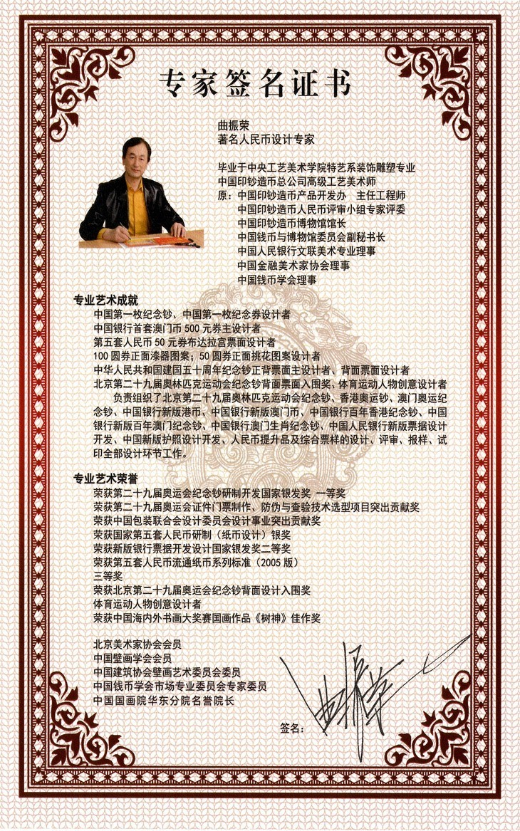 此枚藏品最珍贵之处,在于它承载了建国钞核心设计者曲振荣先生的亲笔签名。