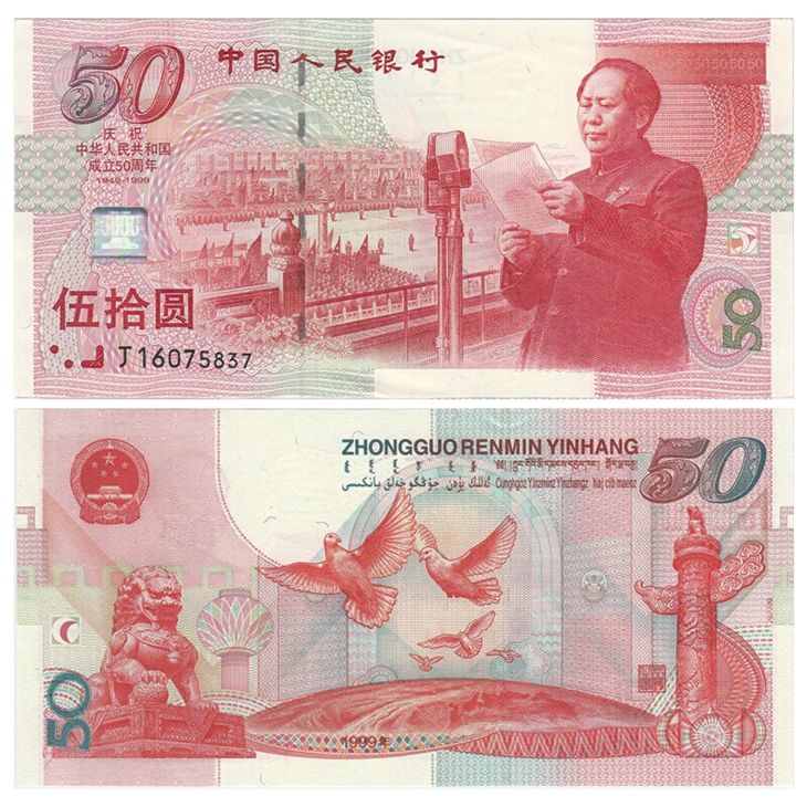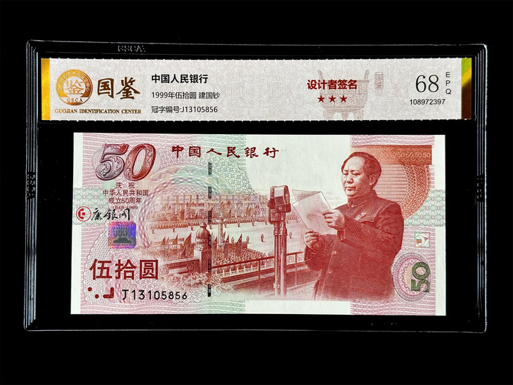 这是一枚镌刻着共和国半世纪荣光的时代信物。1999年,为庆祝中华人民共和国成立50周年,中国人民银行发行了新中国首枚纪念钞——建国50周年纪念钞。它以开国大典的庄严盛景为底本,将天安门的晨曦、飘扬的红旗与伟人的声音,凝缩在方寸纸币之间,成为一代人对祖国华诞最鲜活的记忆。