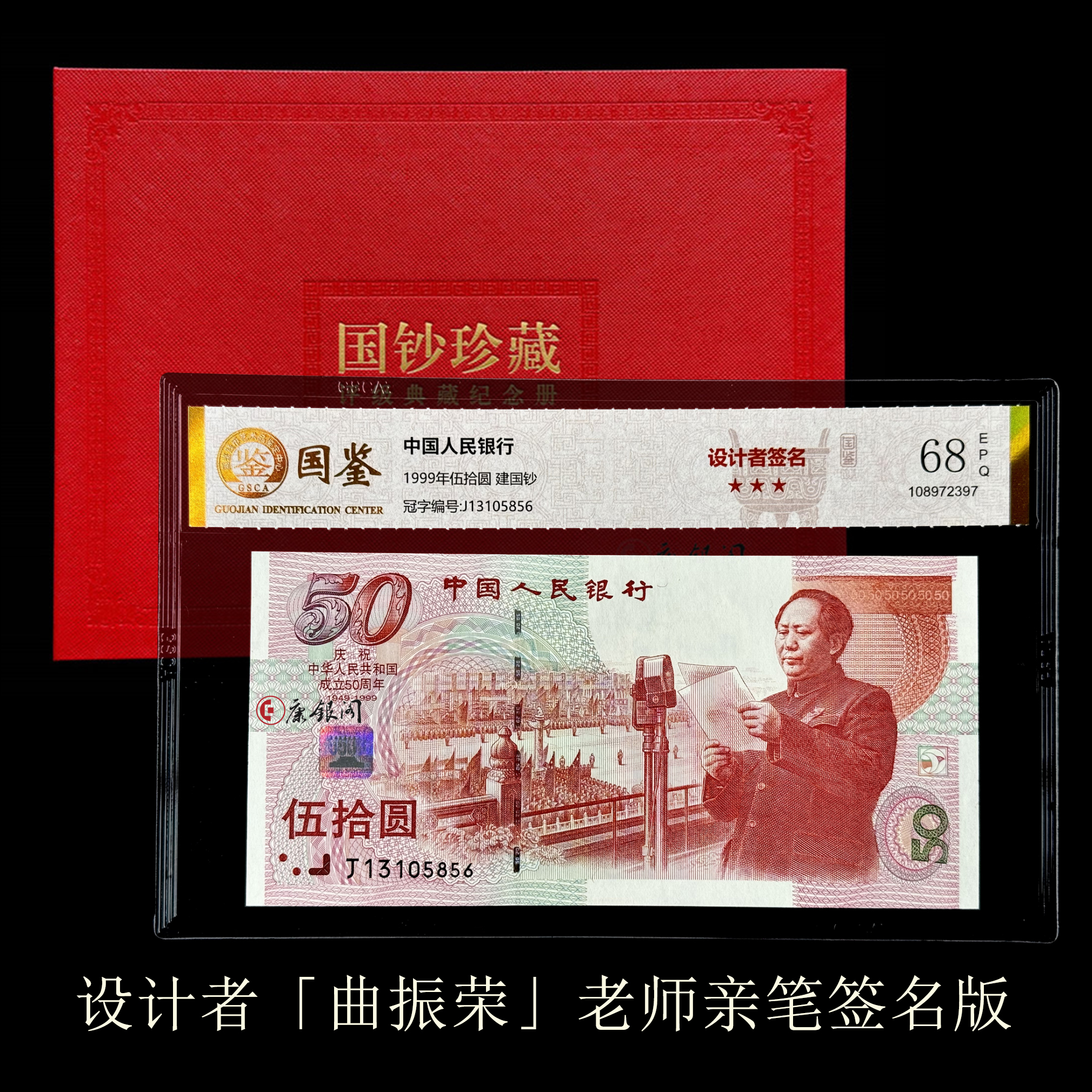 曲振荣先生是中国印钞造币领域的泰斗级专家,毕生深耕于人民币与纪念钞的设计创作,从第一枚纪念券到第五套人民币,他的笔触见证了中国货币艺术的成长。这枚建国钞,正是他倾注心血的代表作之一——从开国大典场景的构图,到荧光暗纹的巧思,每一处细节都凝聚着他对祖国的深情与对艺术的极致追求。