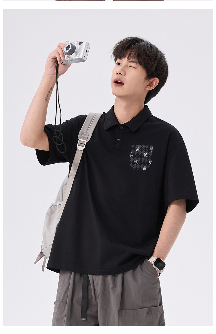 GXG男装 双色精致绣花休闲宽松圆领短袖T恤男生上衣 24年夏季热卖