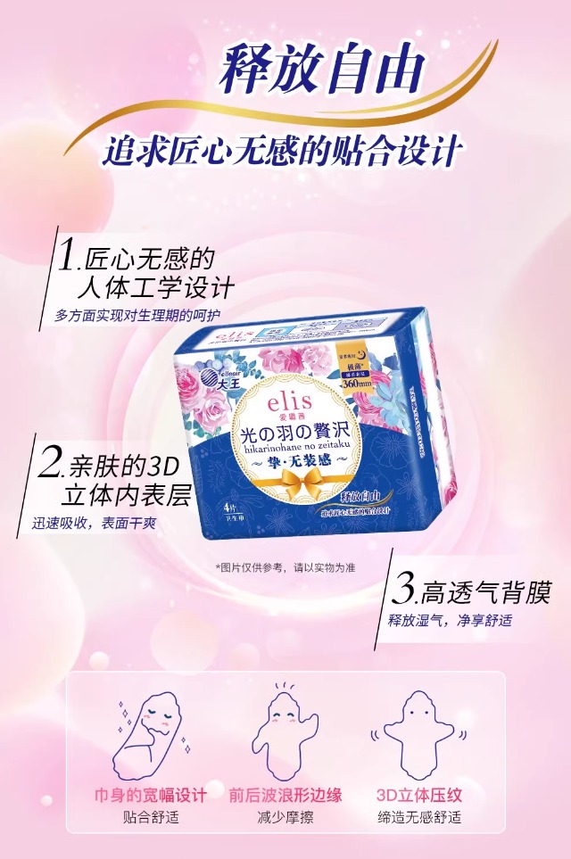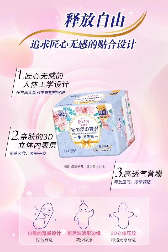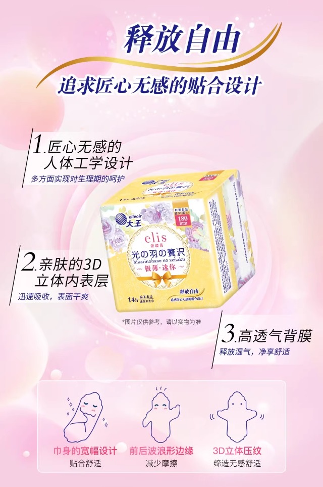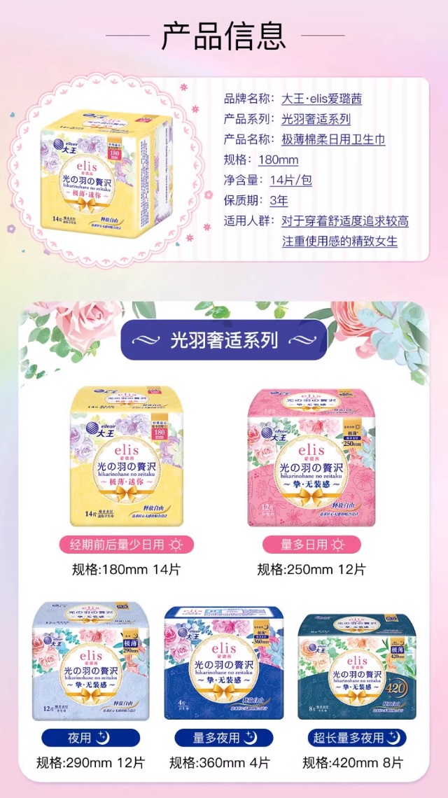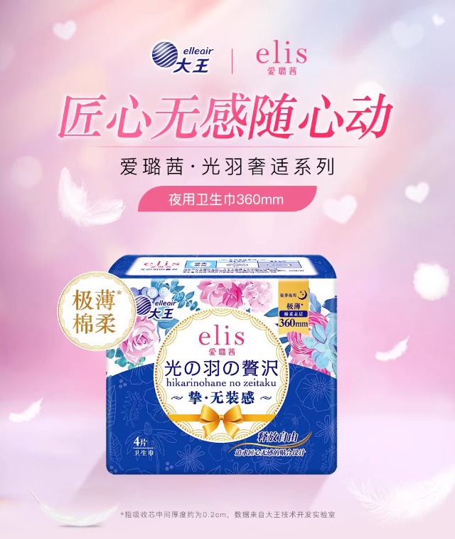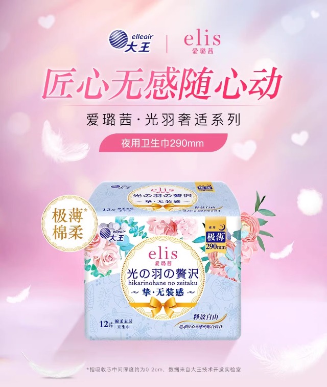 【四包一组】大王elis 爱璐茜 光羽极薄棉柔系列 日夜卫生巾