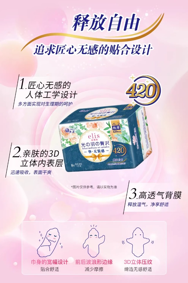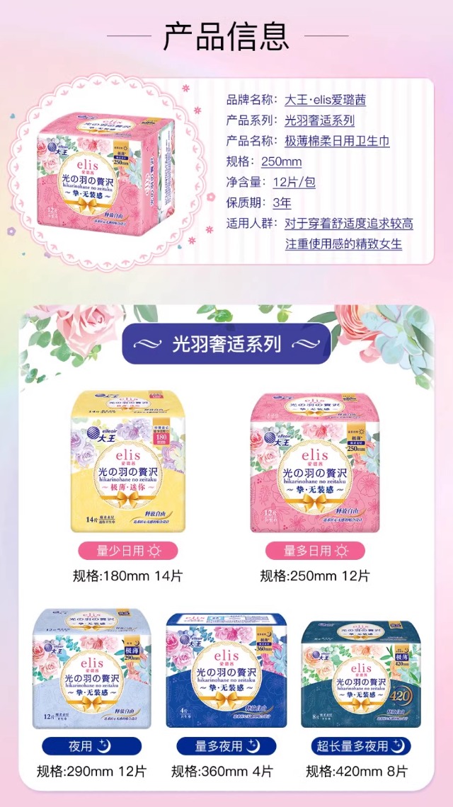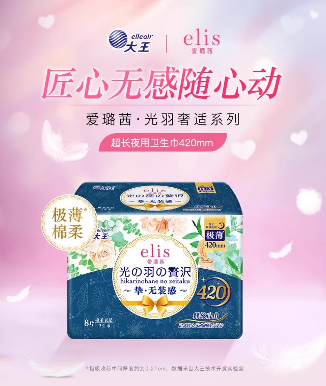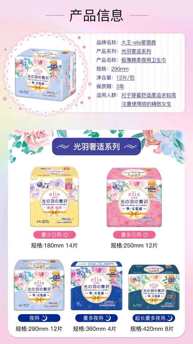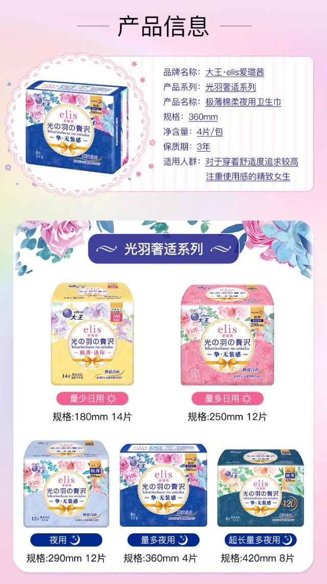 【四包一组】大王elis 爱璐茜 光羽极薄棉柔系列 日夜卫生巾