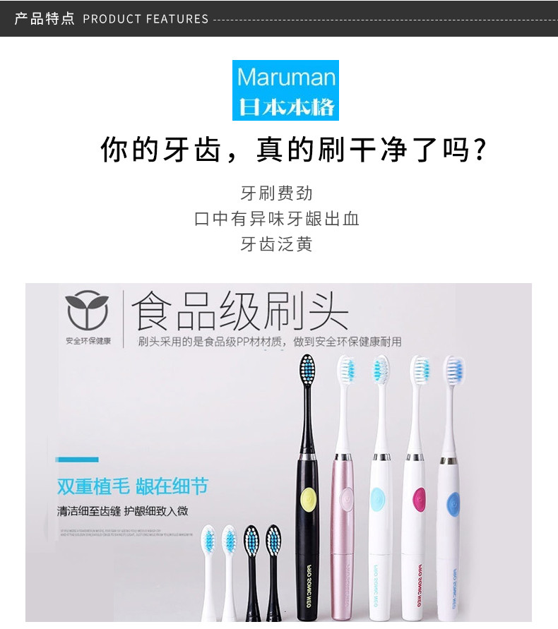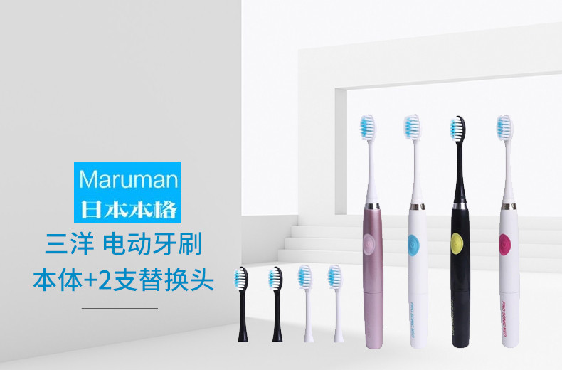 新款 三洋 成人电动牙刷超声波震动电池 本体+2个替换装 天蓝色JPY带授权招加盟代理