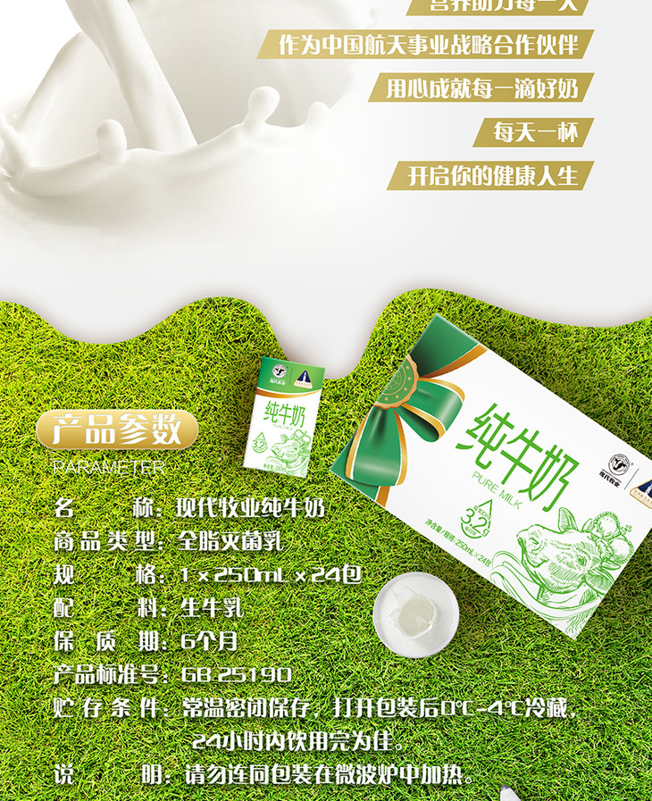 现代牧业纯牛奶全脂灭菌乳利乐包250ml×24包(N1)
