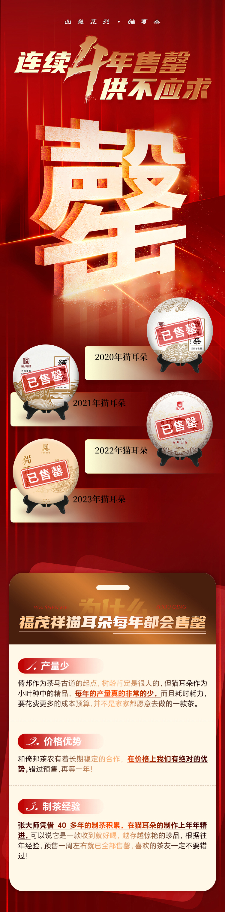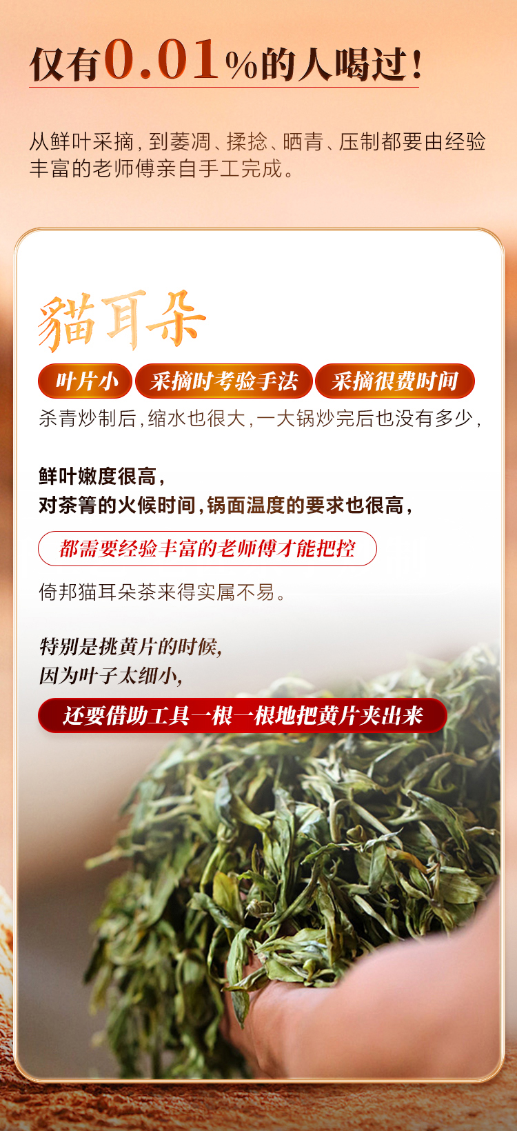 【2024年春茶】【猫耳朵】连续四年断货王!新签约核心地块,品质更胜去年 2024年云南易武茶区倚邦普洱茶生茶古树茶饼357g
