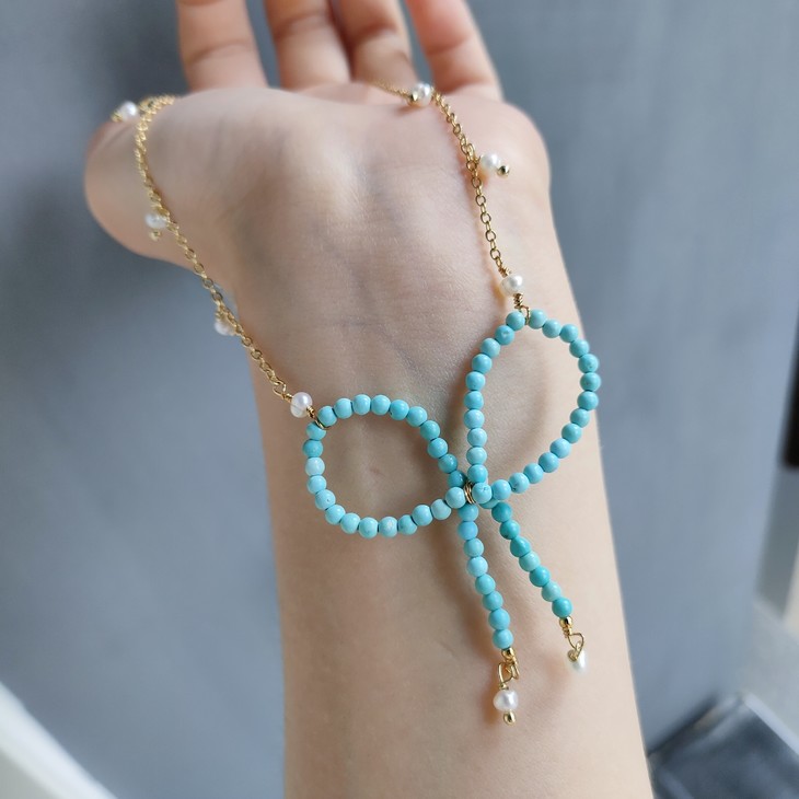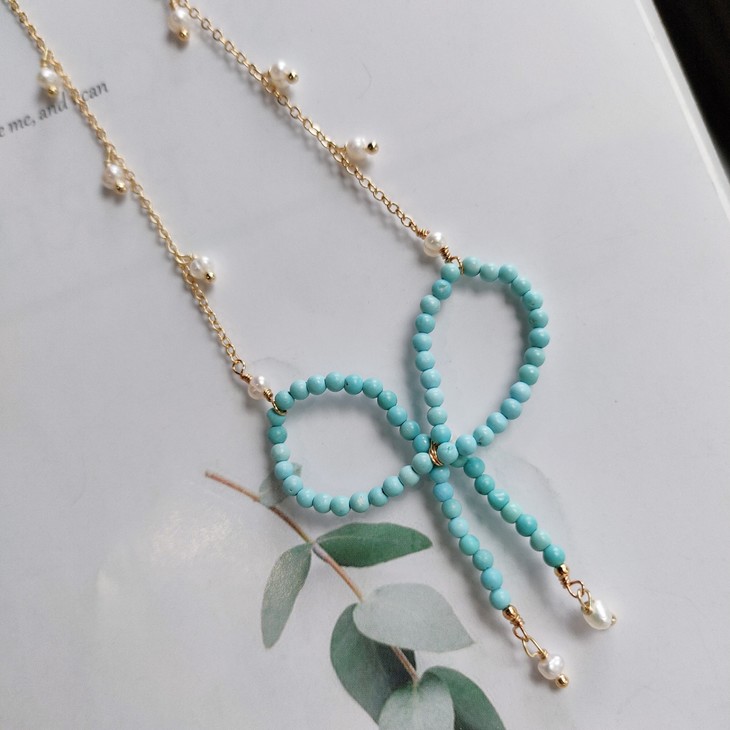 编码:DC0422190340绿松蝴蝶结项链尺寸:52*46mm售价:398元