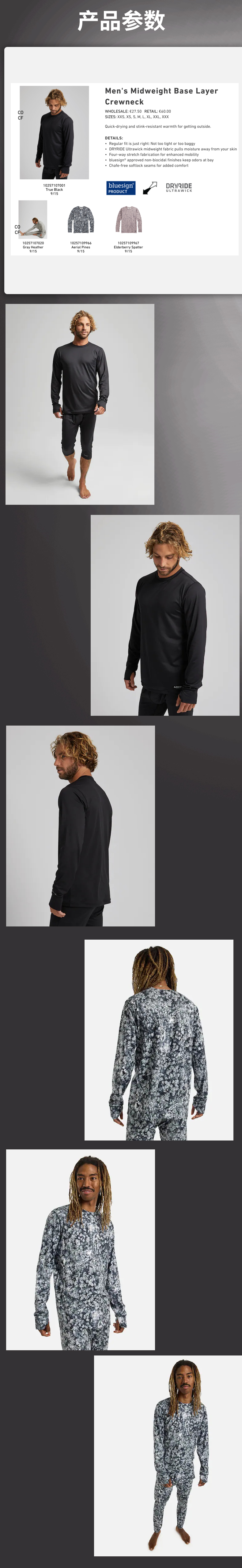 BURTON伯顿男士速干衬衫速干衬衣透气保暖打底户外长袖 迷彩灰