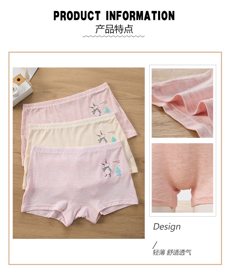(一盒两条)少女童少男童孩童莫代尔彩纱精梳棉学生裤平角内裤0047/0050