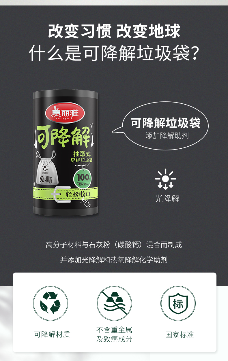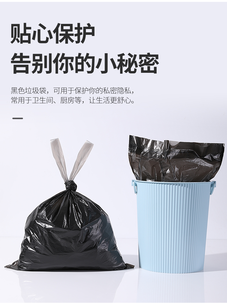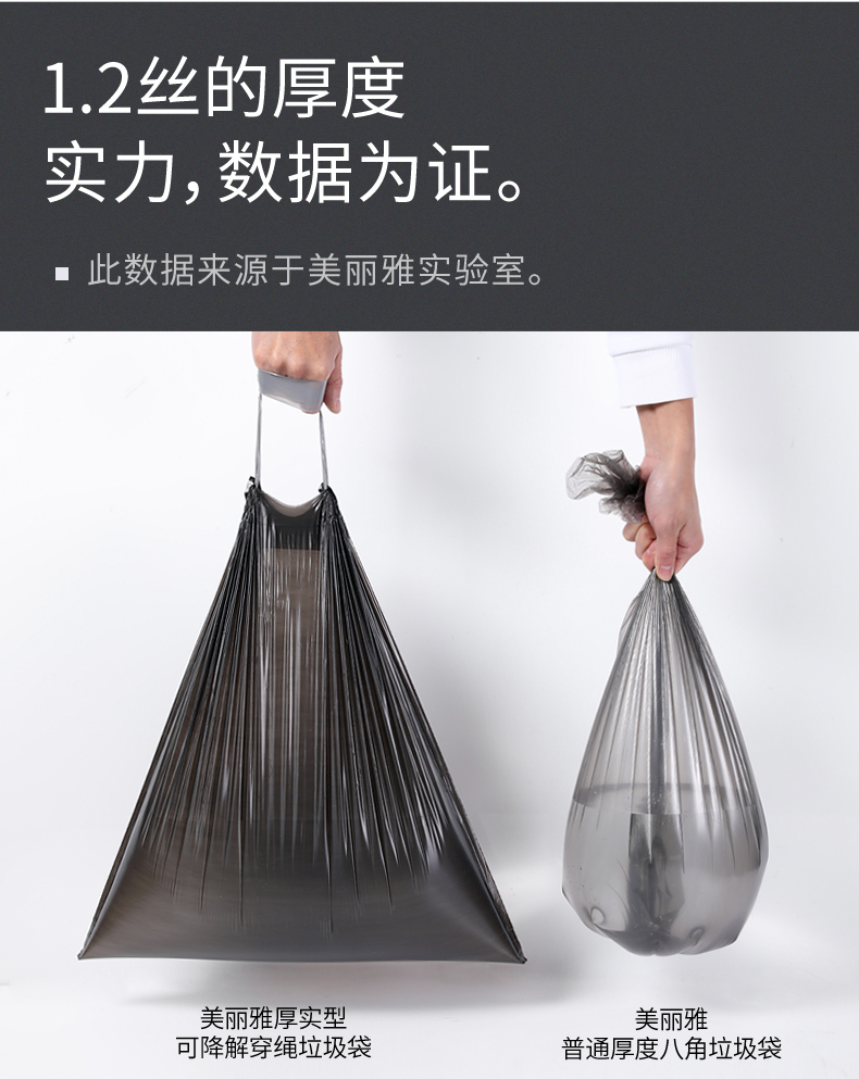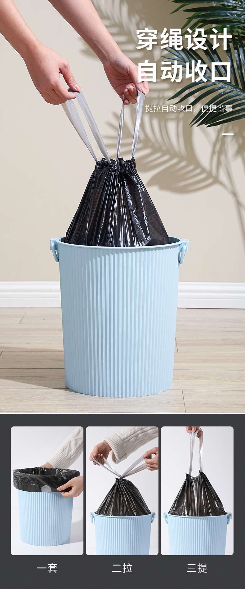 美丽雅家用可降解穿绳垃圾袋免手撕手提式加厚大号黑色