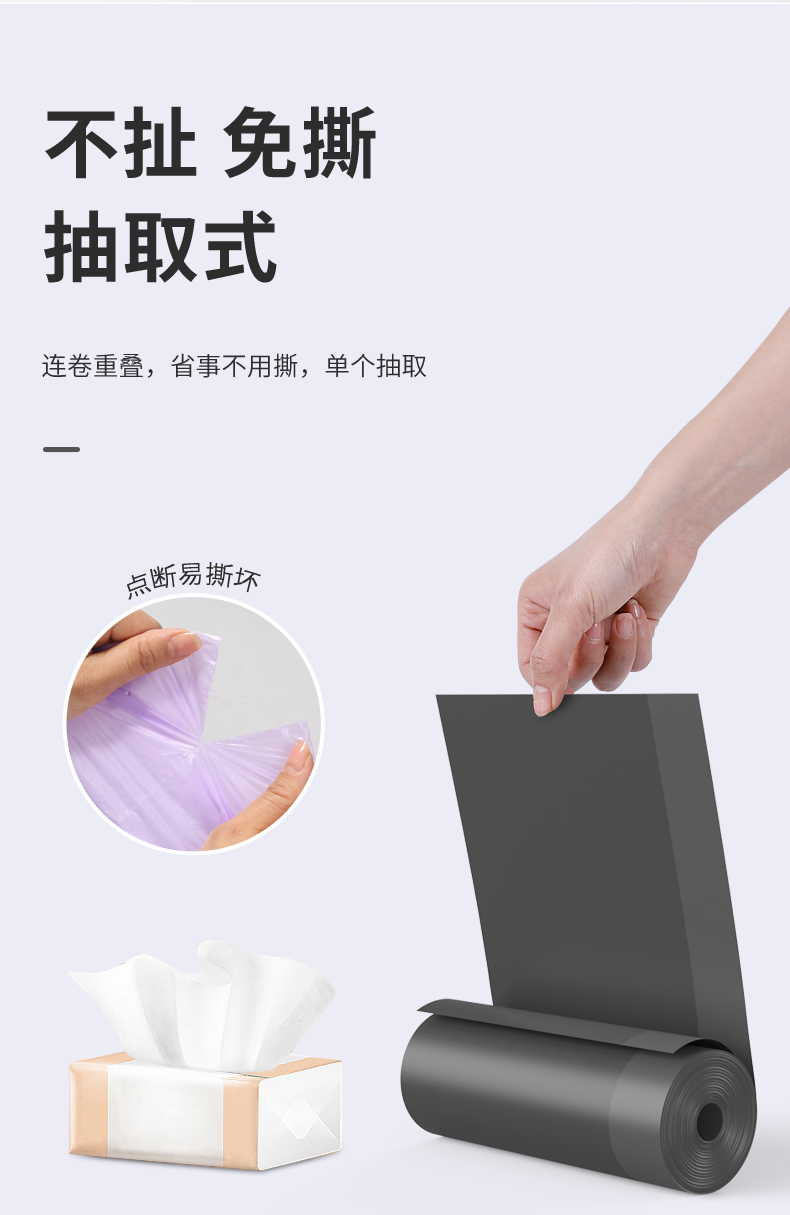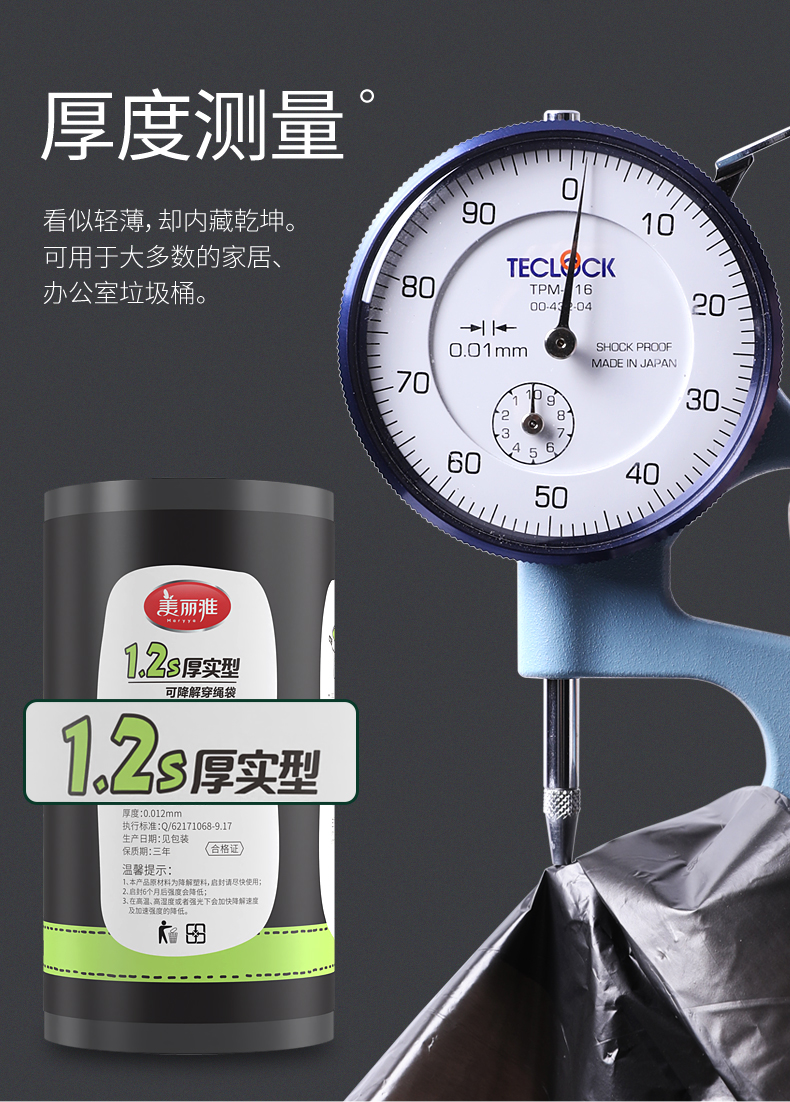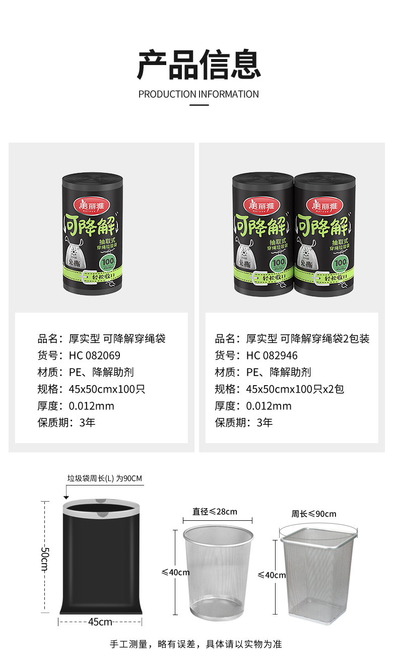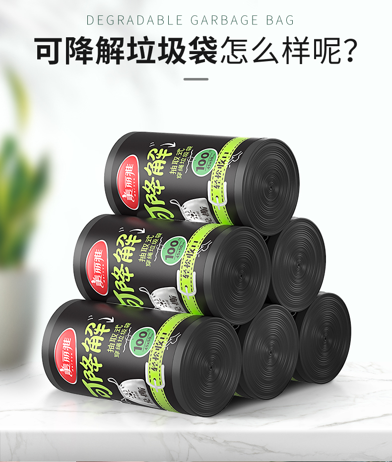 美丽雅家用可降解穿绳垃圾袋免手撕手提式加厚大号黑色