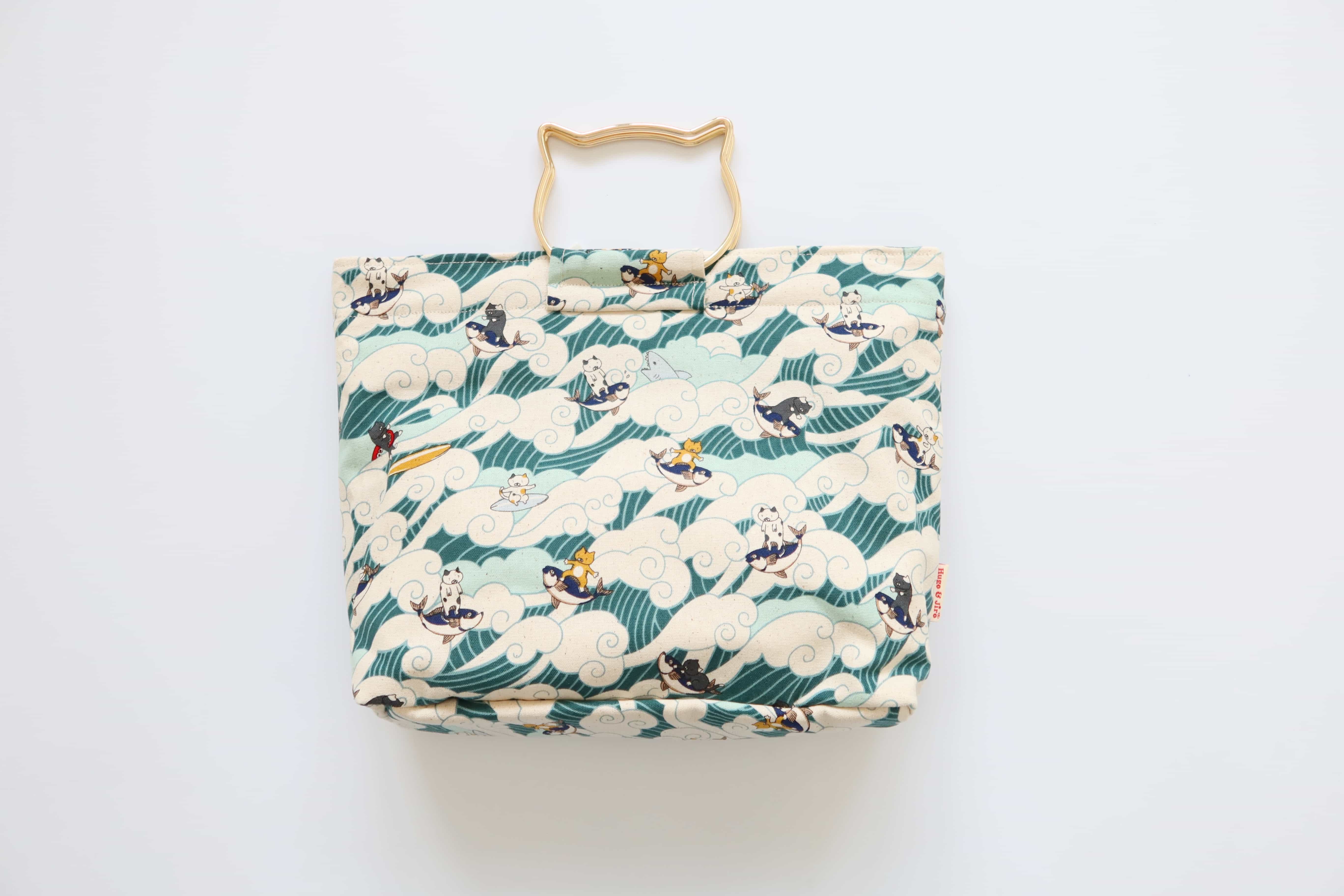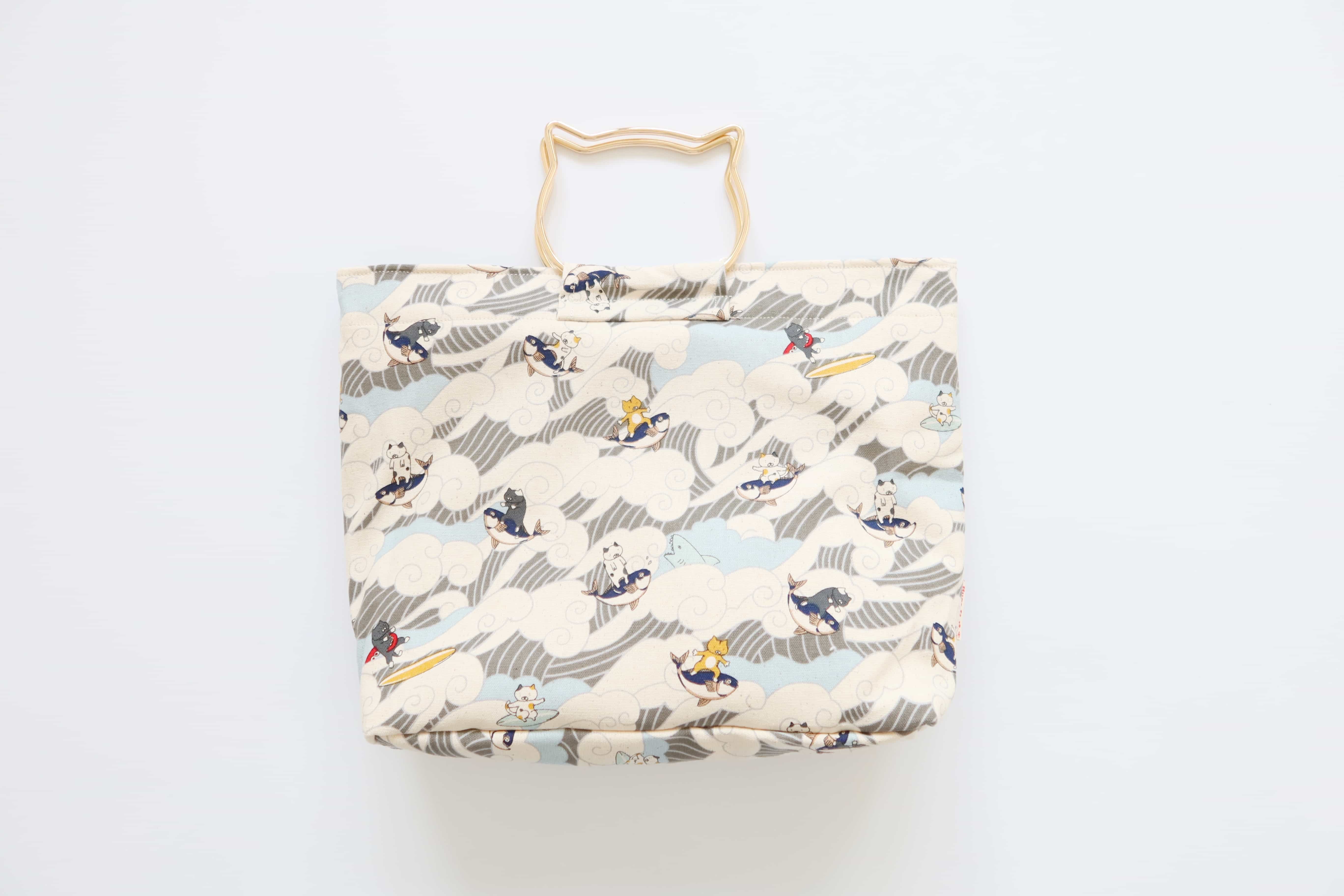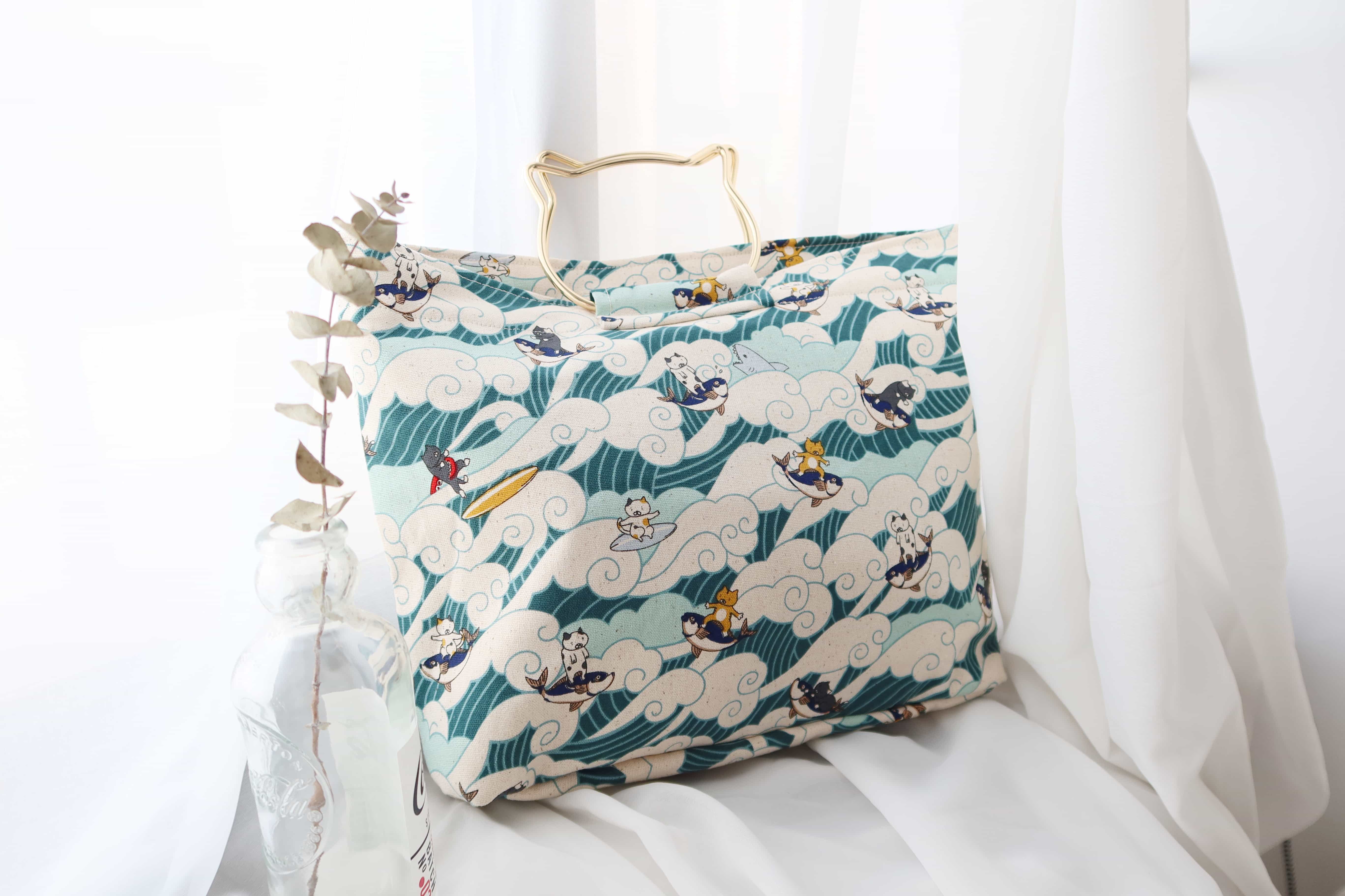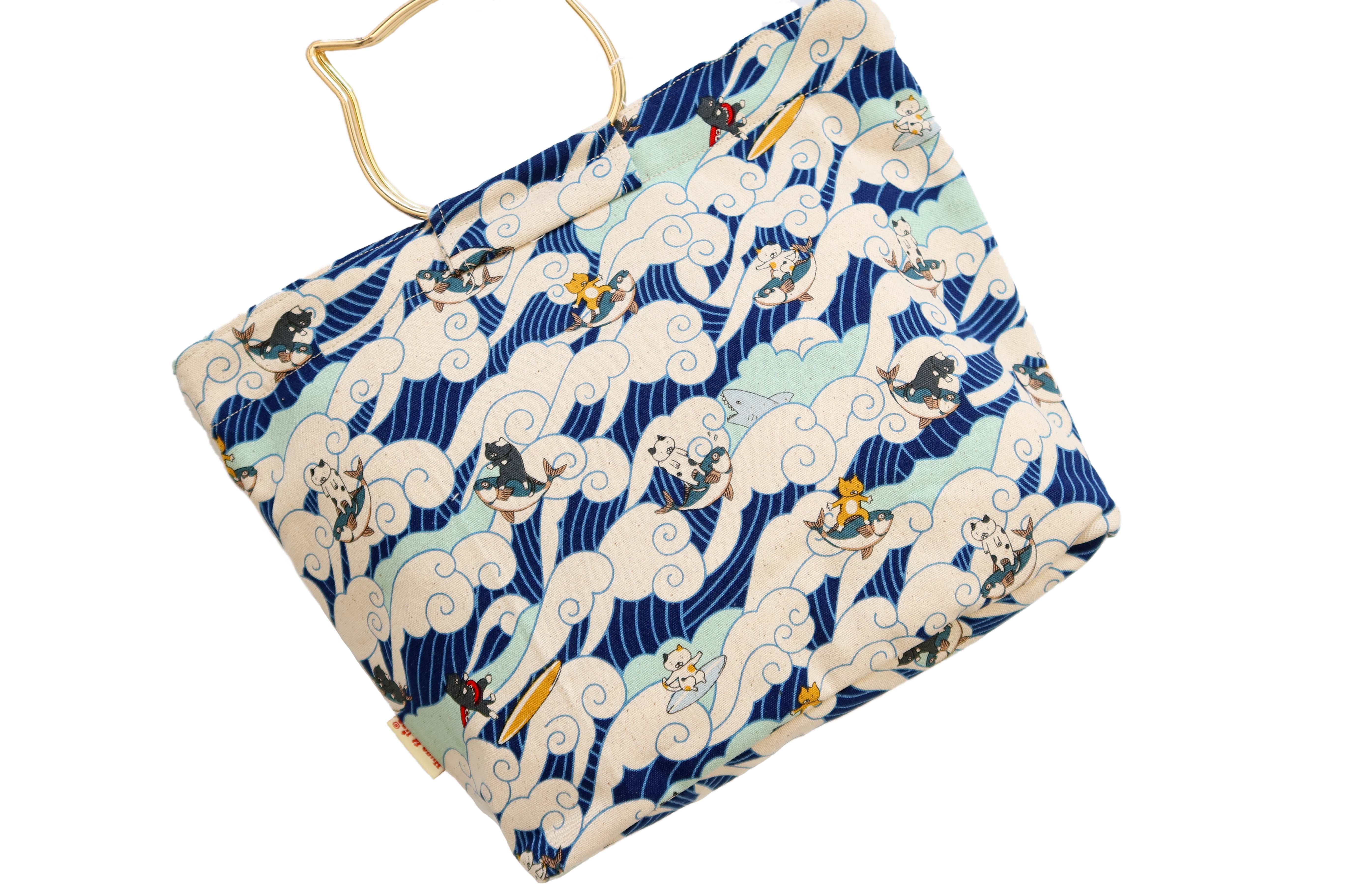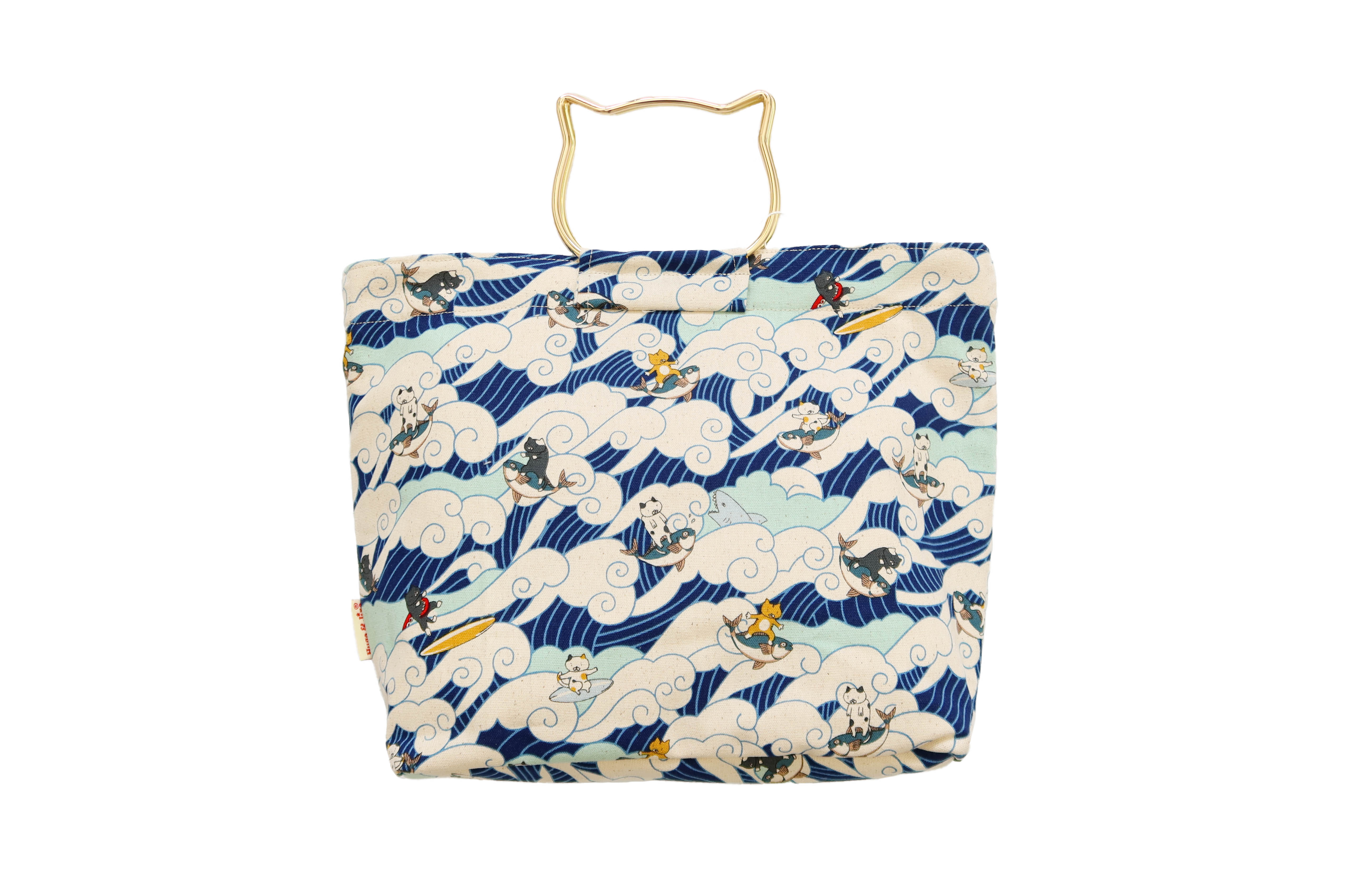 HUGOJIRO猫头柄手提包插画冲浪小猫