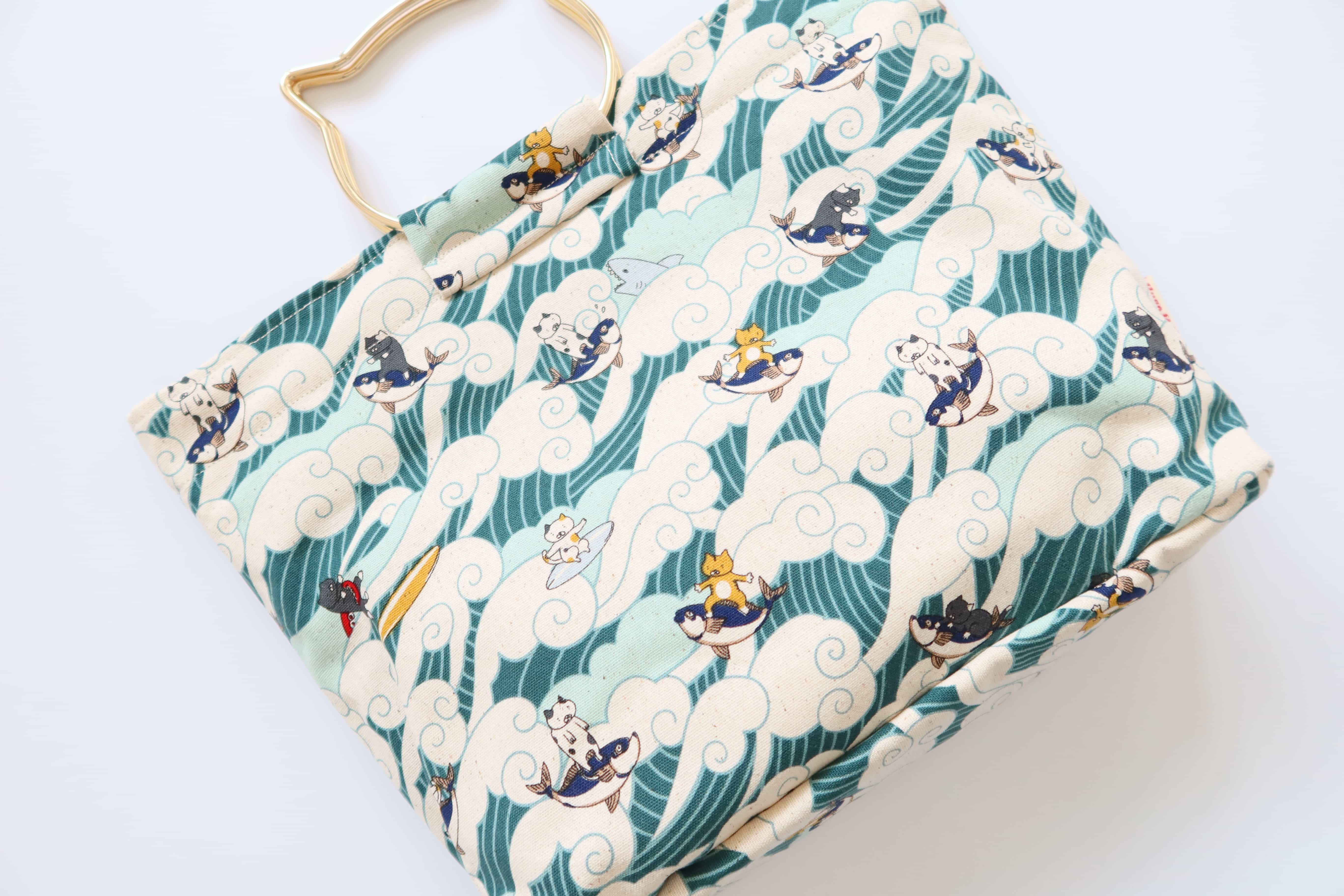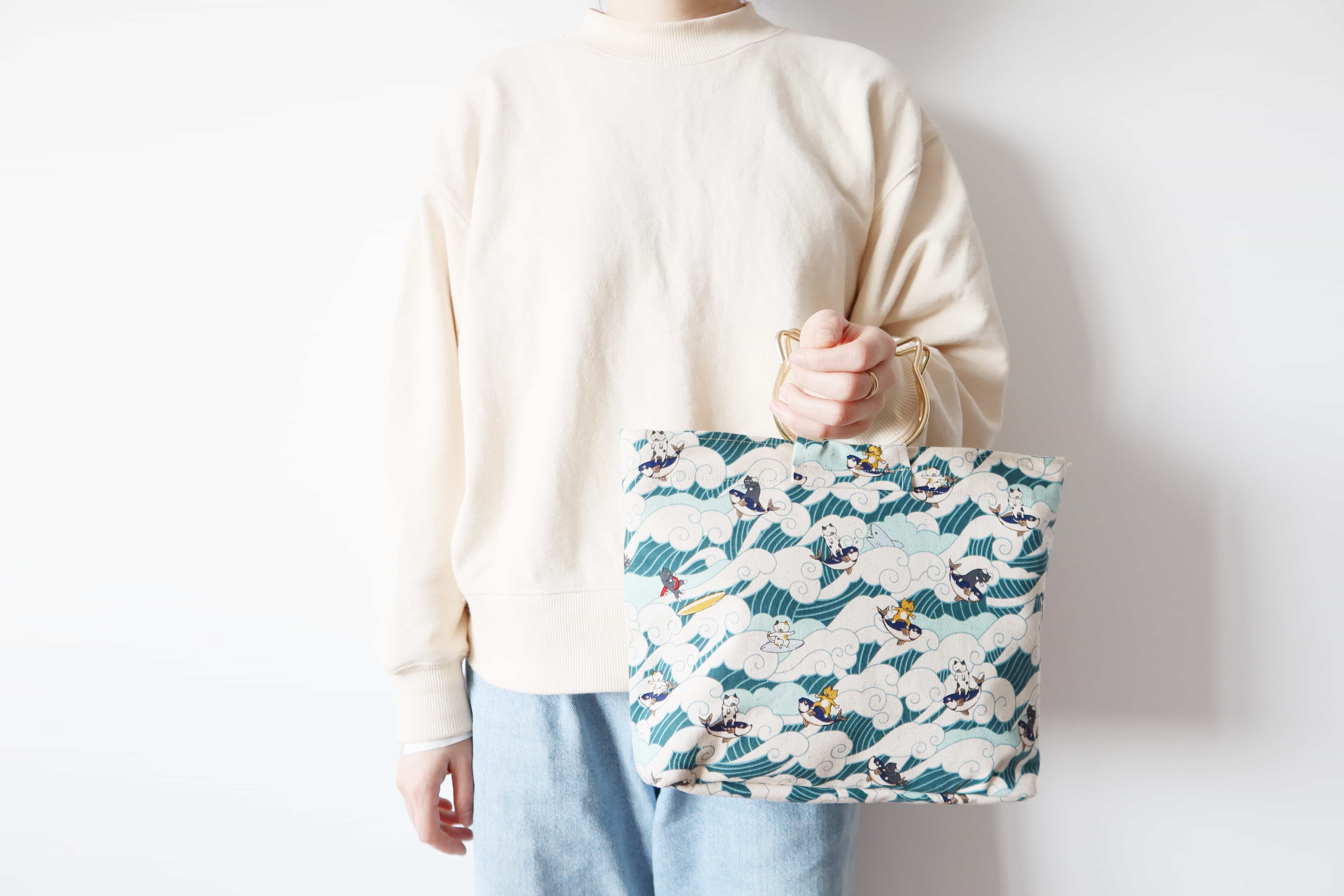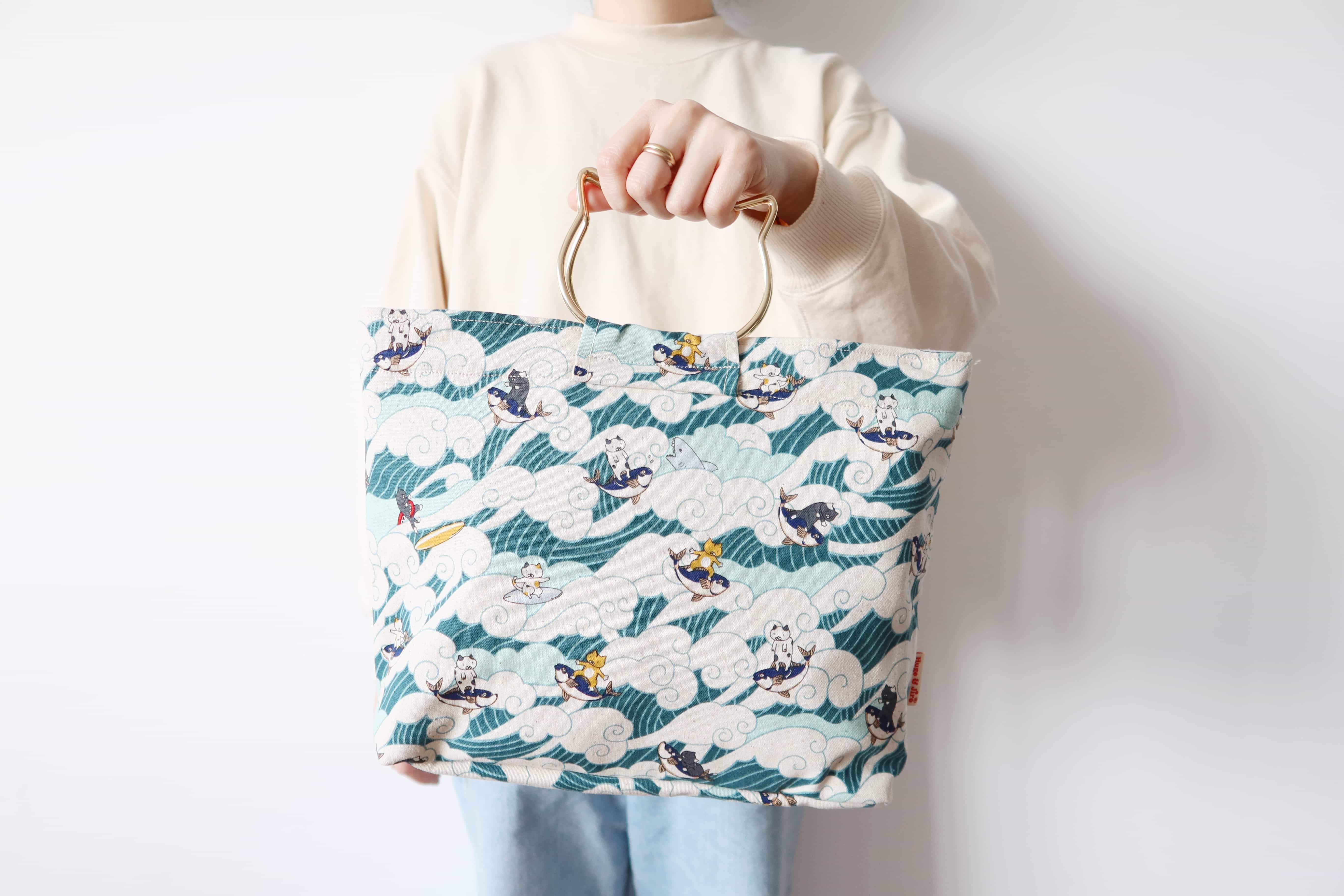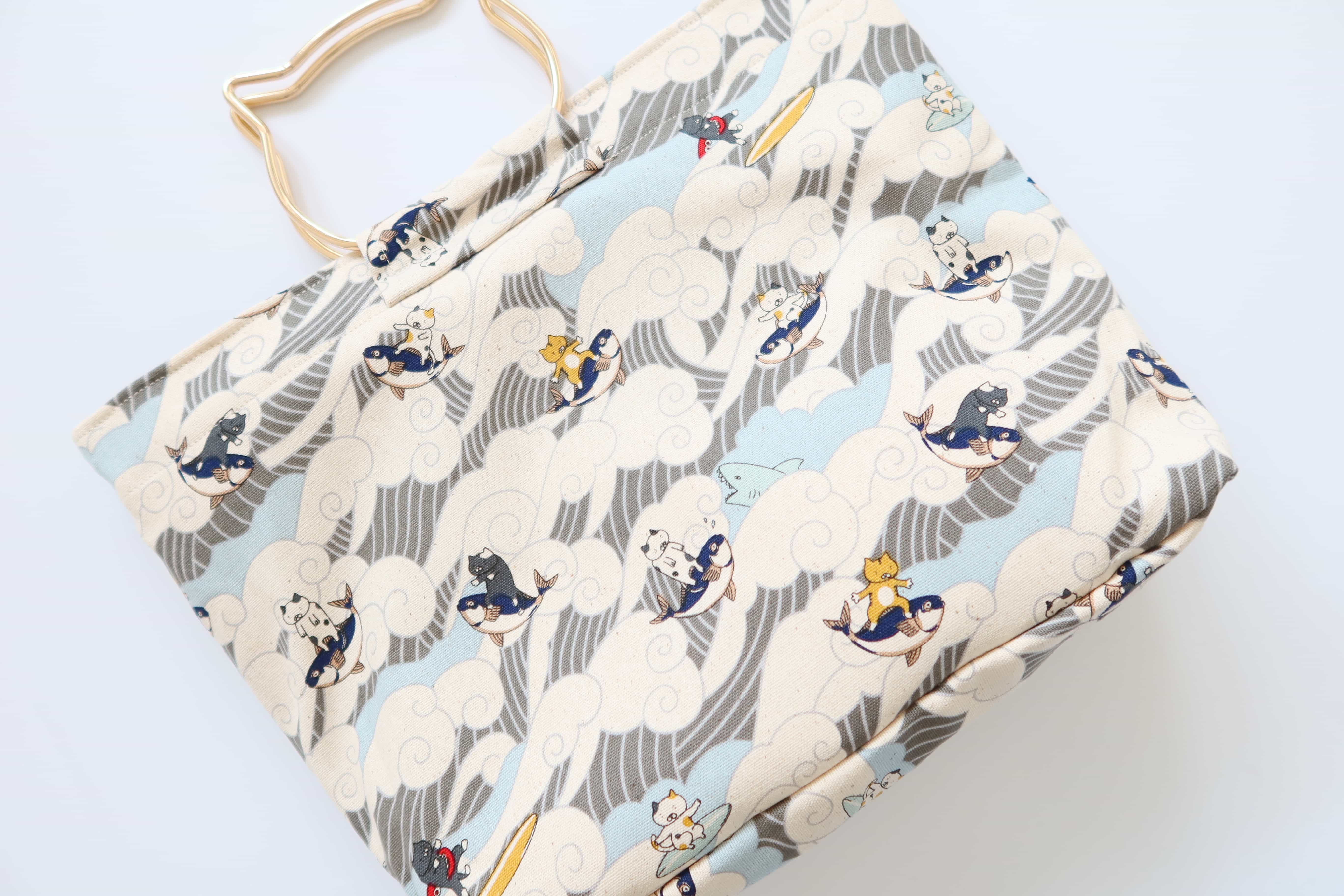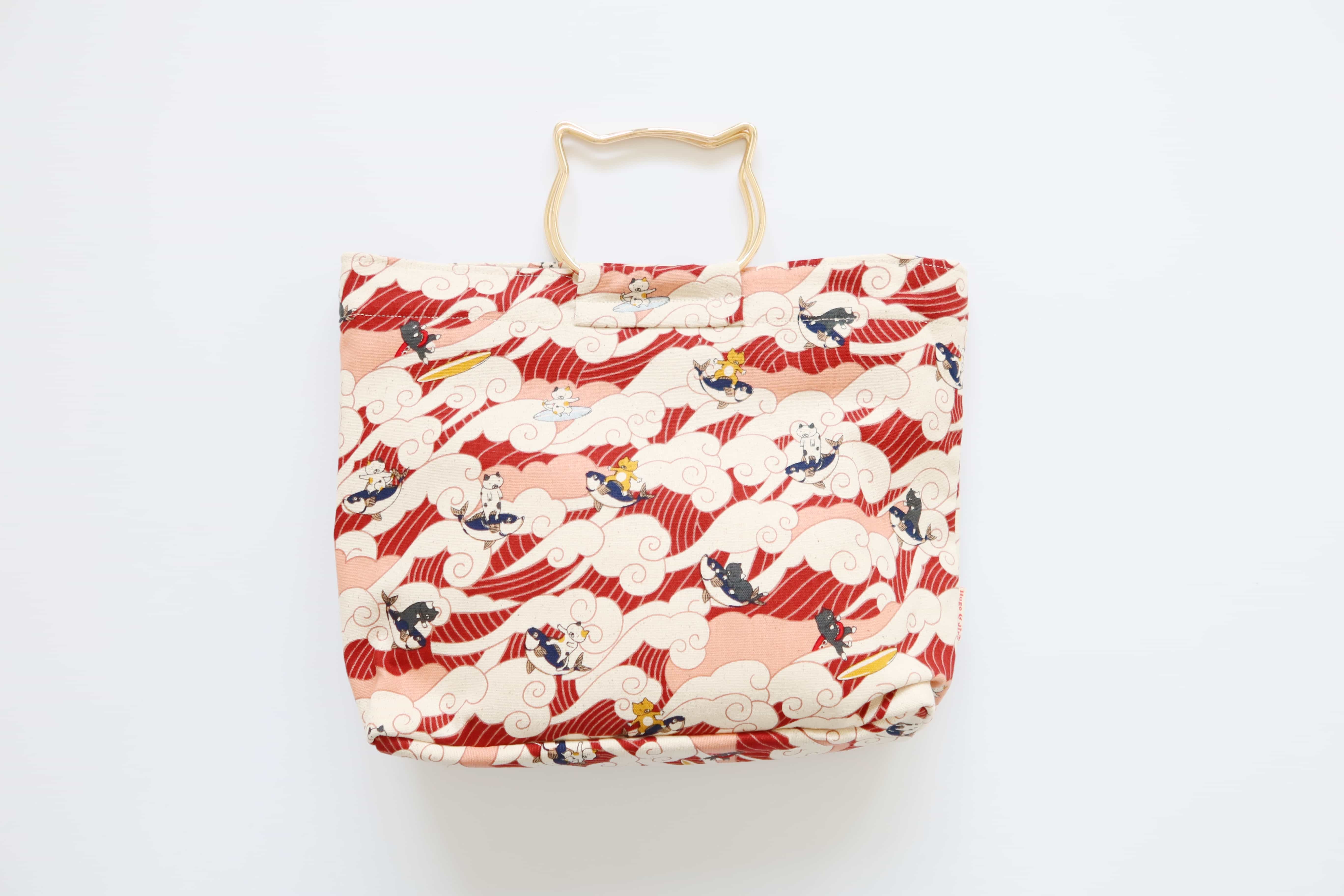 HUGOJIRO猫头柄手提包插画冲浪小猫