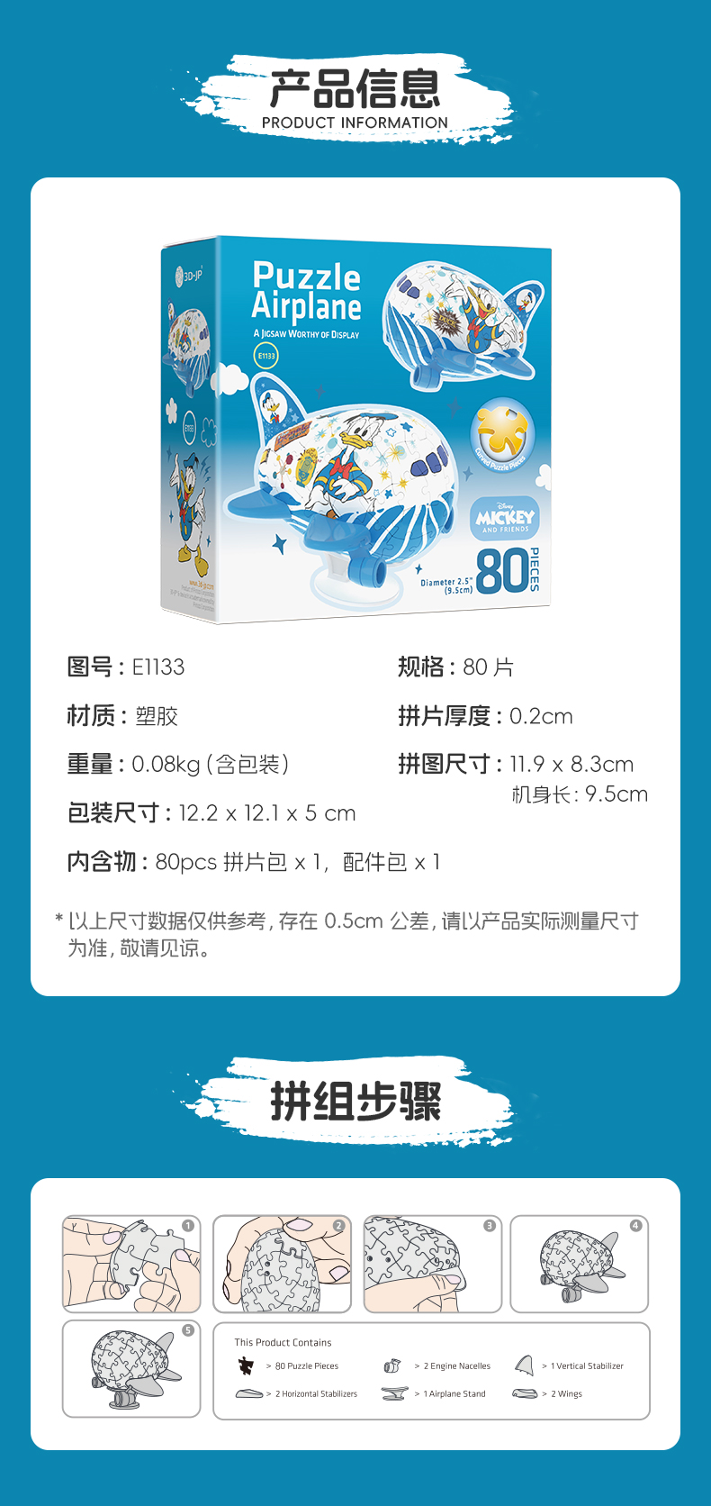 80片 飞机拼图 E1133 米奇与朋友系列-唐老鸭的空中show