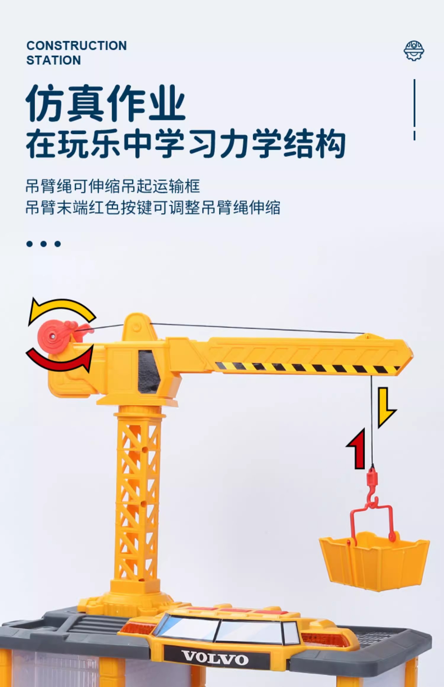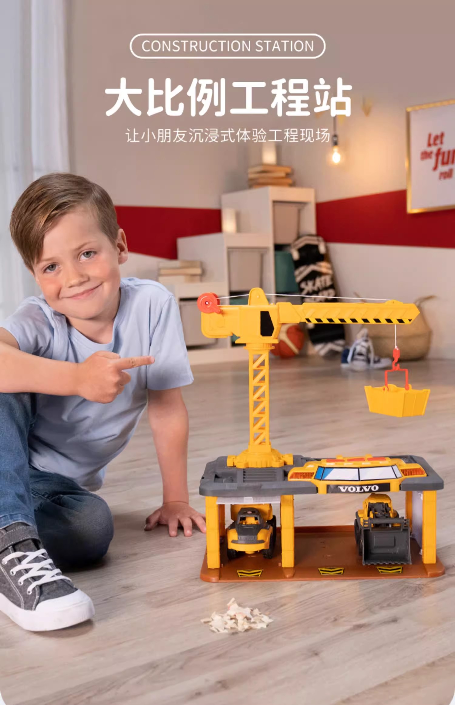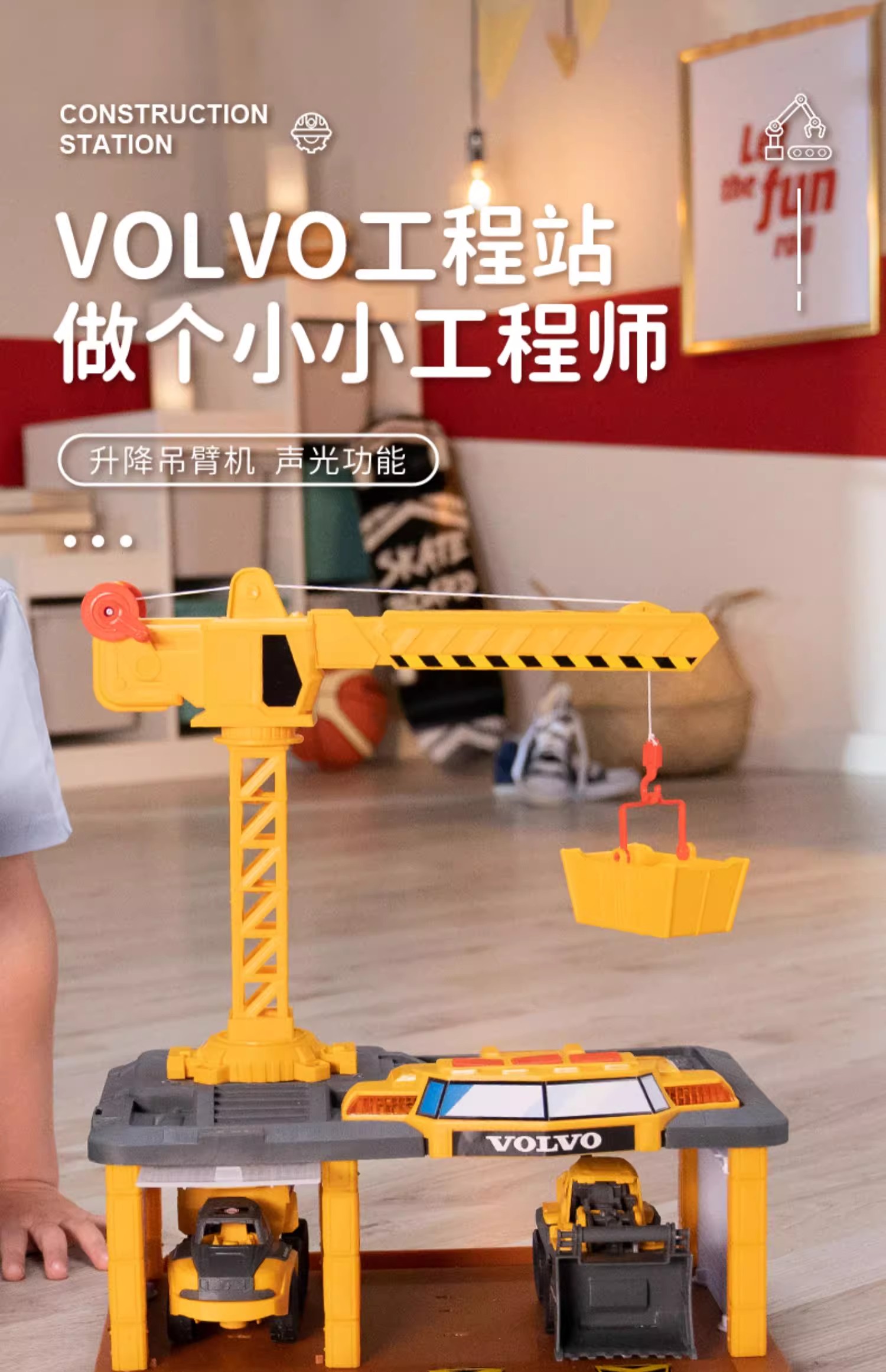 Dickie 仿真声光塔吊车儿童玩具沃尔沃工程站套装推车斗车男孩