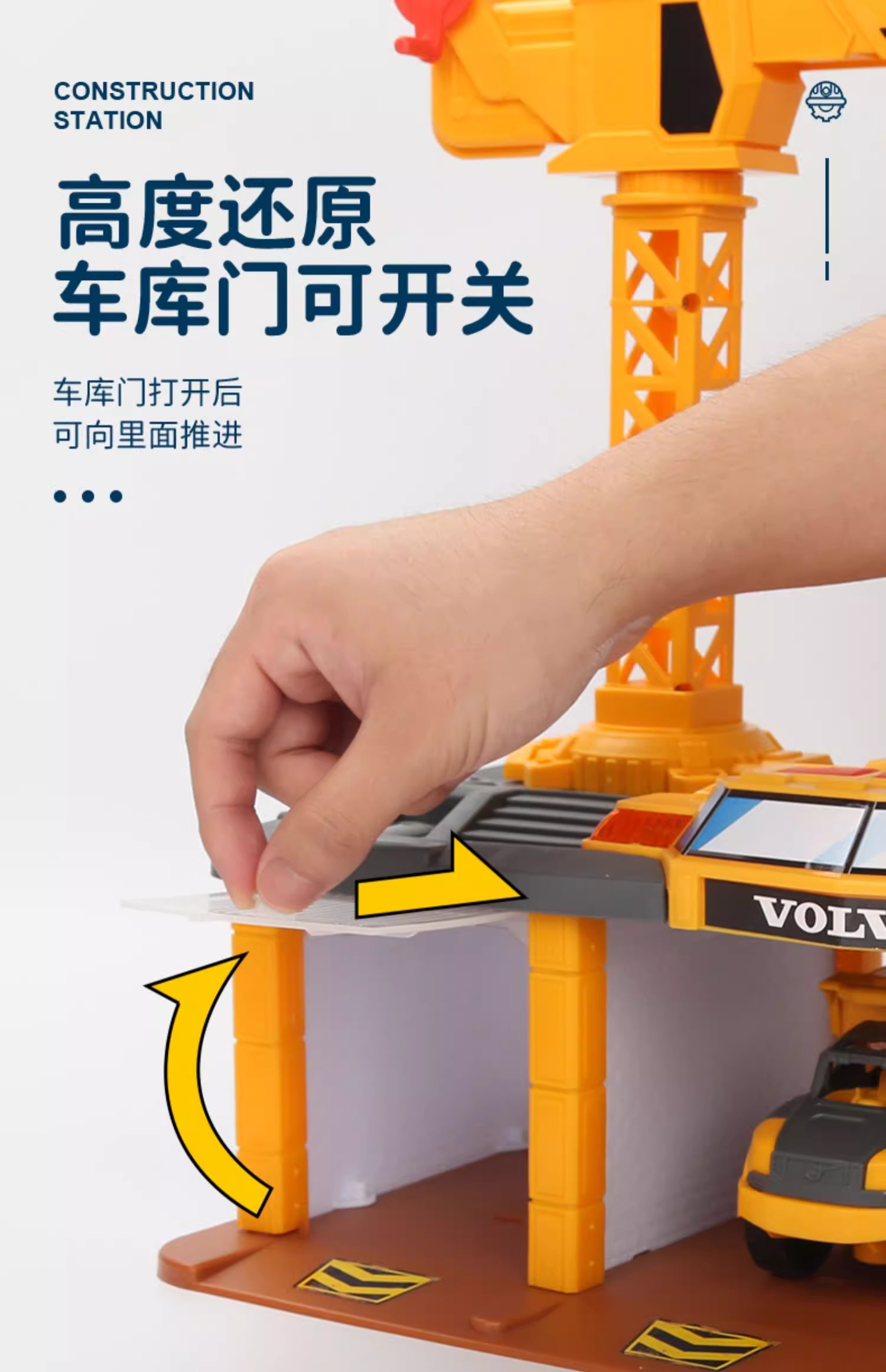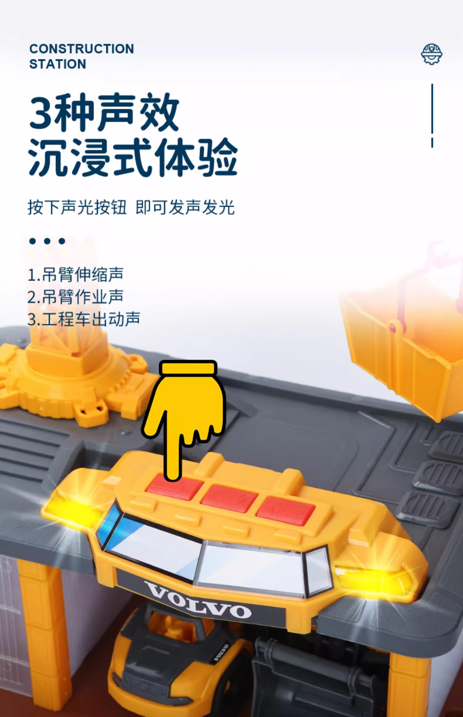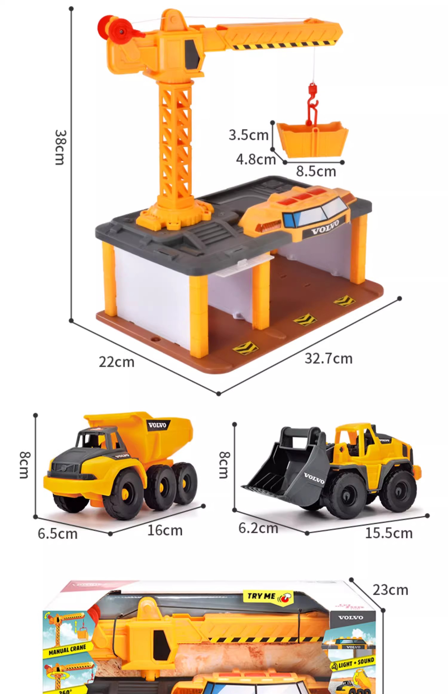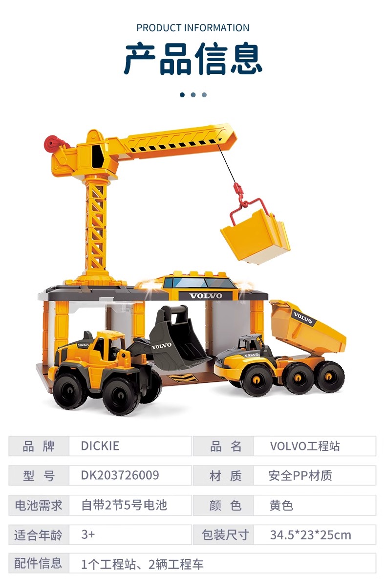 Dickie 仿真声光塔吊车儿童玩具沃尔沃工程站套装推车斗车男孩