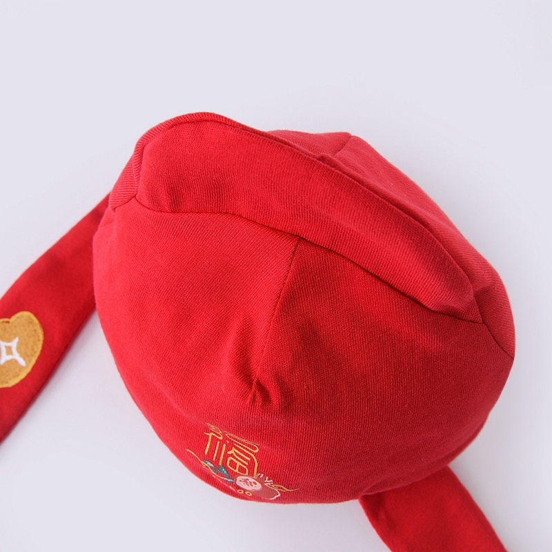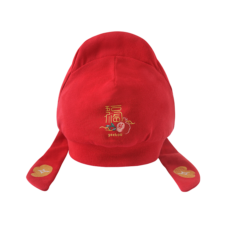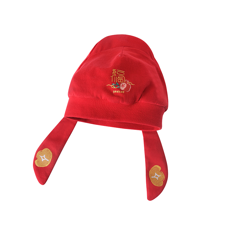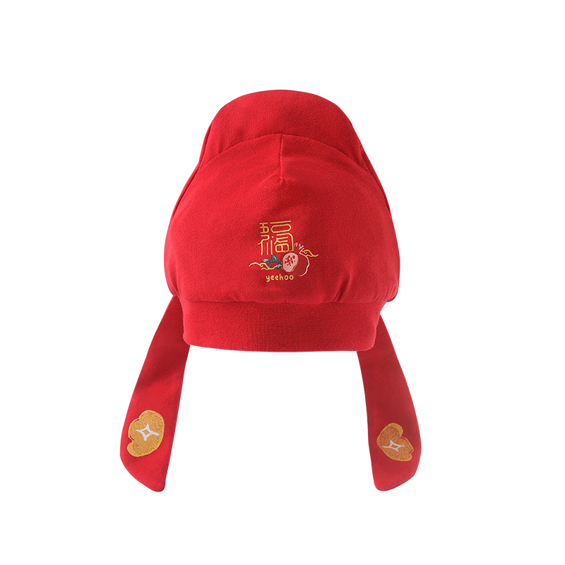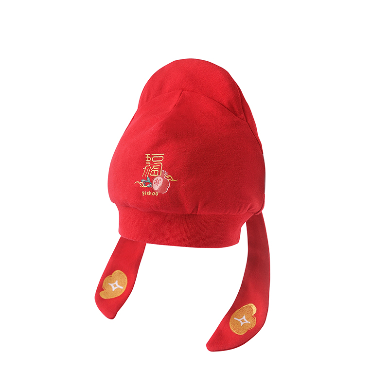英氏婴儿胎帽状元帽新年红色喜庆金宝帽YZJKJ32003A