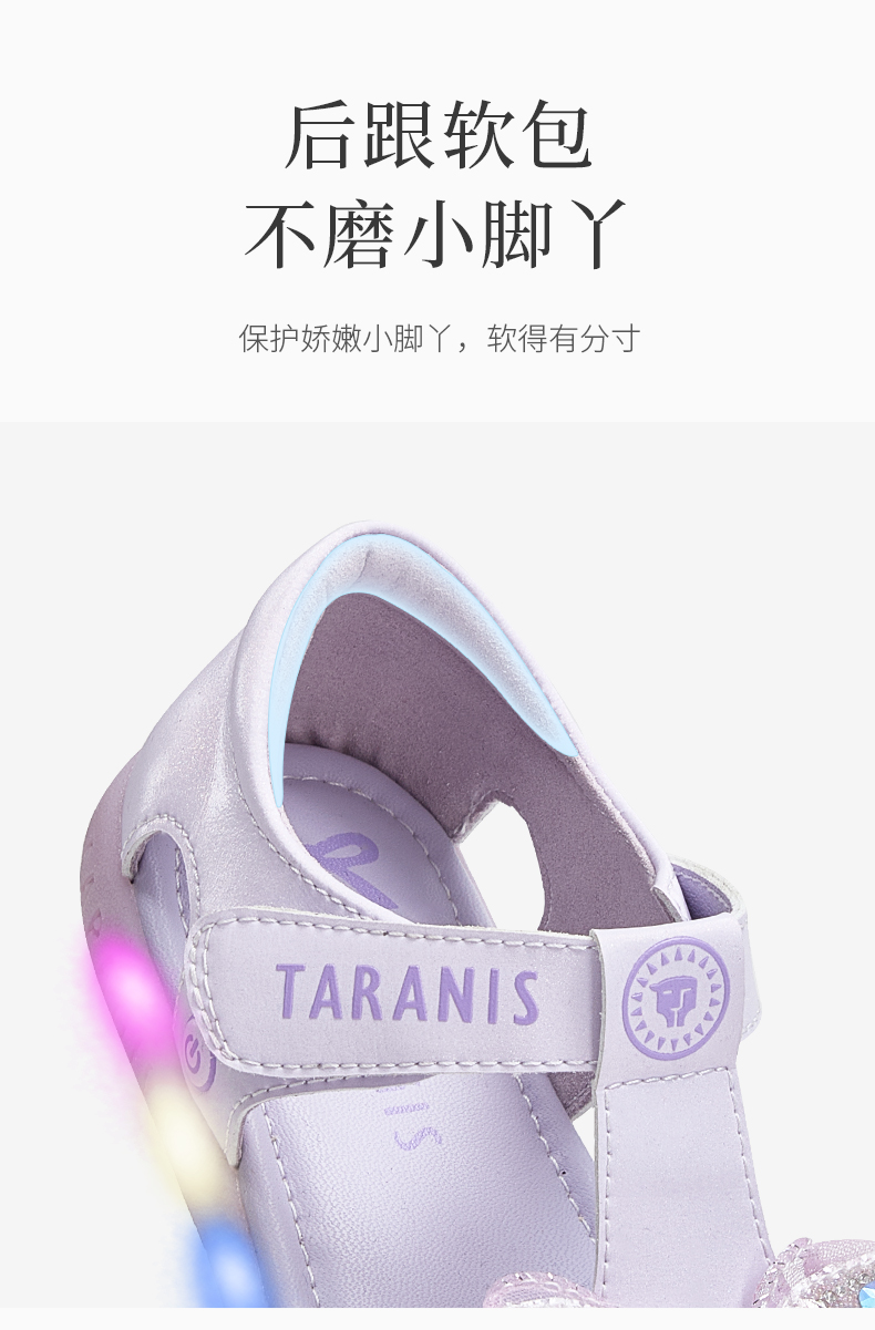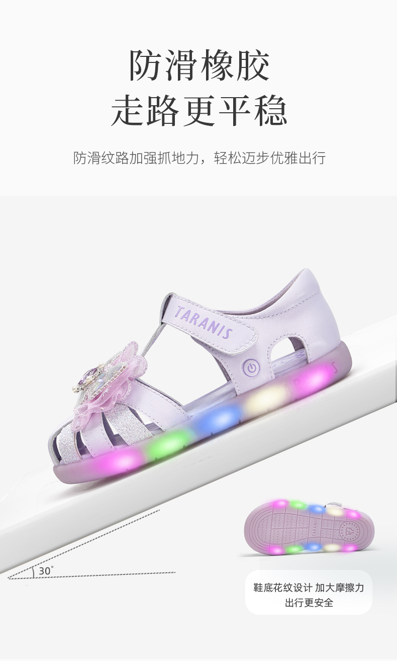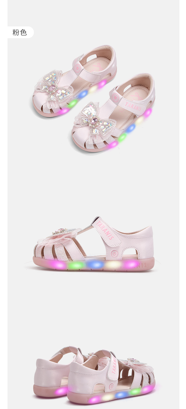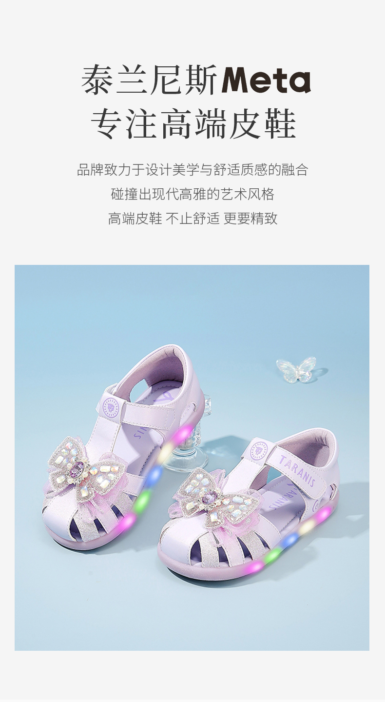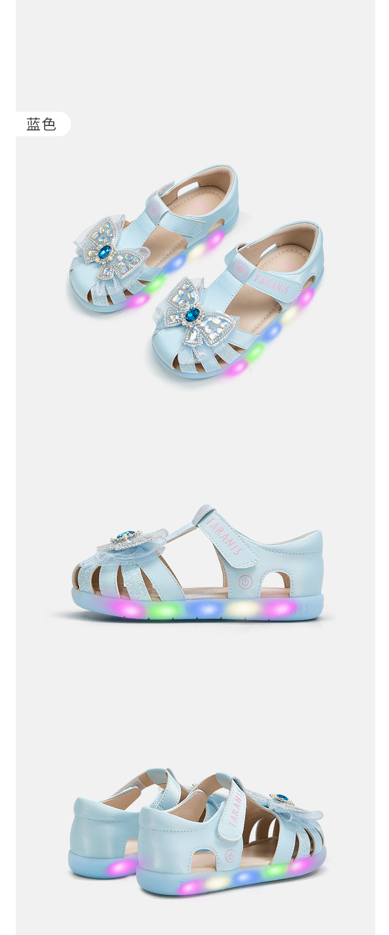 泰兰尼斯meta夏季新款女童发光公主凉鞋小女孩水晶鞋软底闪灯单鞋 M07X5B7143