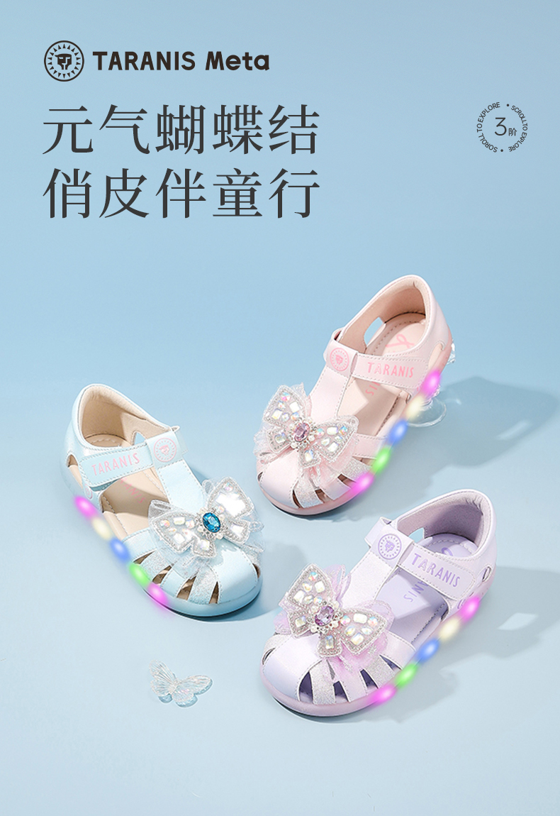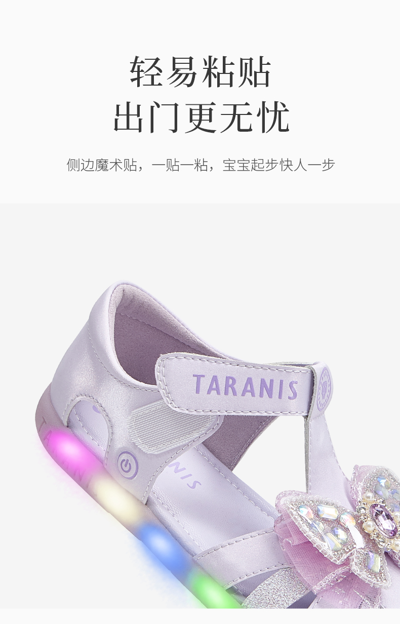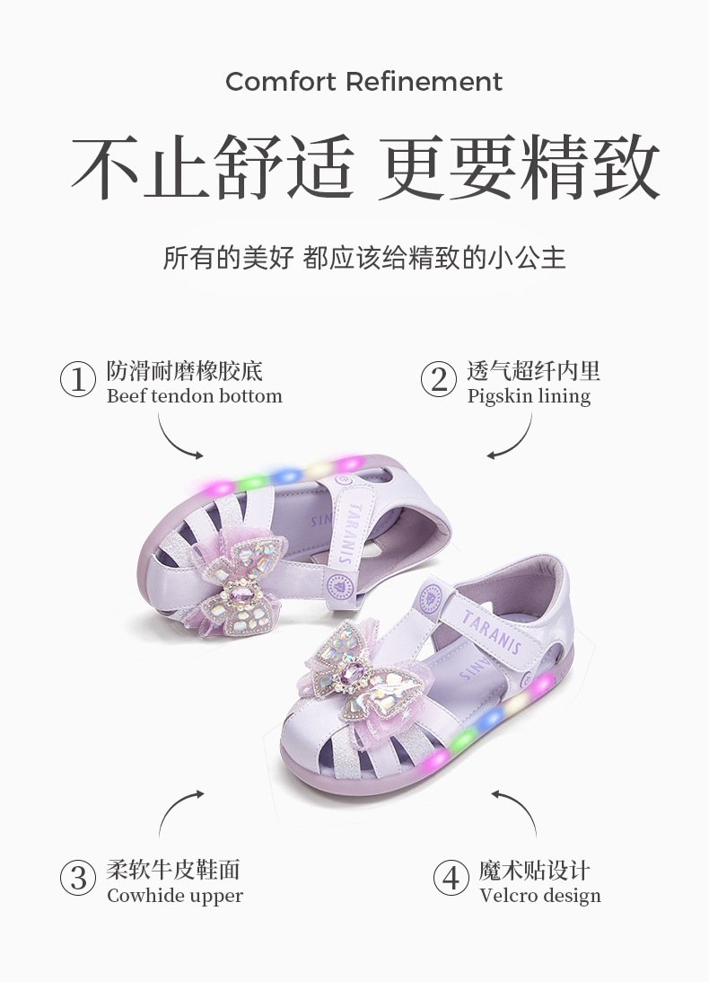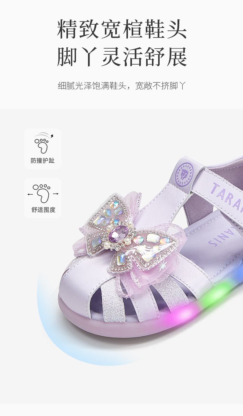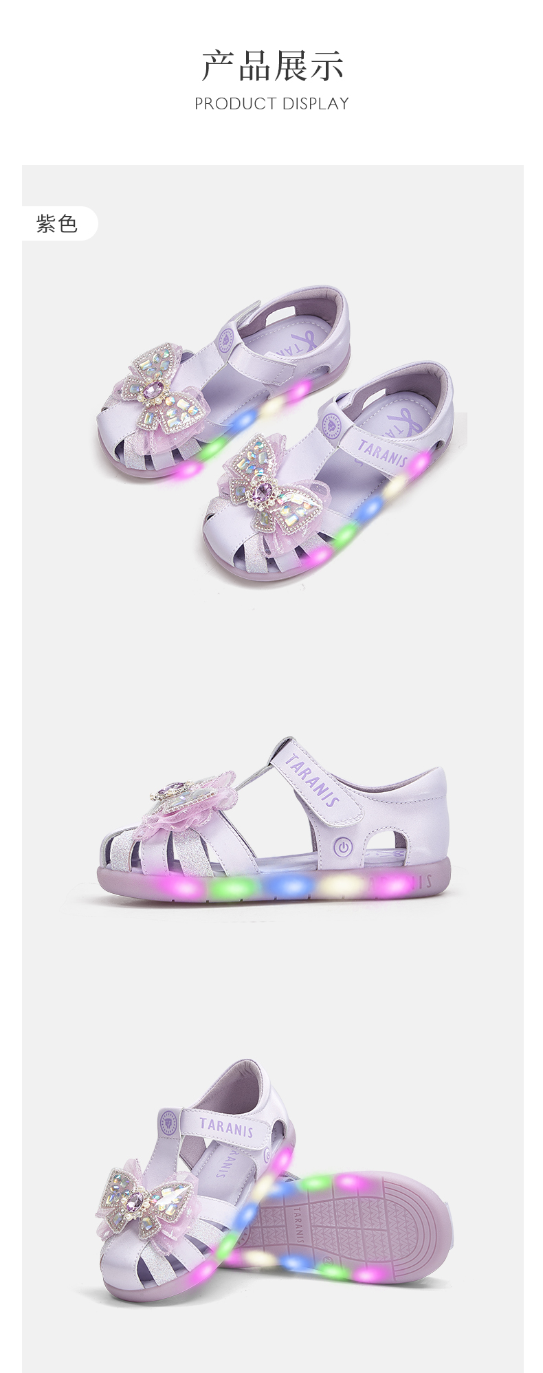 泰兰尼斯meta夏季新款女童发光公主凉鞋小女孩水晶鞋软底闪灯单鞋 M07X5B7143