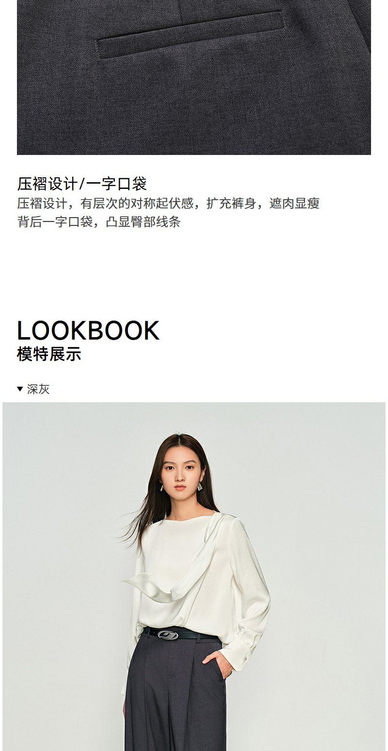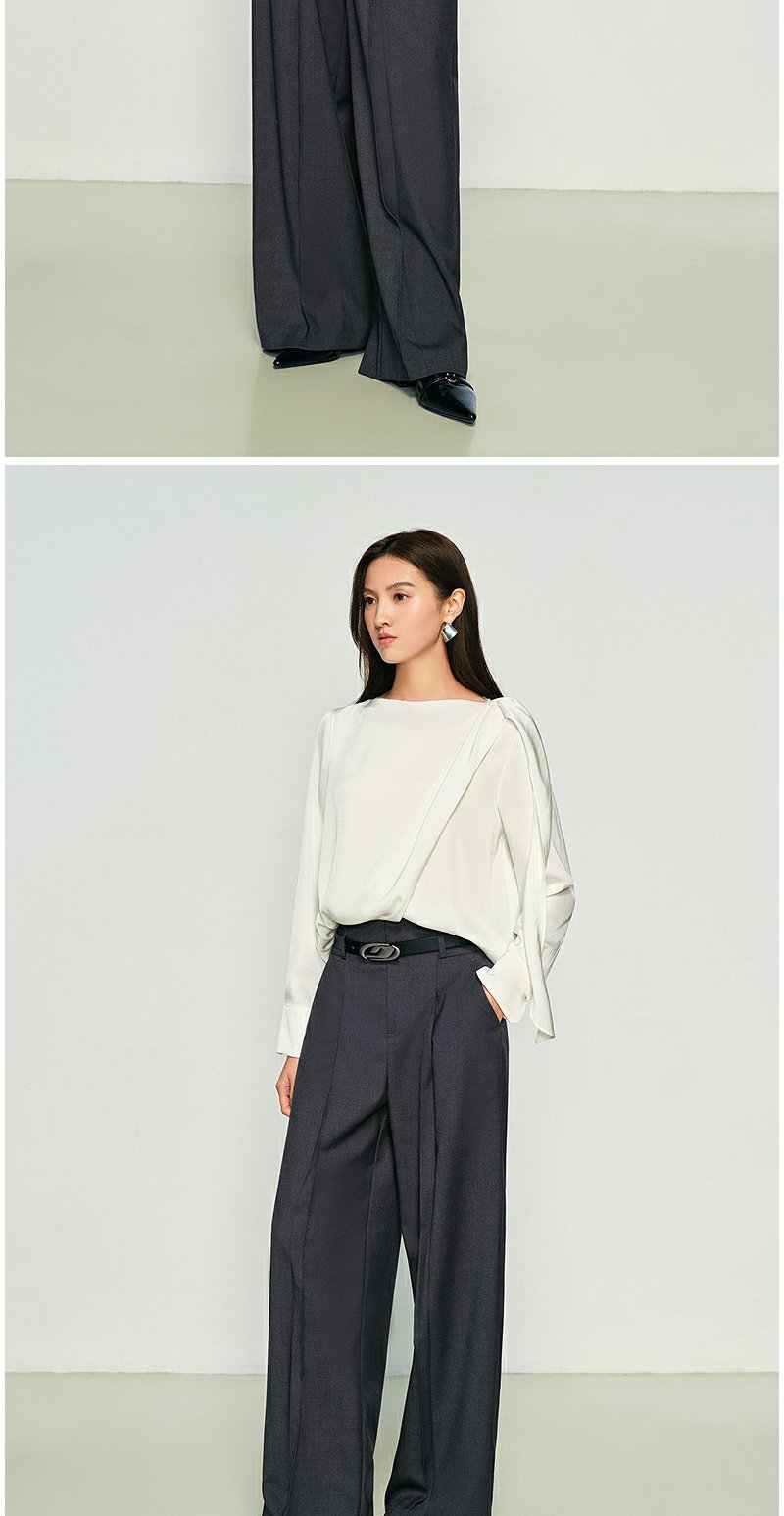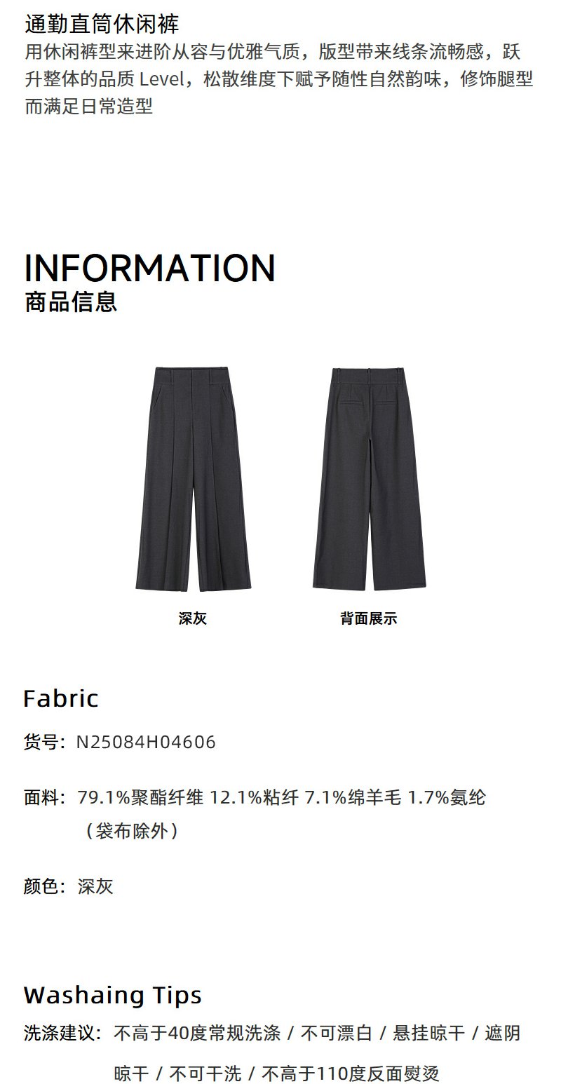 NEELLY纳俪商场同款秋季新款通勤风直筒休闲裤女西裤高腰长裤N25084H04606