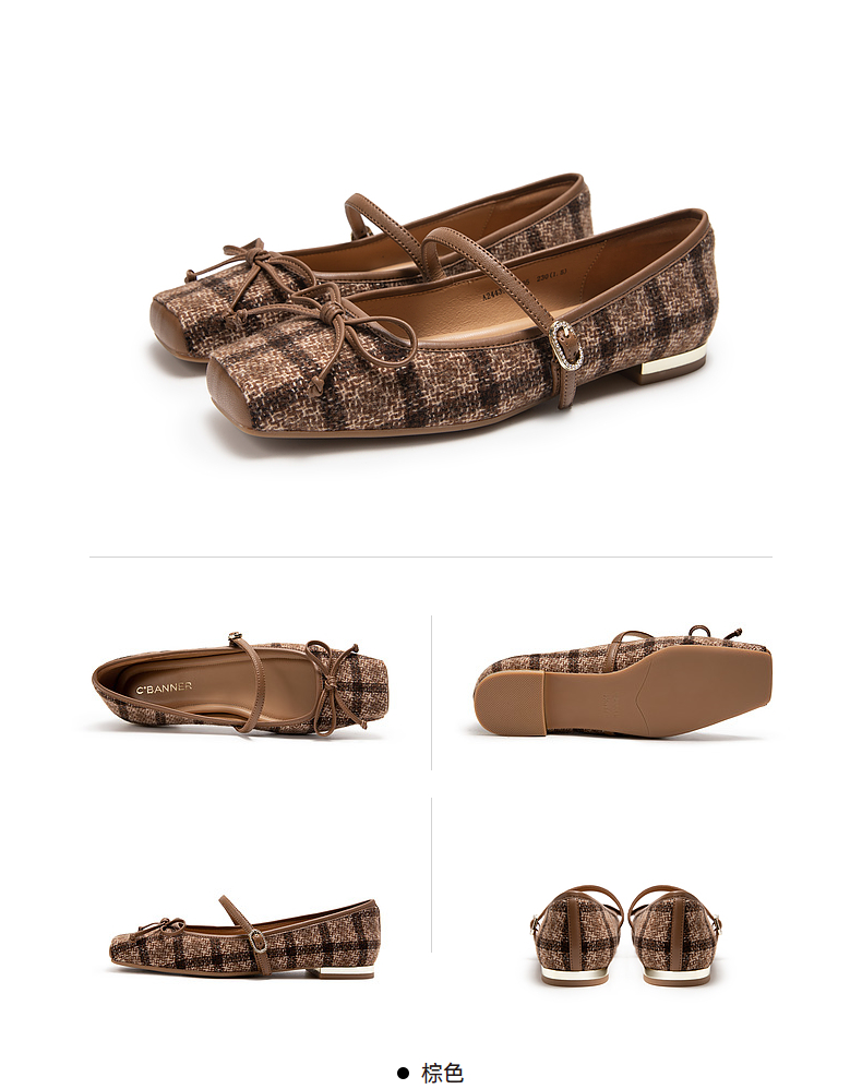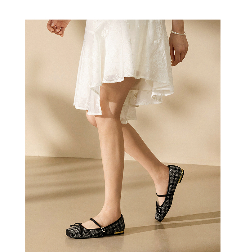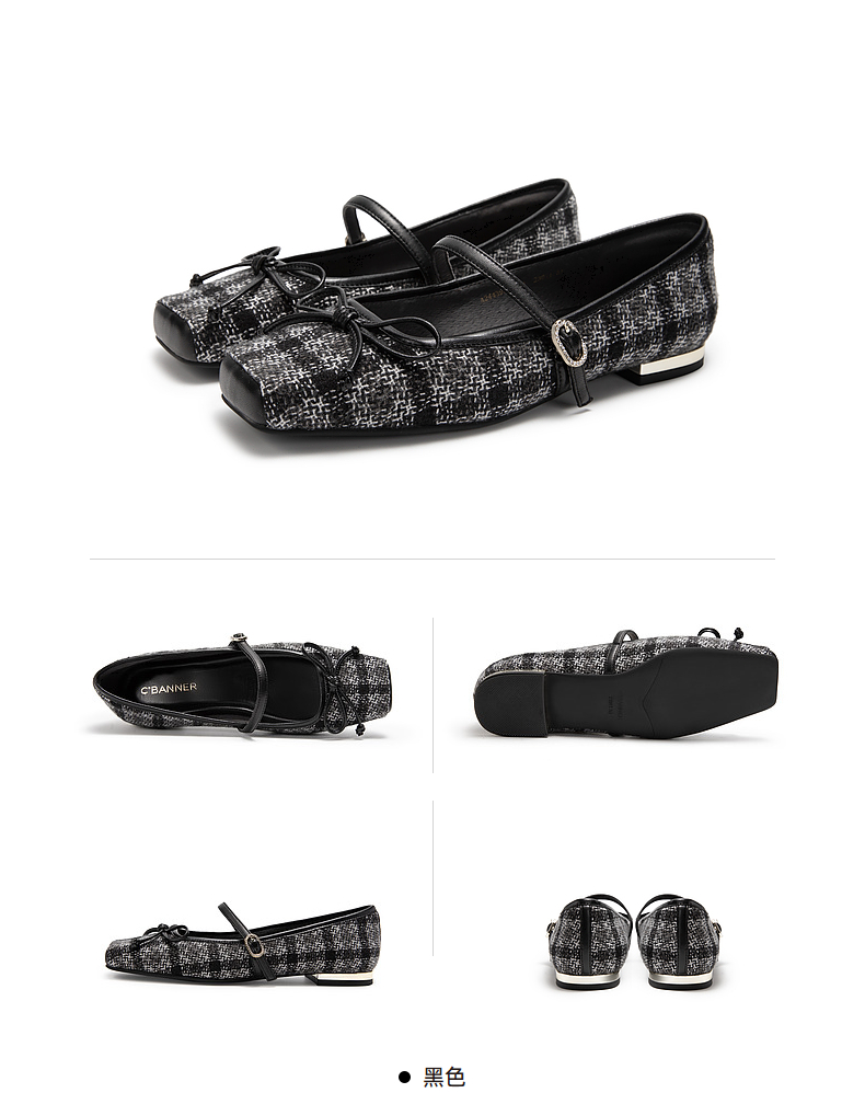千百度时尚芭蕾鞋女秋季小香风玛丽珍鞋晚晚单鞋平底鞋A24439308