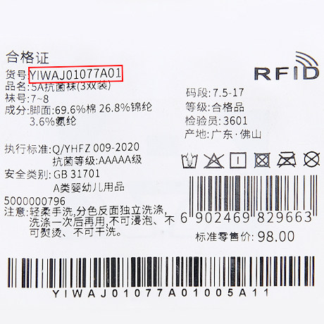英氏婴儿5A抗菌袜宝宝四季3双装袜子YIWAJ01077A