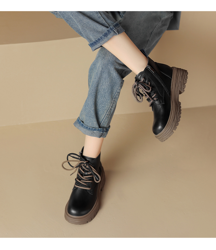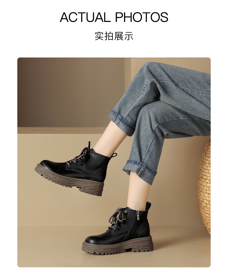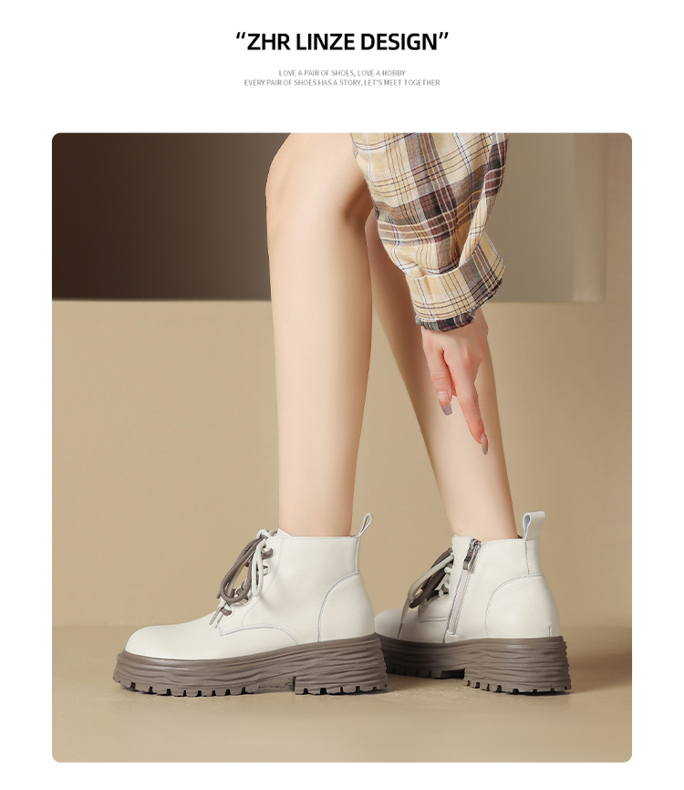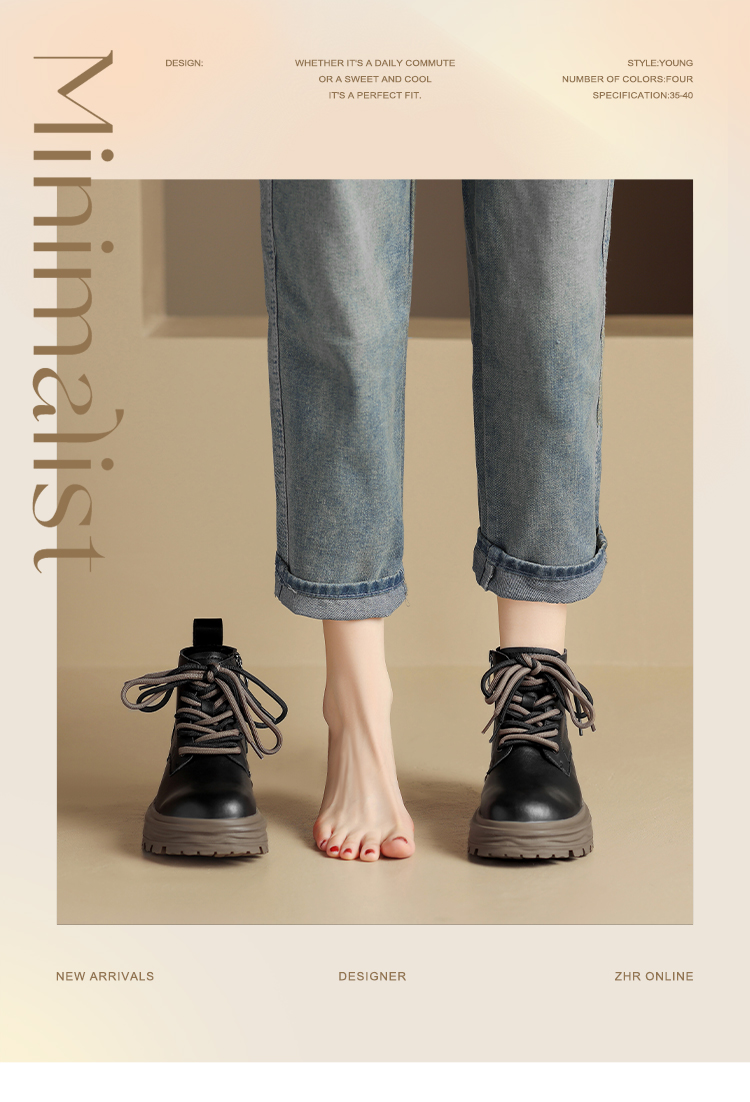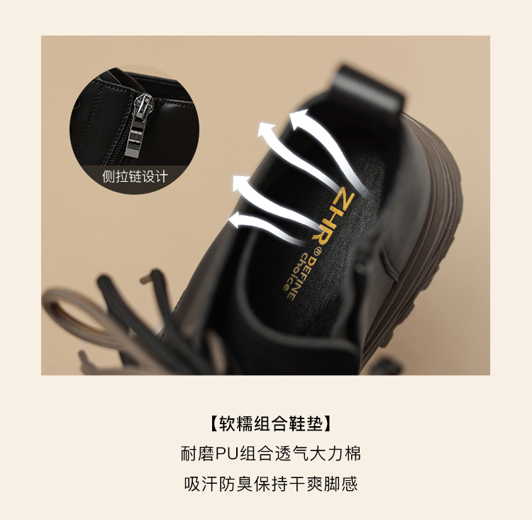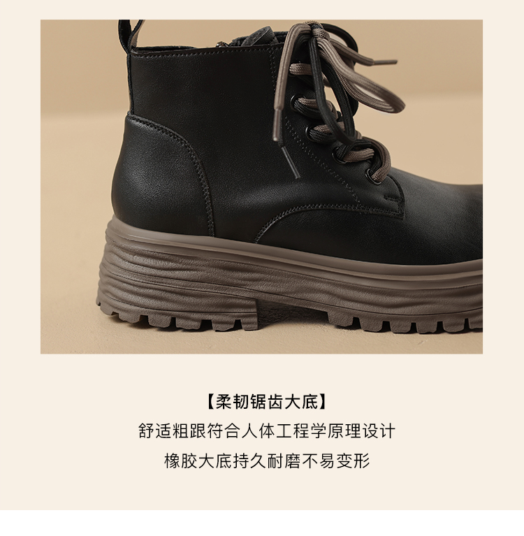 ZHR平底短靴女2023秋冬英伦风时尚复古质感靴子时髦感厚底马丁靴