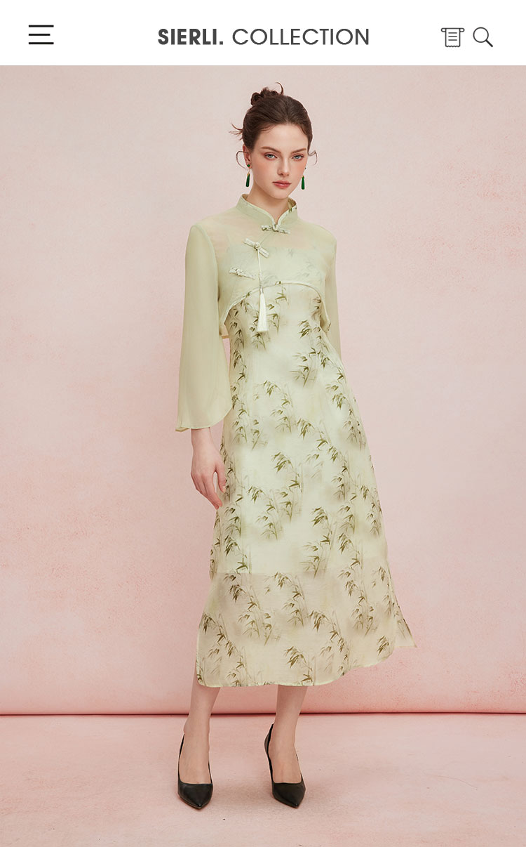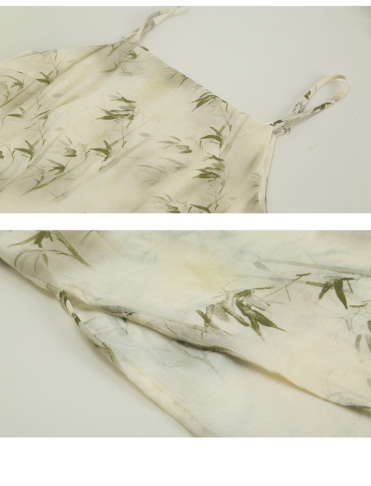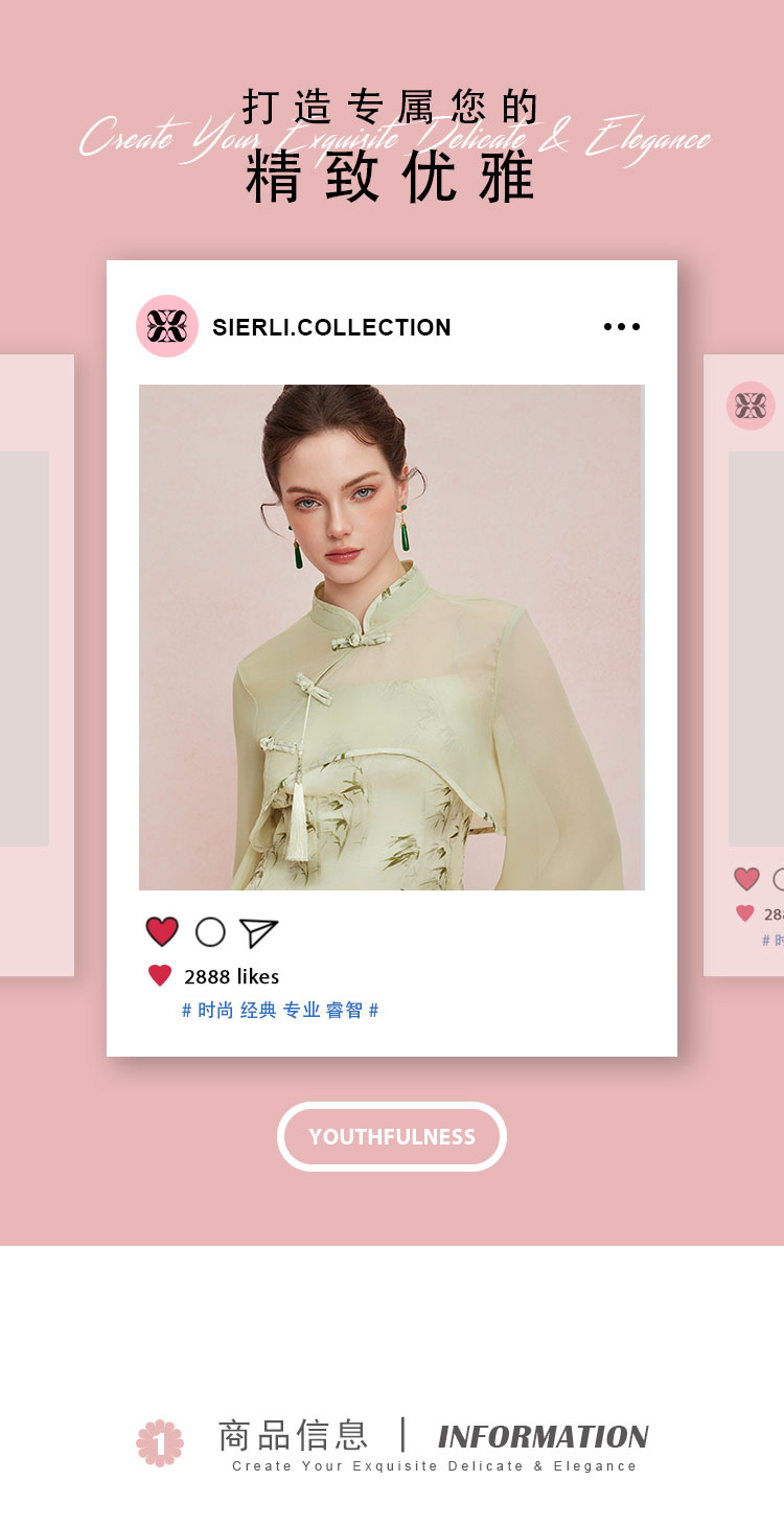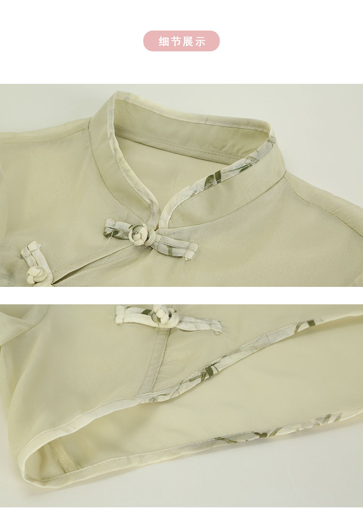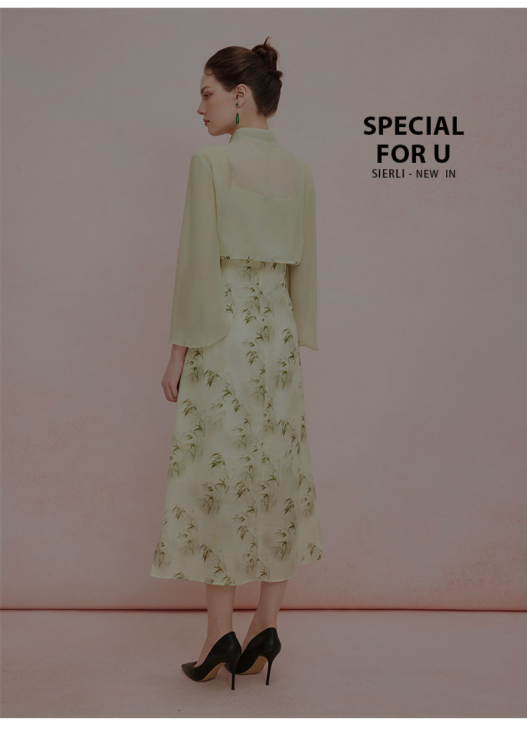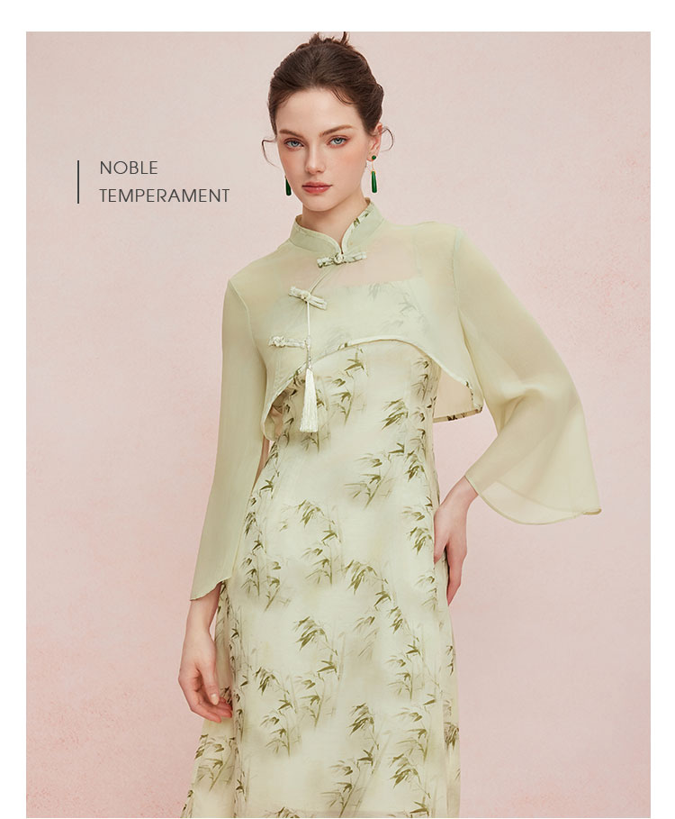 QF883斯尔丽25新款改良版旗袍抛袖薄纱上衣搭配印花内搭连衣裙两件套装